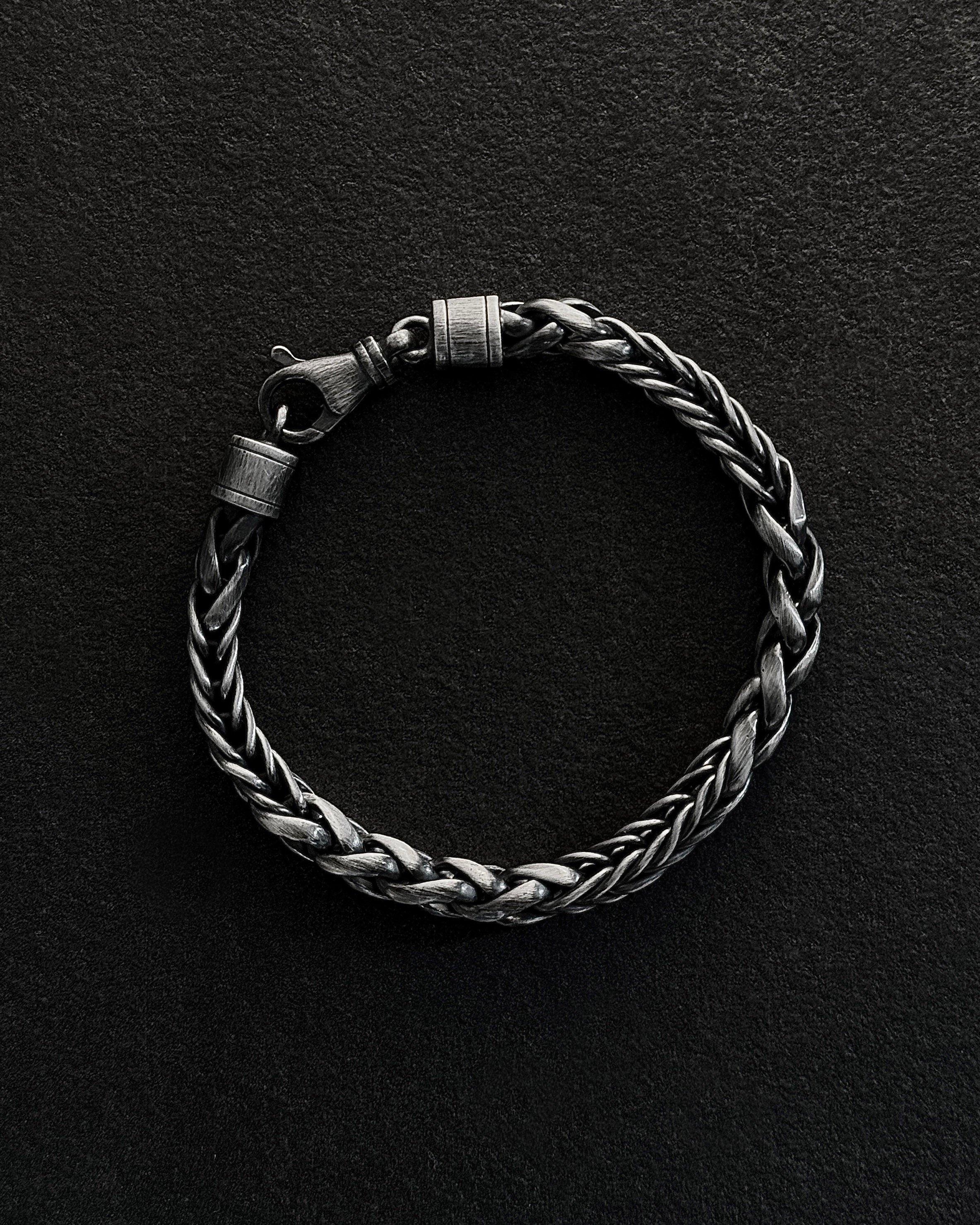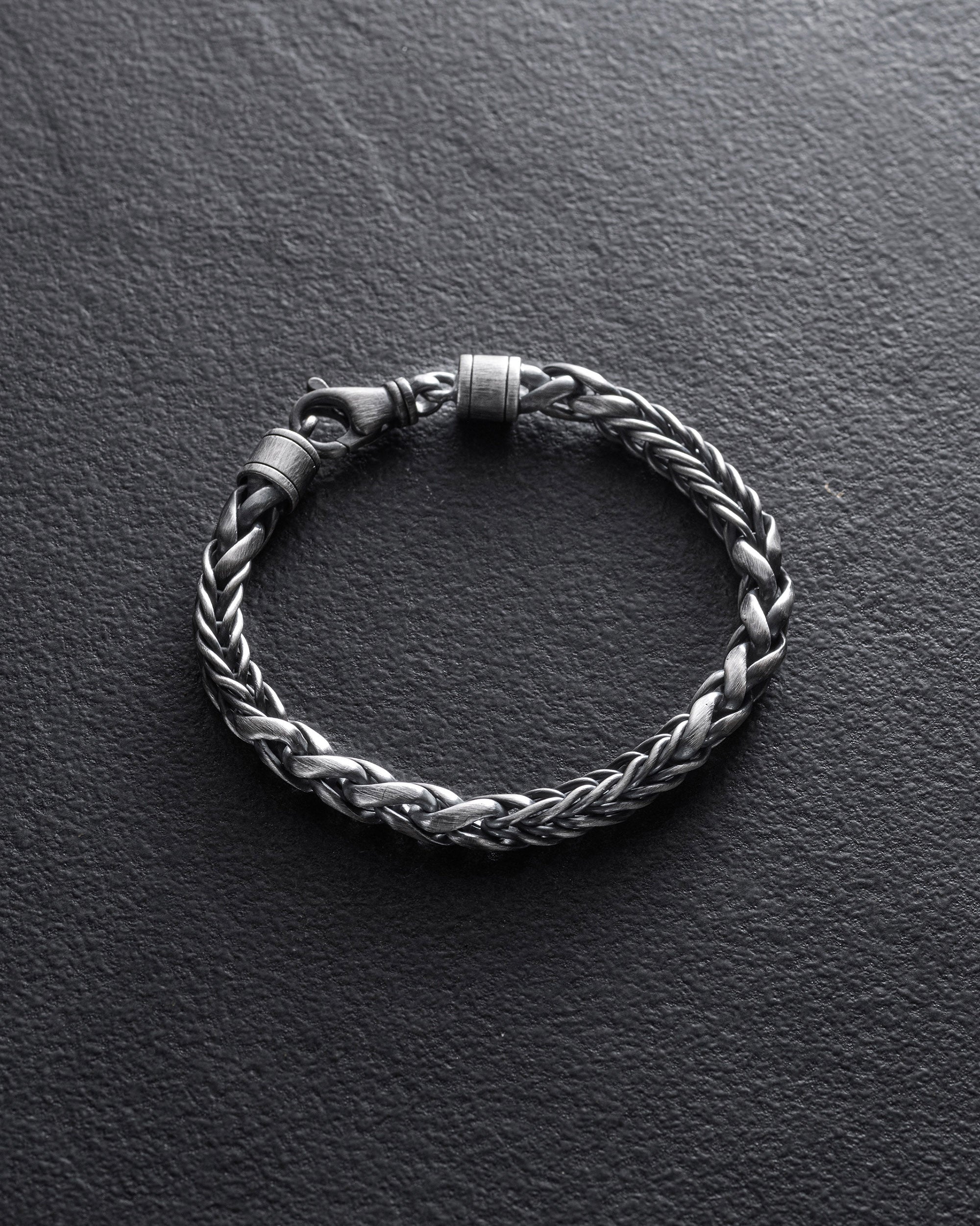 The silver bracelet "BOND" for men embodies the symbolism of strong connections and unbreakable unity. Its solid and sturdy weave not only emphasizes strength and resilience but also symbolizes the indestructibility of relationships, mutual support, and dedication.