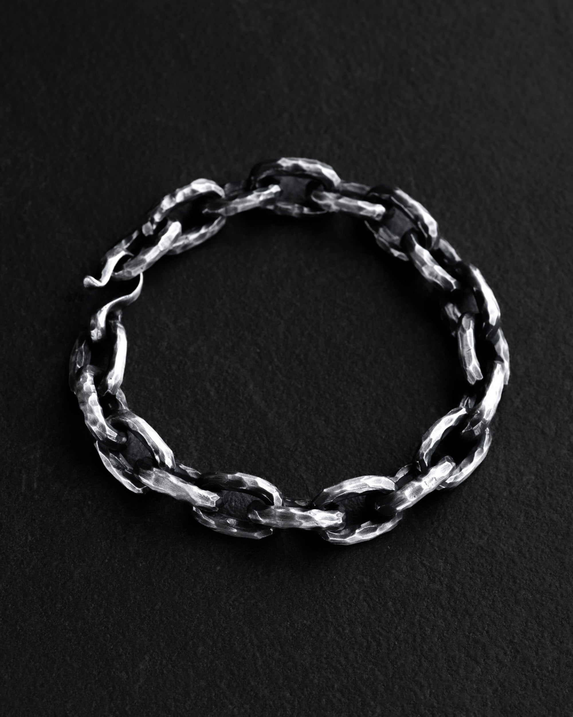 The silver bracelet "VOLCANO CHAIN" is a massive and striking accessory that impresses with its refined strength and energy. The name "VOLCANO CHAIN" - expressing a combination of power and mystery. The textured surface of the bracelet adds extra massiveness and character, giving its wearer an undeniable sense of power and confidence. This men's bracelet will not only serve as a stylish accent but also as a symbol of inner strength and resilience.