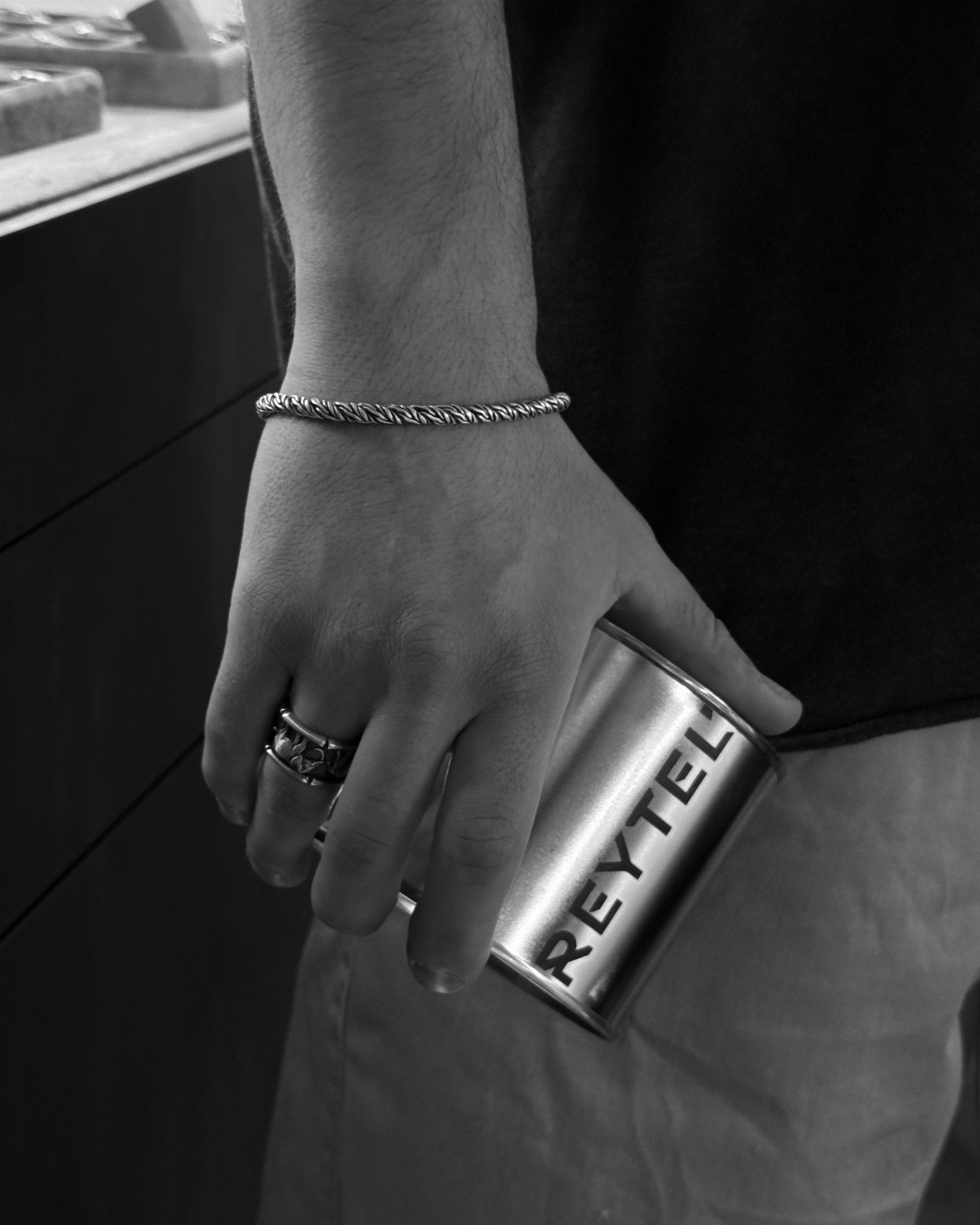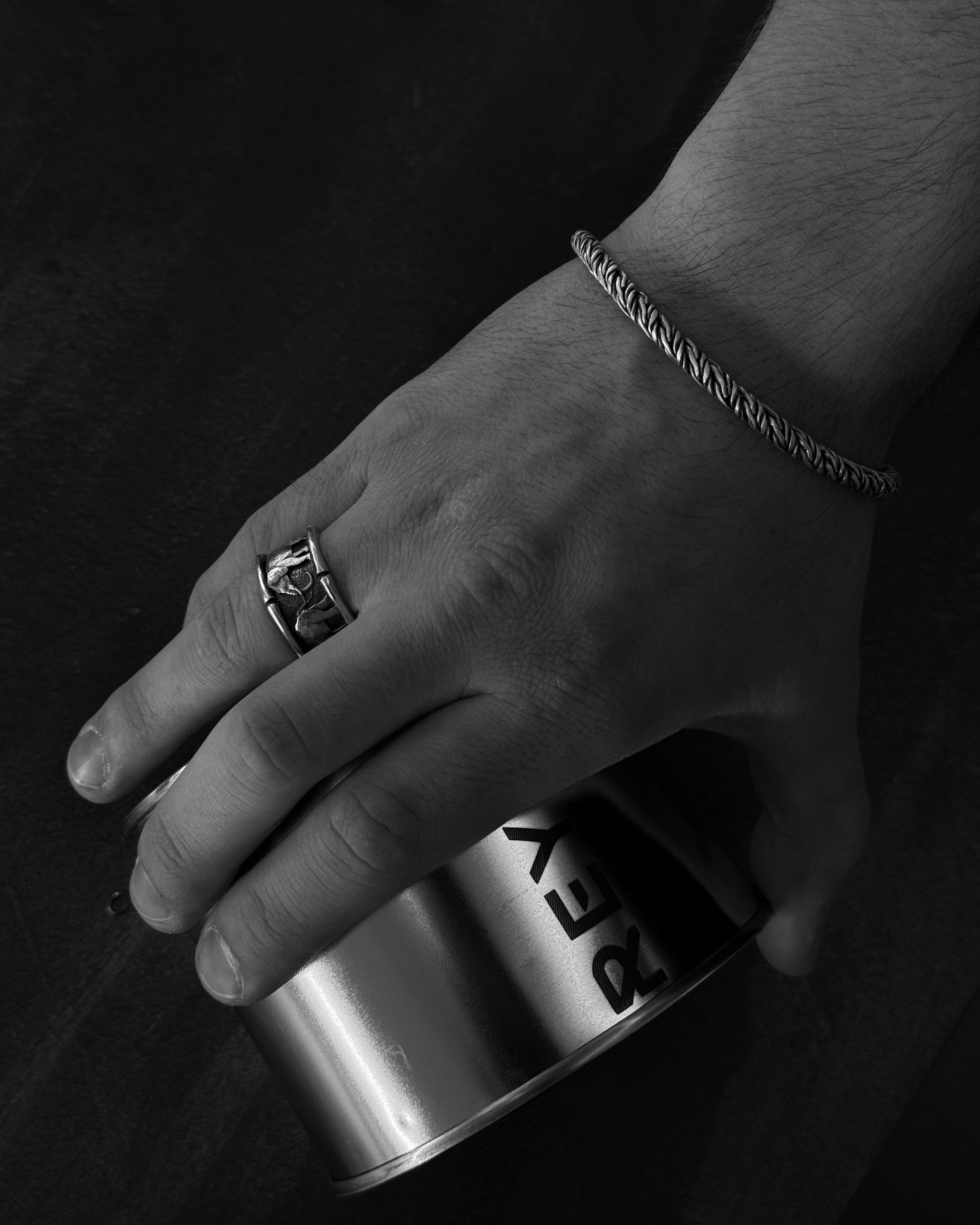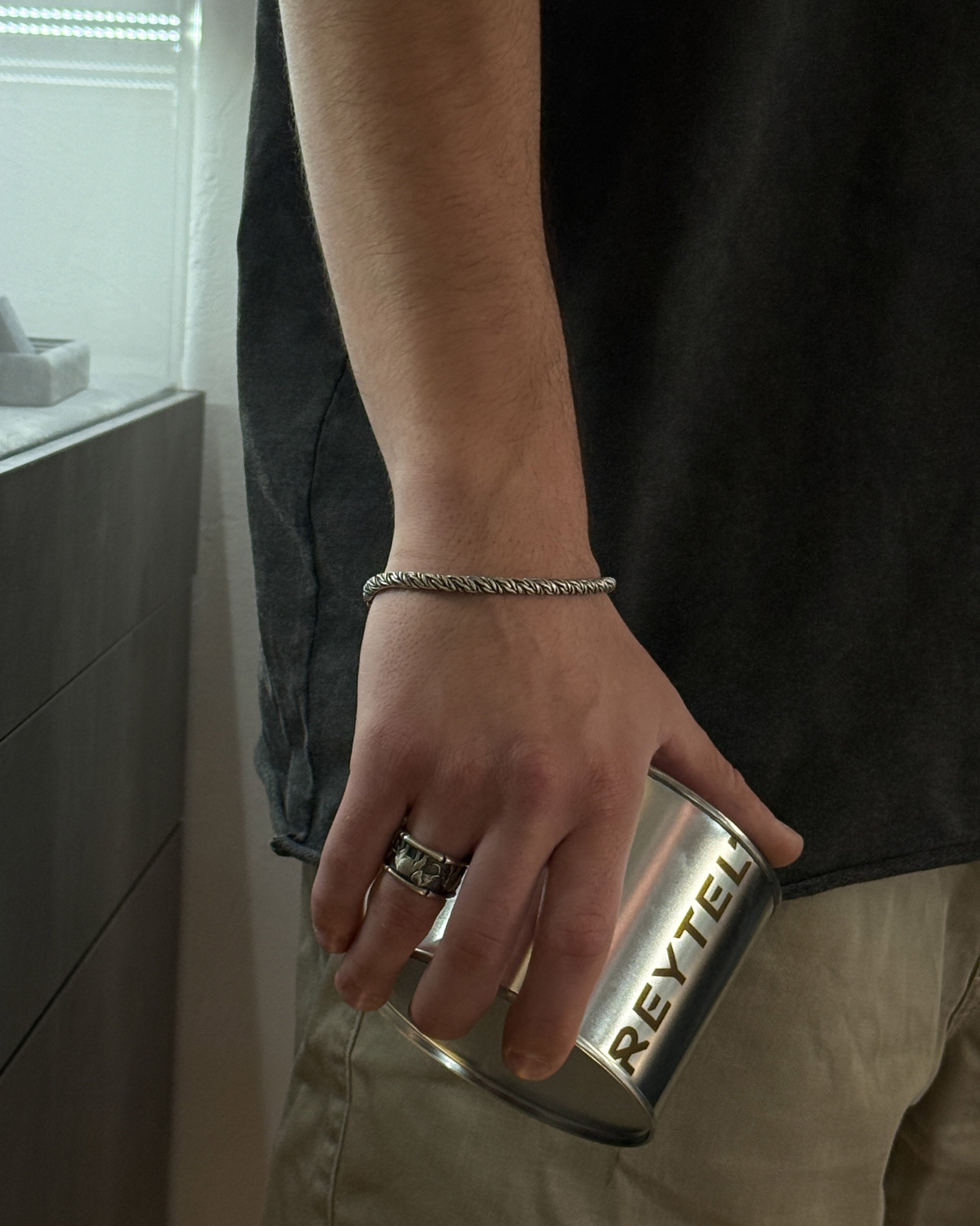 The placement and fonts are done in Reytel's signature style (if you have any special requests, please indicate them in the engraving field). You can choose your own text or symbol that is important to you, and we will engrave it on the inside of the bracelet. For example, you can engrave a name "Denis", a date "07/04/2024", coordinates 44°23'52°25'-22°08'40°13', or a short phrase "The spirit that body seeks to fight". Example: "07/04/2024" or "My home - my fortress".