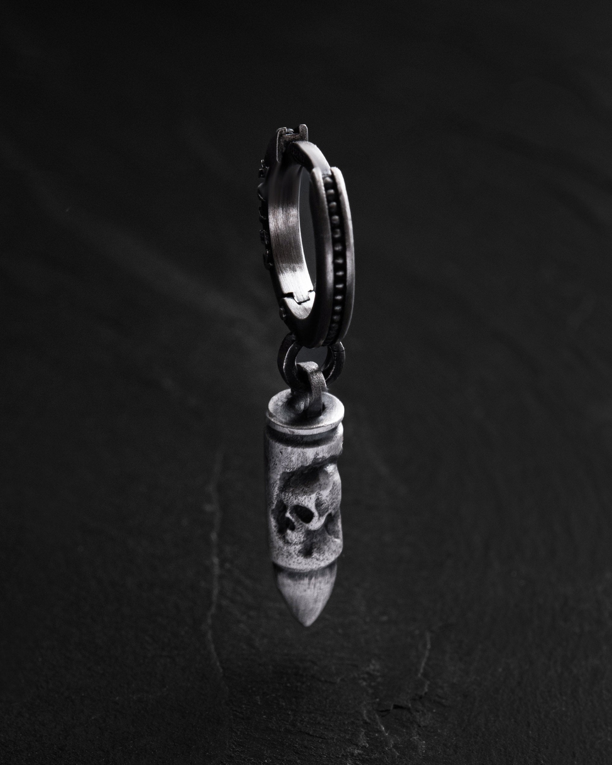 This earring combines two powerful symbols — the bullet and the skull — forming a sign of determination, risk, and deep awareness. The bullet stands for speed, action, and the ability to break through obstacles. The skull carved into it is a reminder of life’s fragility and the strength to live consciously: memento mori — “remember you must die.”