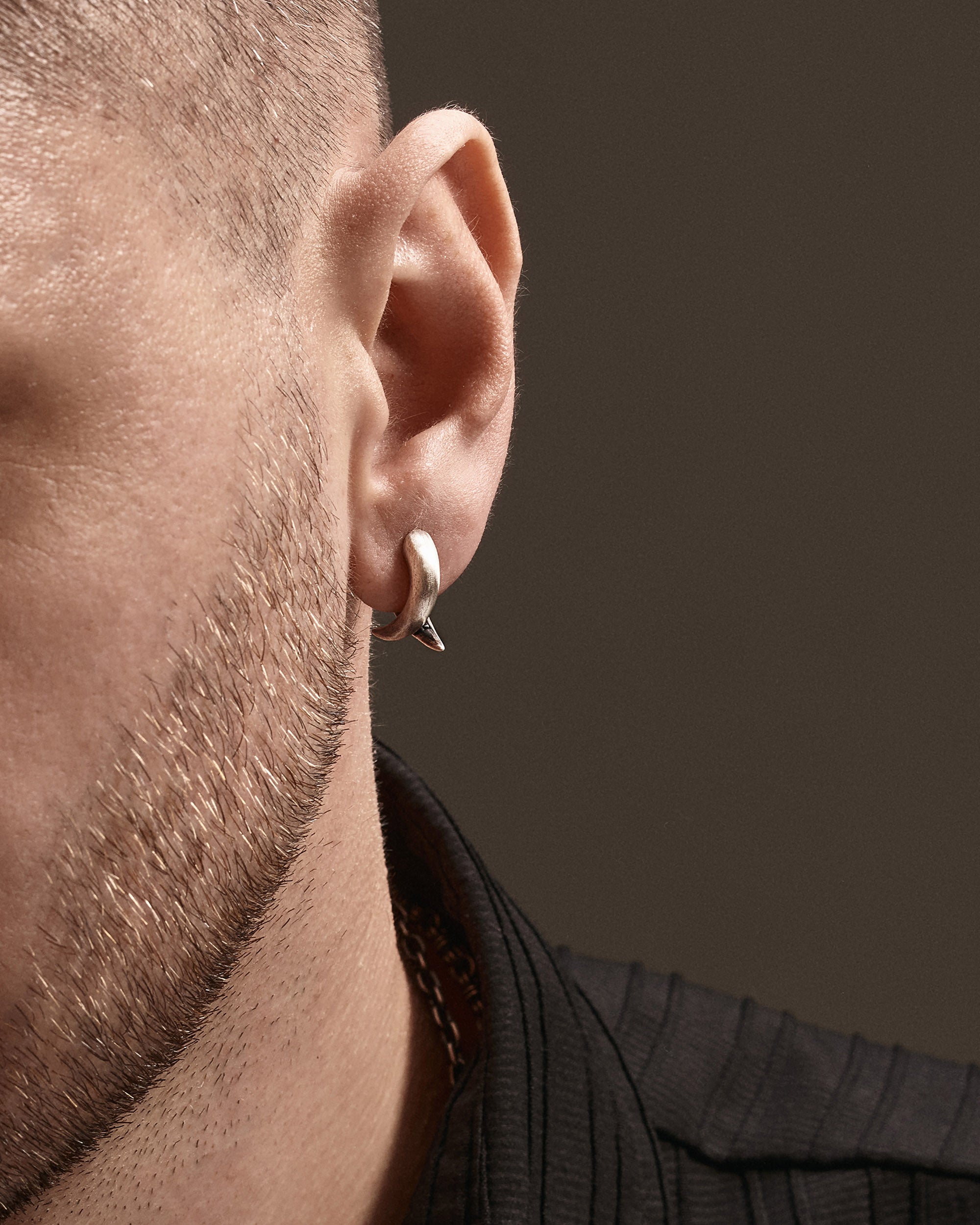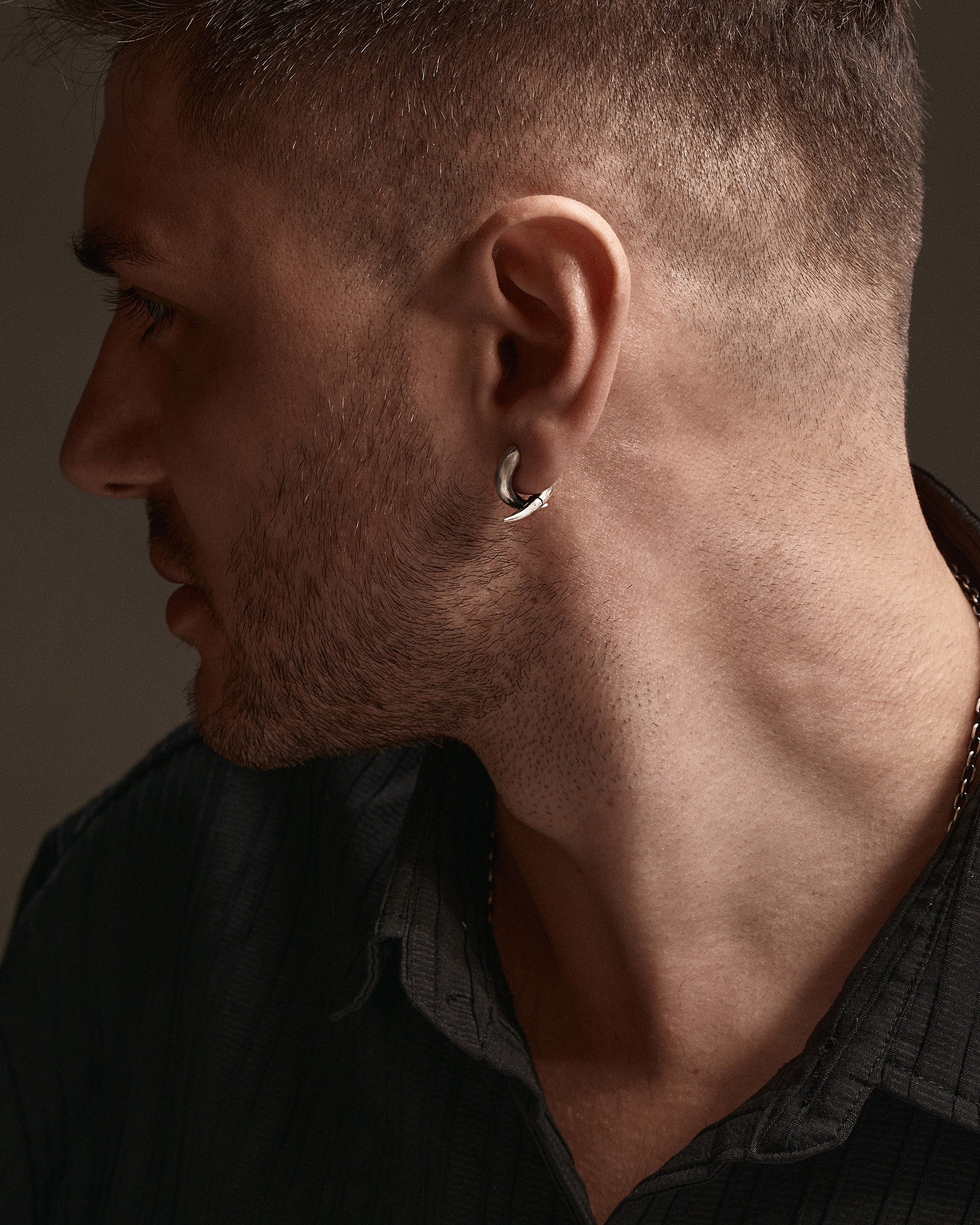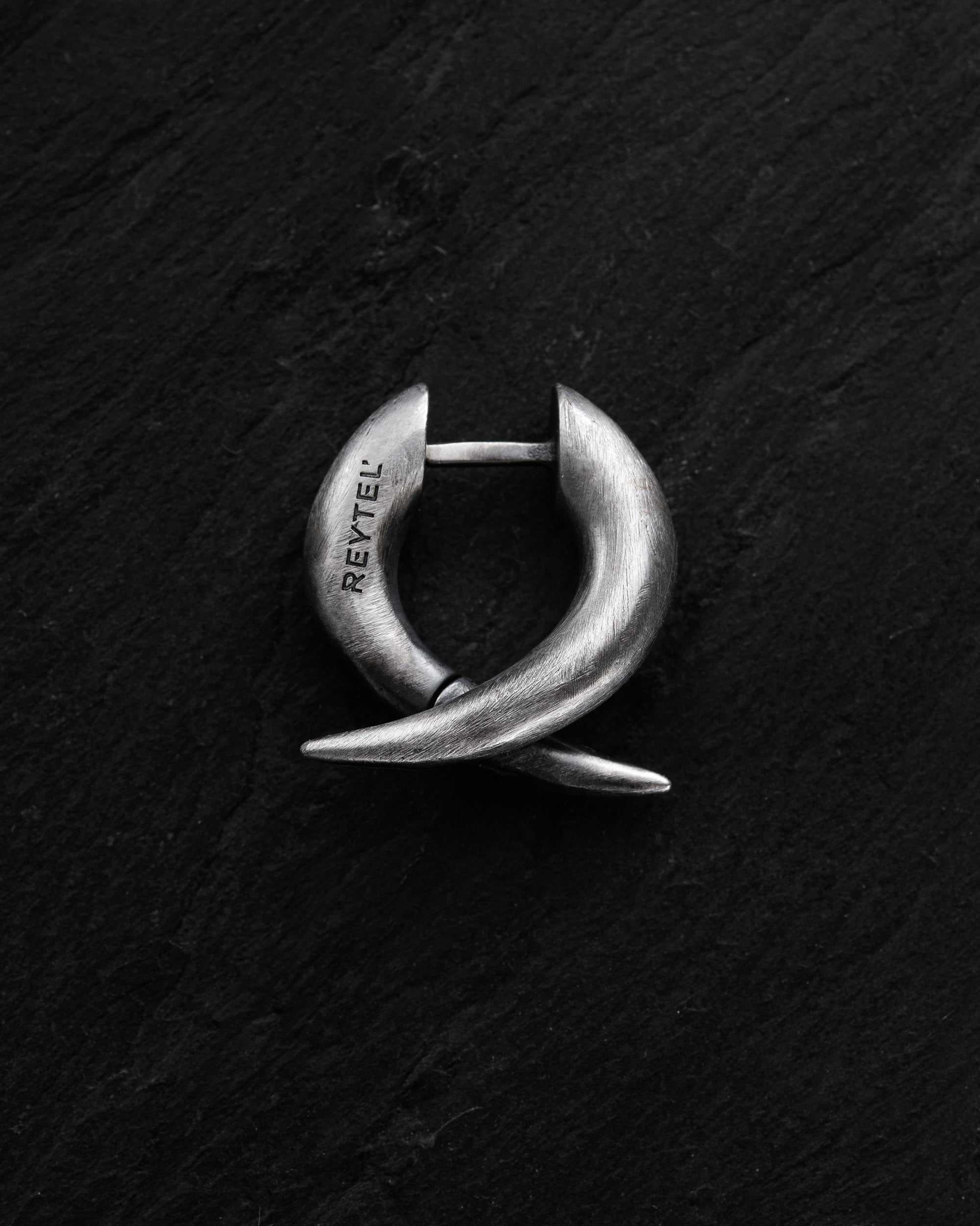 The name "FARLIG" comes from a Scandinavian word that translates to "dangerous." This earring embodies the symbolism of strength, bravery, and the readiness to face challenges. Made of silver, "FARLIG" serves as a reminder of the inner power and courage needed to overcome dangers and the unknown.