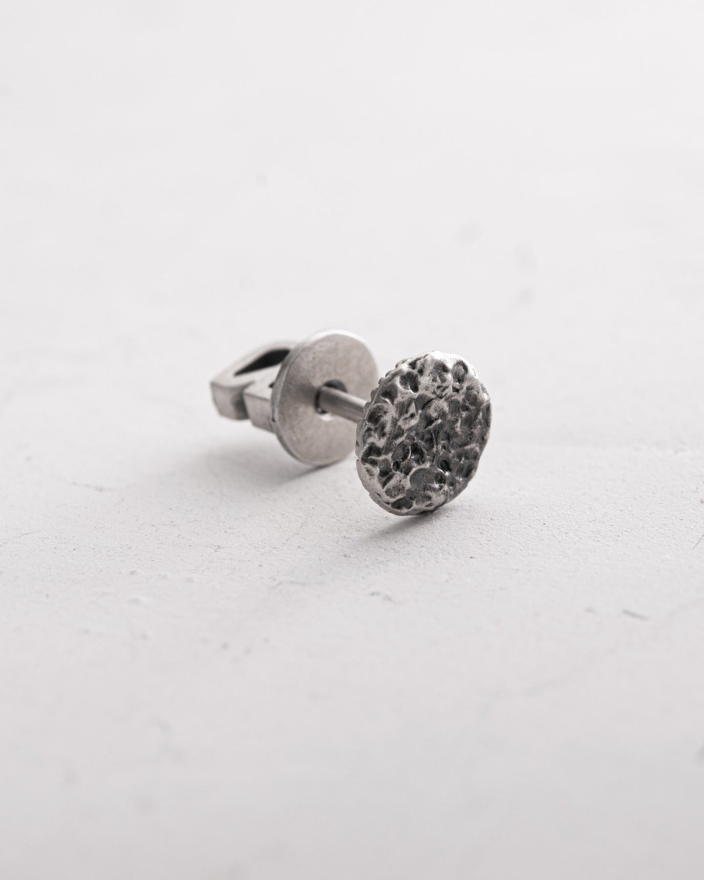MOON — a silver single earring inspired by the power of the night sky’s celestial light. Its textured surface resembles the craters of the Moon — a symbol of constancy, self-control, and inner light that never fades, even in darkness. This piece embodies the calm, wisdom, and strength of a man who maintains balance between light and shadow. MOON inspires you to stay composed amid chaos, to see the path in the dark, and to trust your inner strength when silence surrounds you.