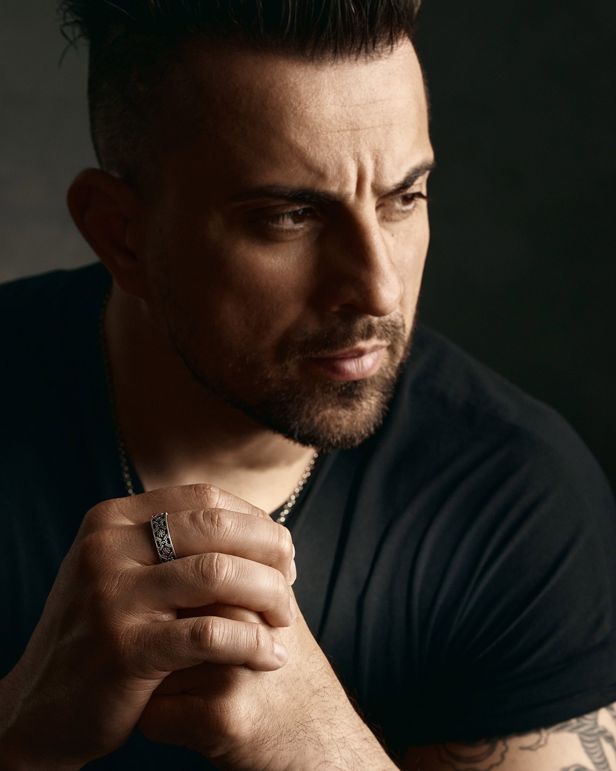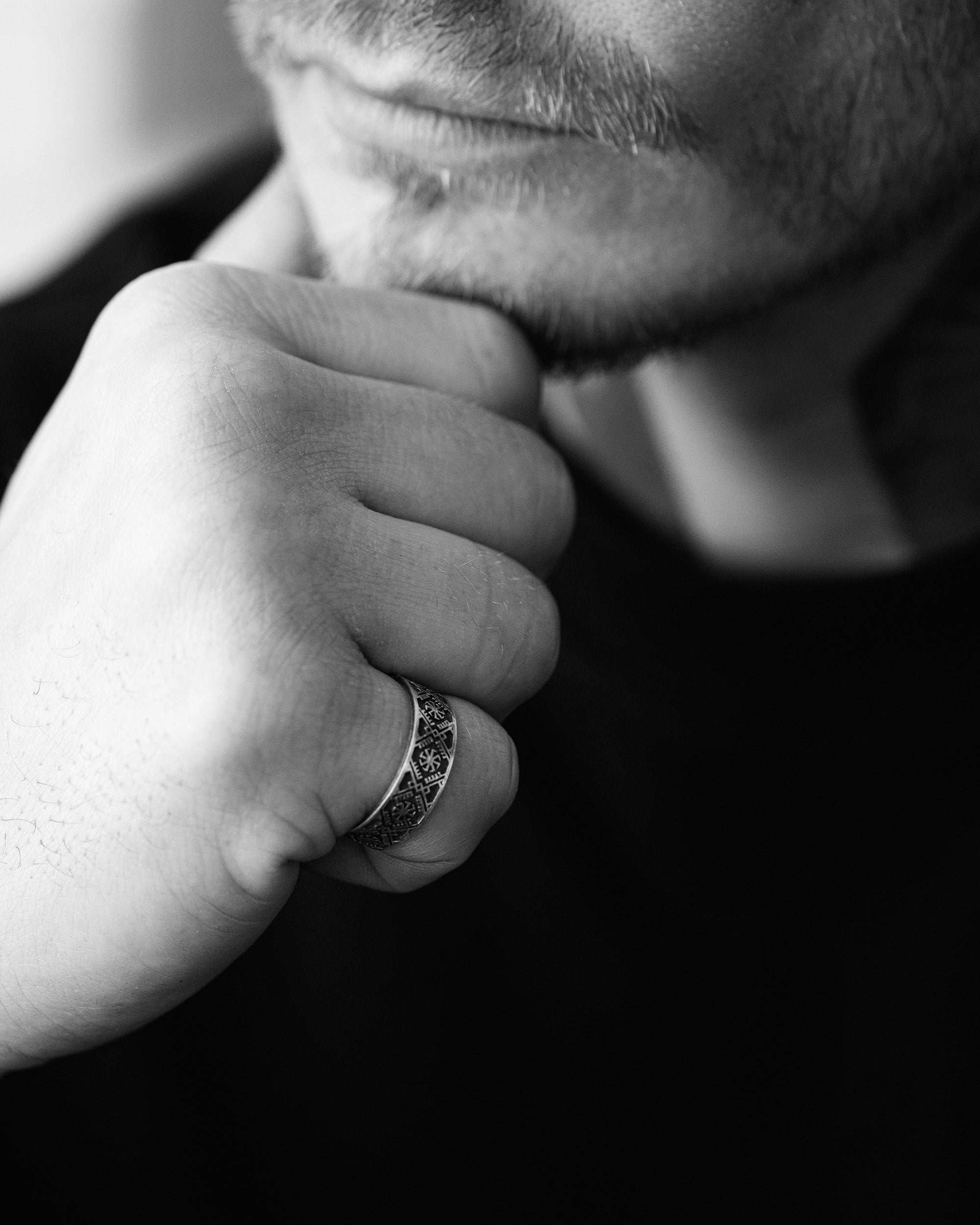 The men's ring "VYSHYVANKA - CROSS LADI" features the following symbols: