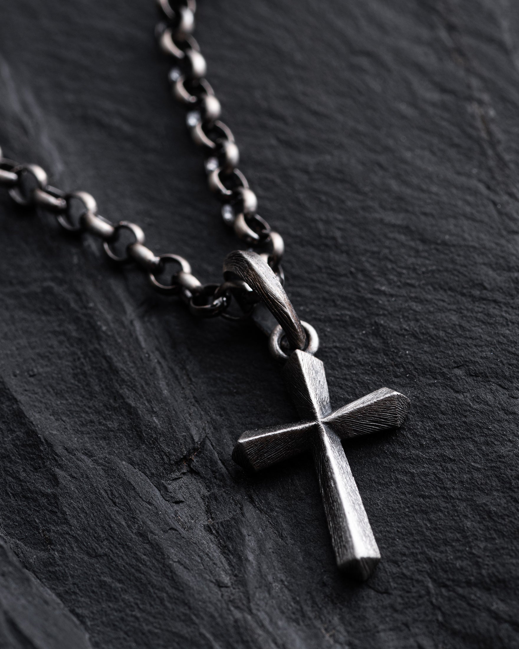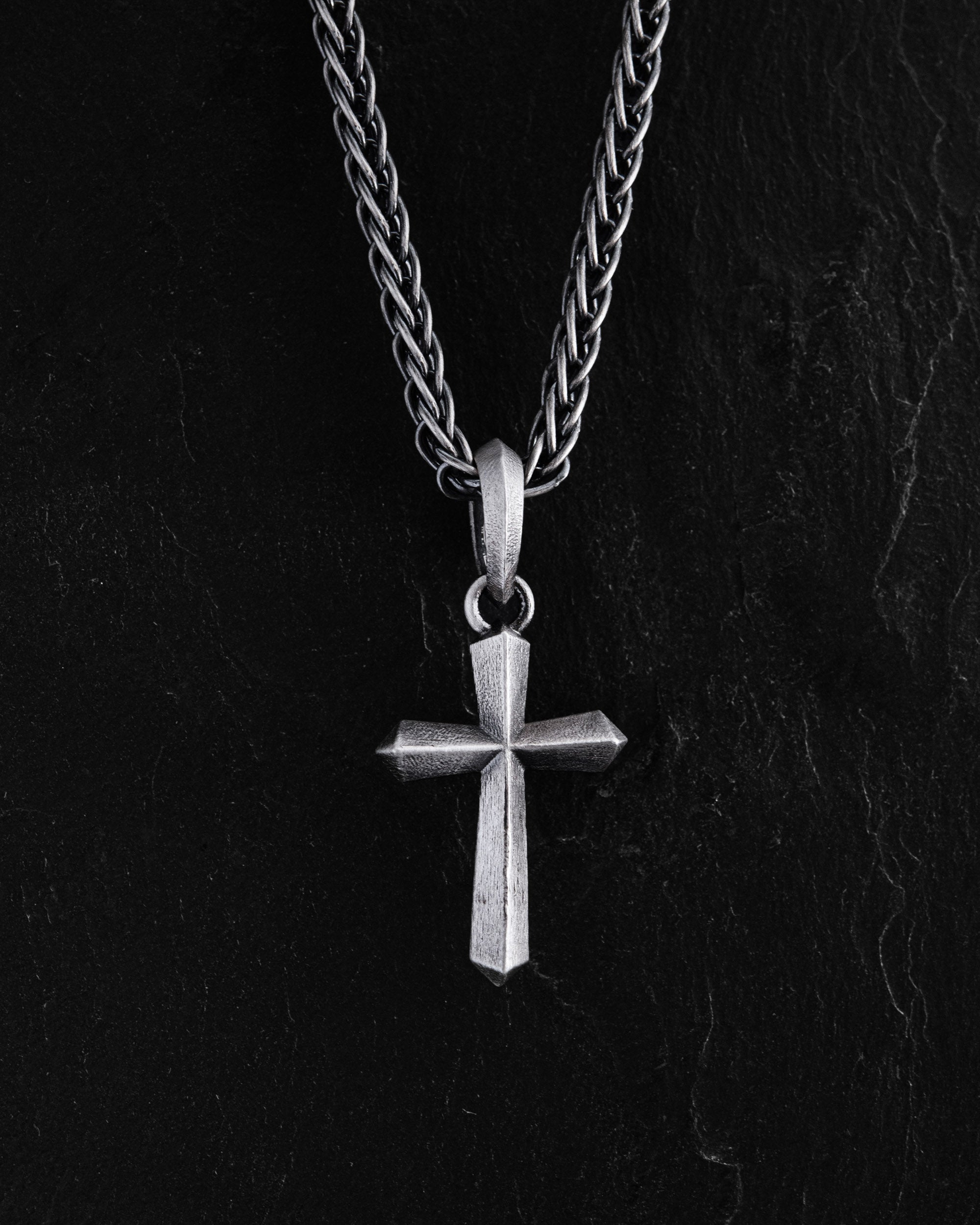 The silver cross GLAUBE stands out for its textured surface, adding a unique charm and character. "GLAUBE", meaning "faith" in German, is more than just an accessory; it's a powerful symbol of personal belief and spirituality. Its minimalist design emphasizes the profound meaning of faith, reminding of the strength and importance of spiritual values in everyday life. This cross can serve as a personal talisman, as well as a subtle sign of faith, complementing its owner's image with true depth and meaning.