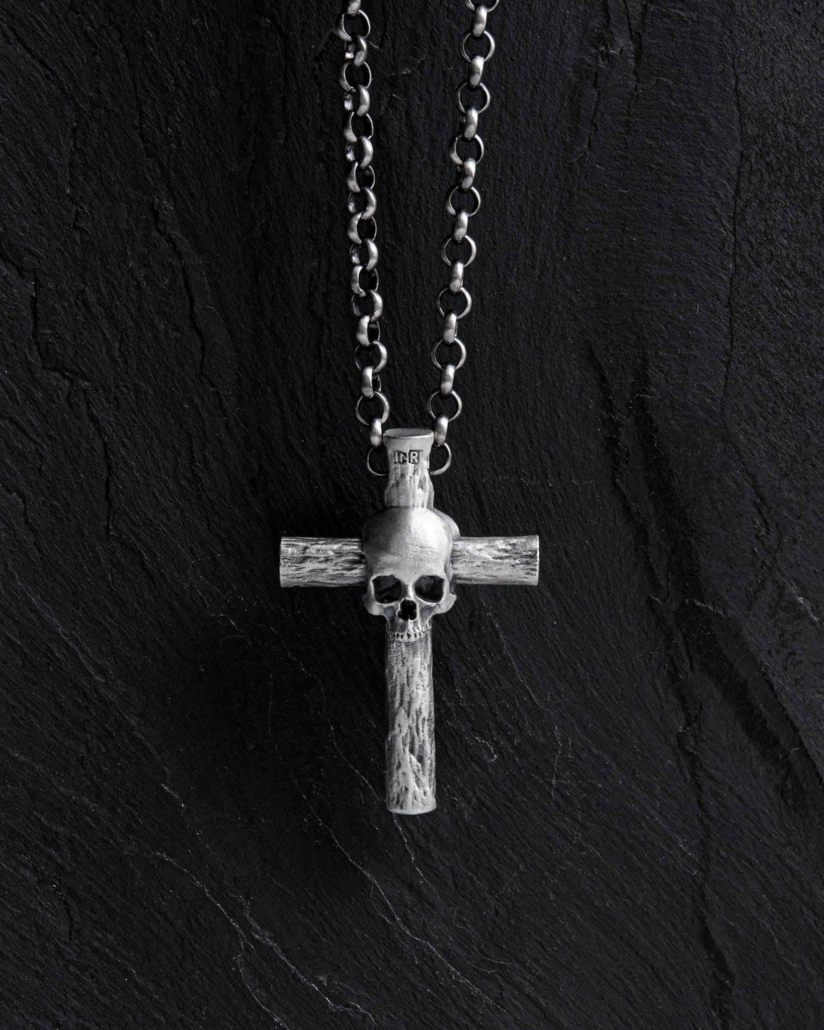 The silver cross "MEMENTO MORI" captivates with its symbolism, combining the image of a cross with a skull. The name "Memento Mori" translates as "remember death", serving as a reminder of the temporality of human existence and the importance of each moment. The skull on the cross emphasizes the inevitability of the end and serves as a meditation on the themes of life and death.
