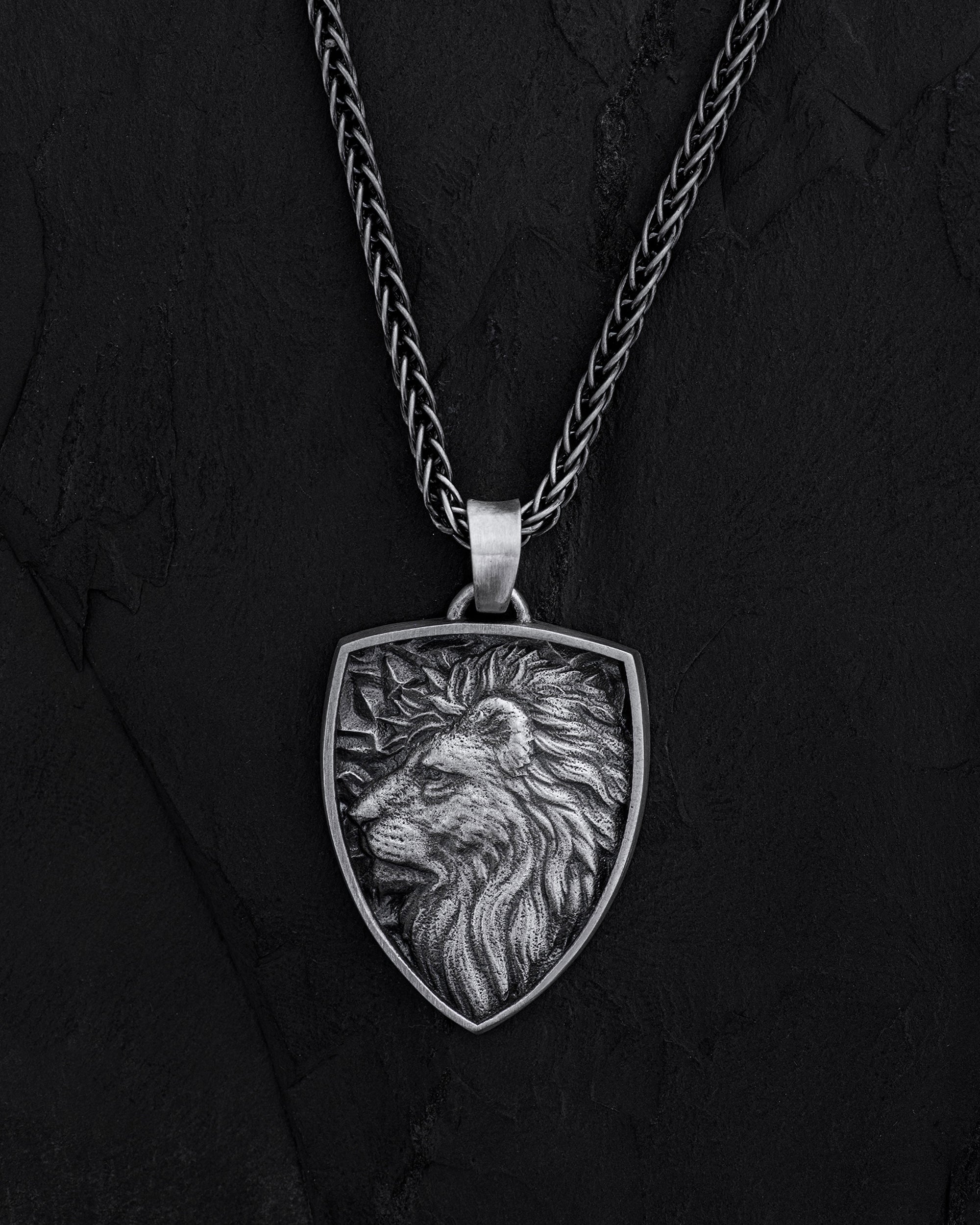 Silver pendant - shield LION is a true embodiment of courage and strength. The image of the lion, symbolizing bravery and regal majesty, bestows the pendant with profound meaning. This pendant will not only be a distinctive highlight in its owner's style but also a symbol of leadership and courage. It is ideal for those who value the strength of spirit and wish to accentuate their resilience and boldness.