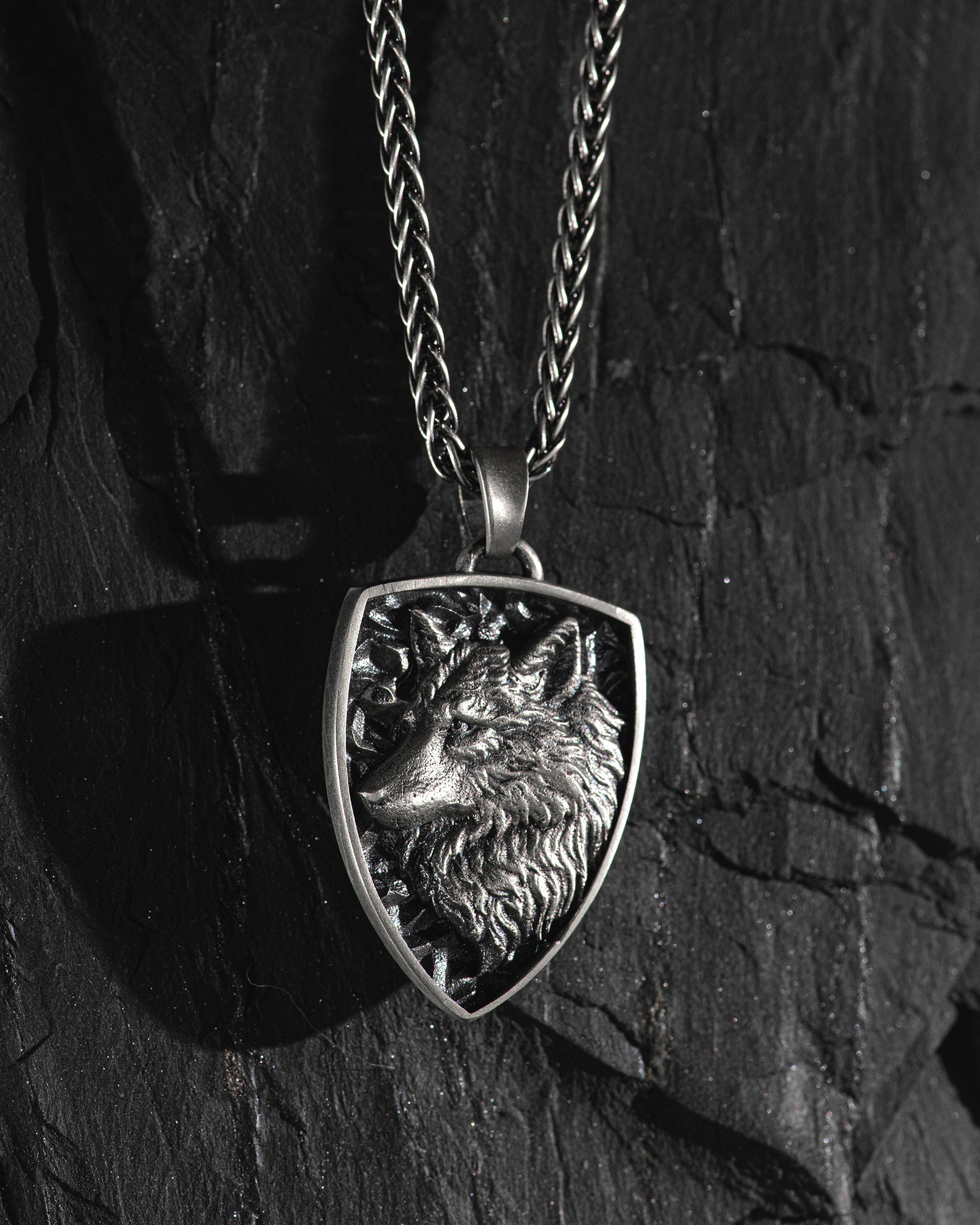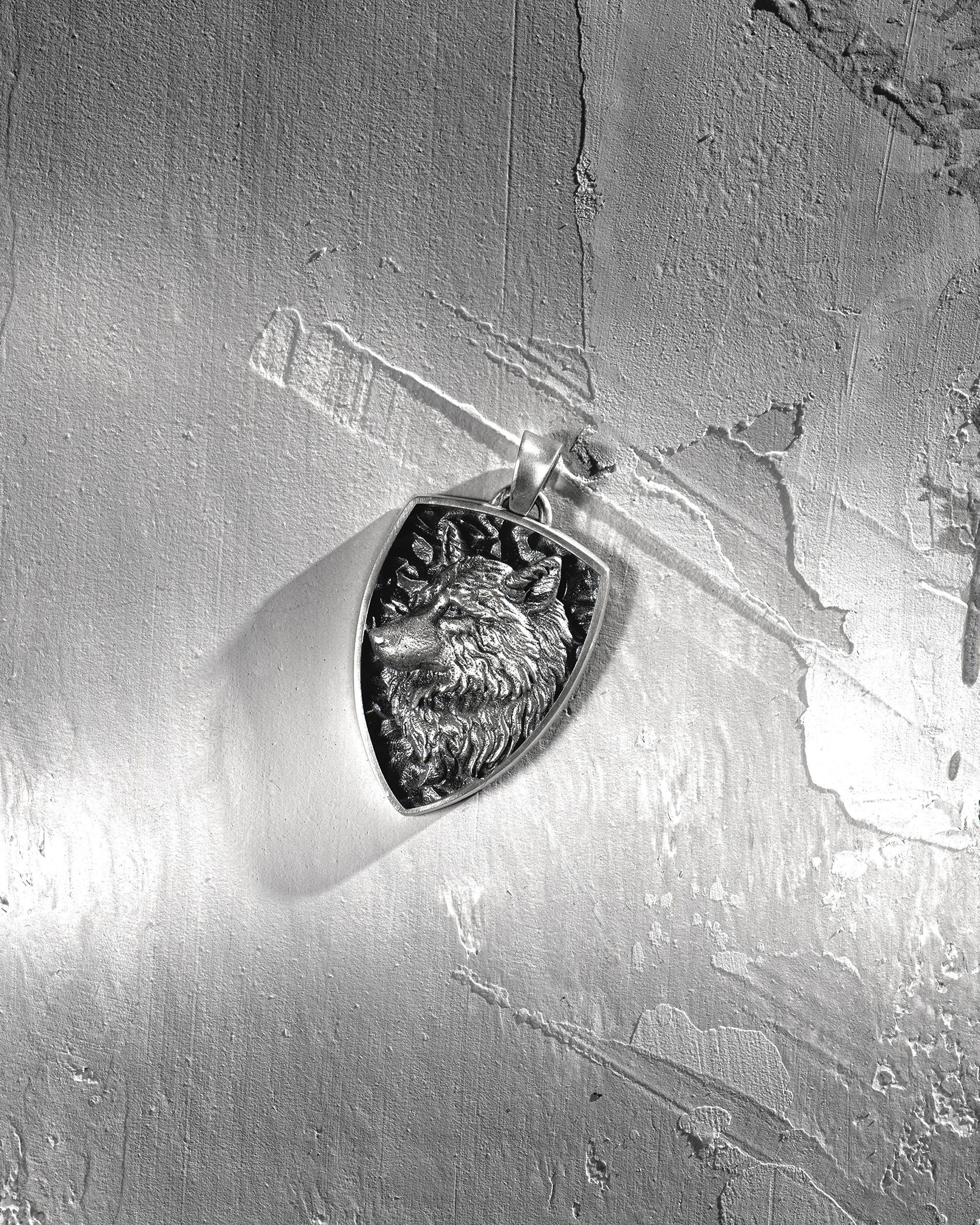 Silver pendant - shield WOLF carries a potent energy of a free spirit guided by deep instincts and intuition. It symbolizes not only independence but also the courage to stand alone and defend one's beliefs. The pendant can serve as a talisman for those who value family ties and loyalty, as well as a symbol of the independent spirit for adventurers, reflecting the natural bravery and leadership qualities of its owner.