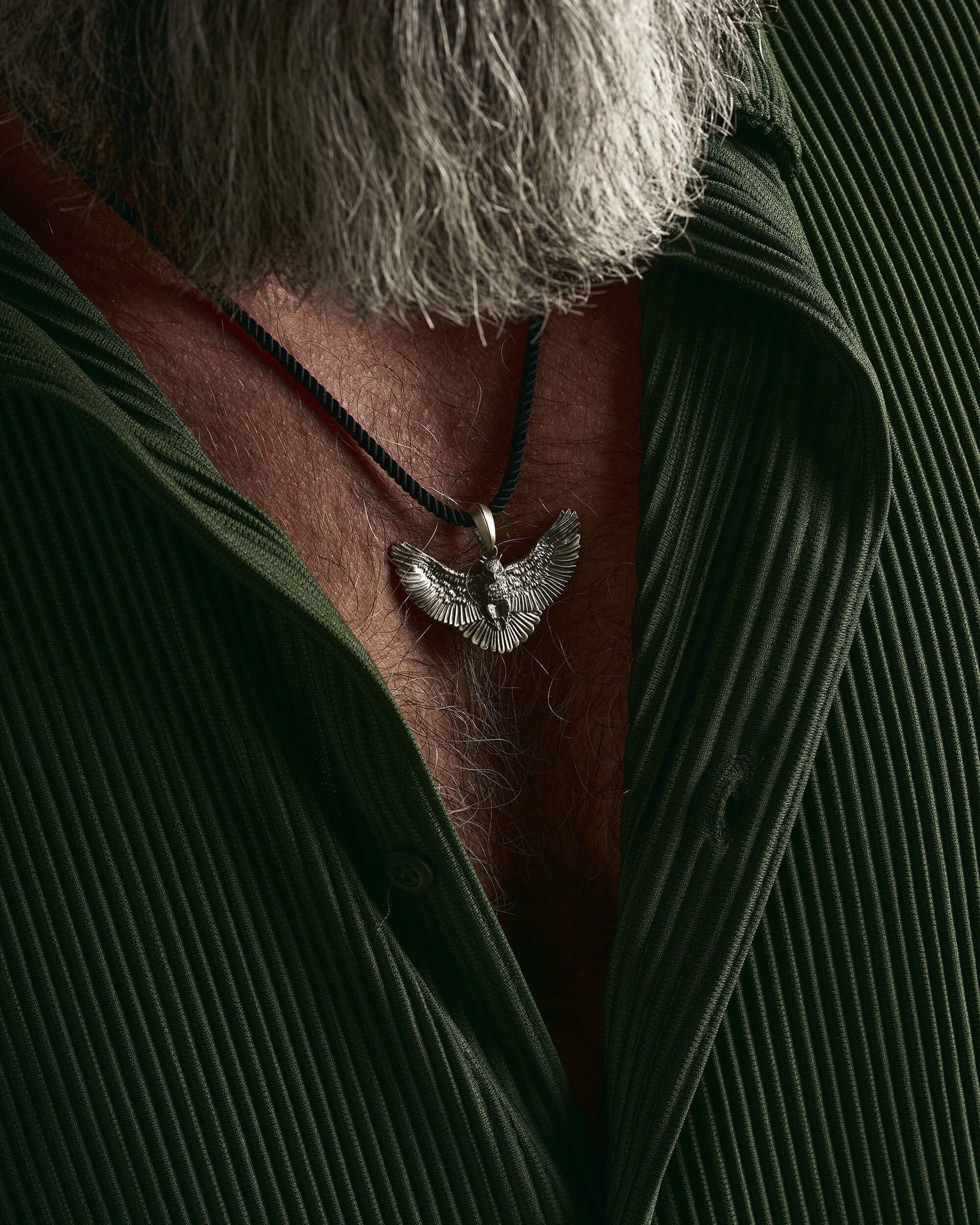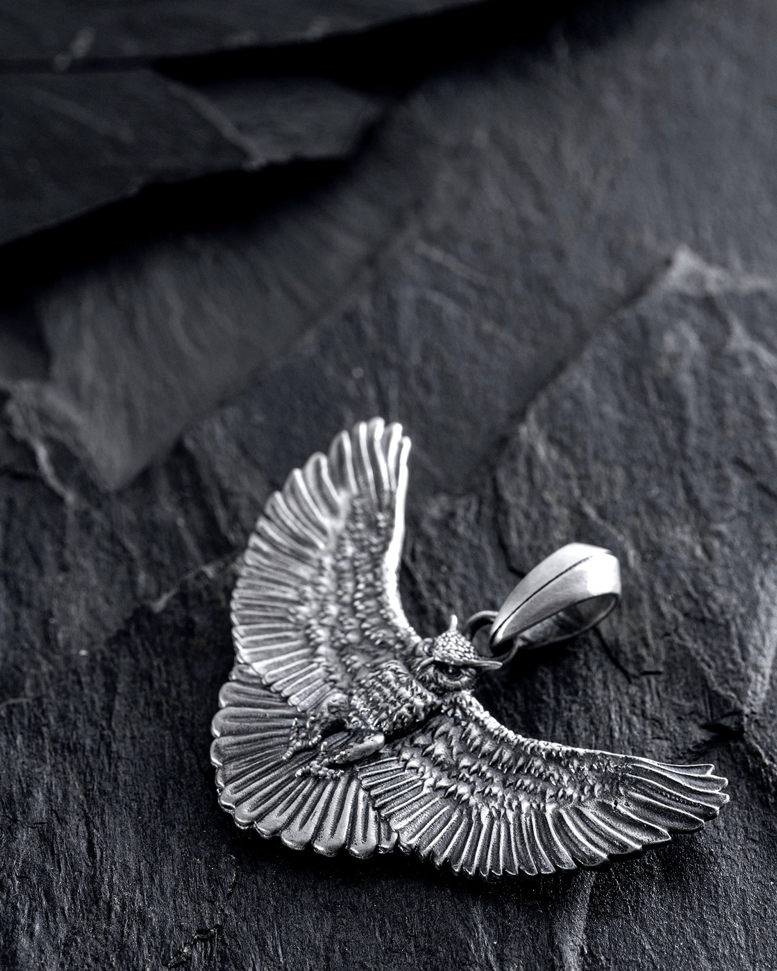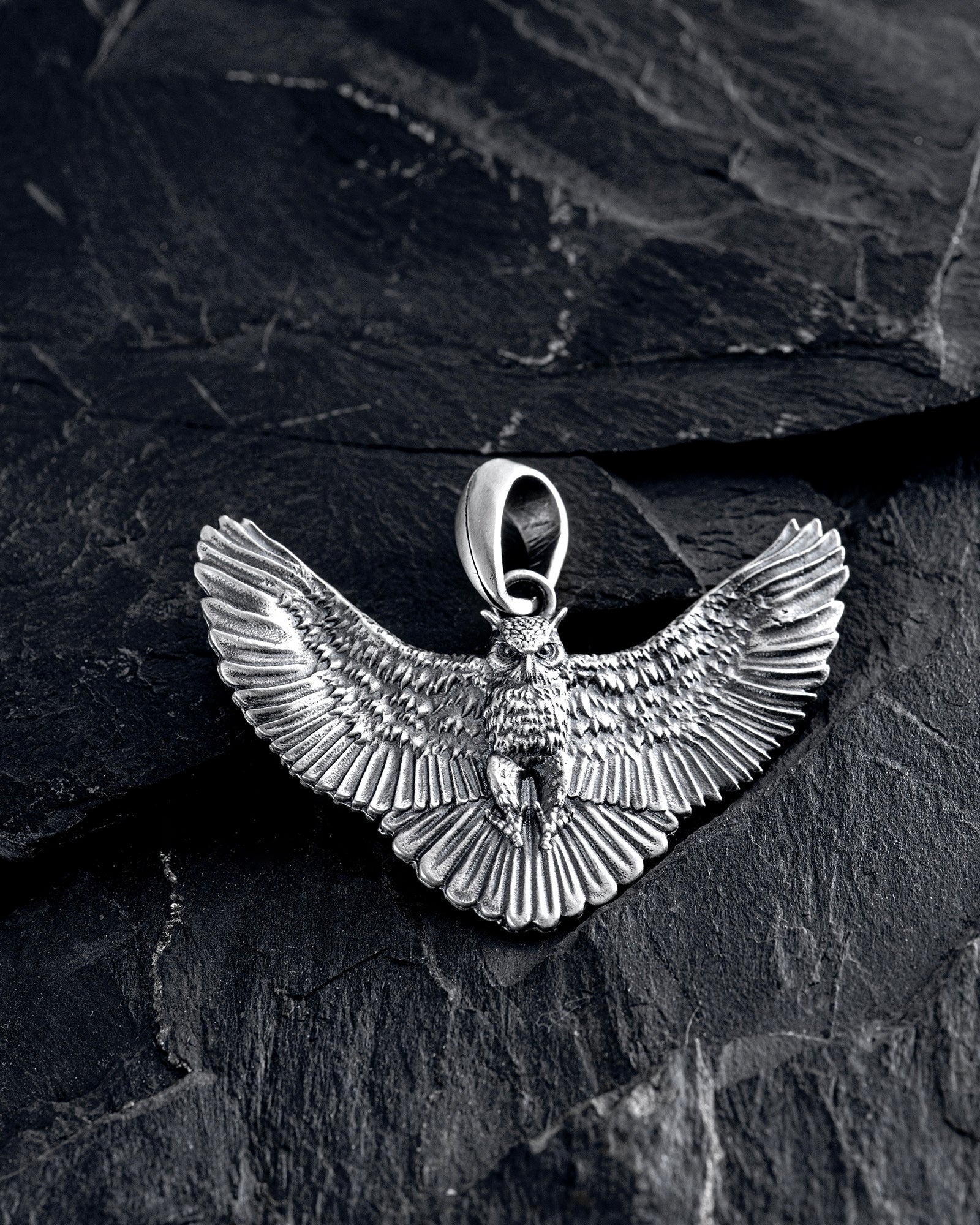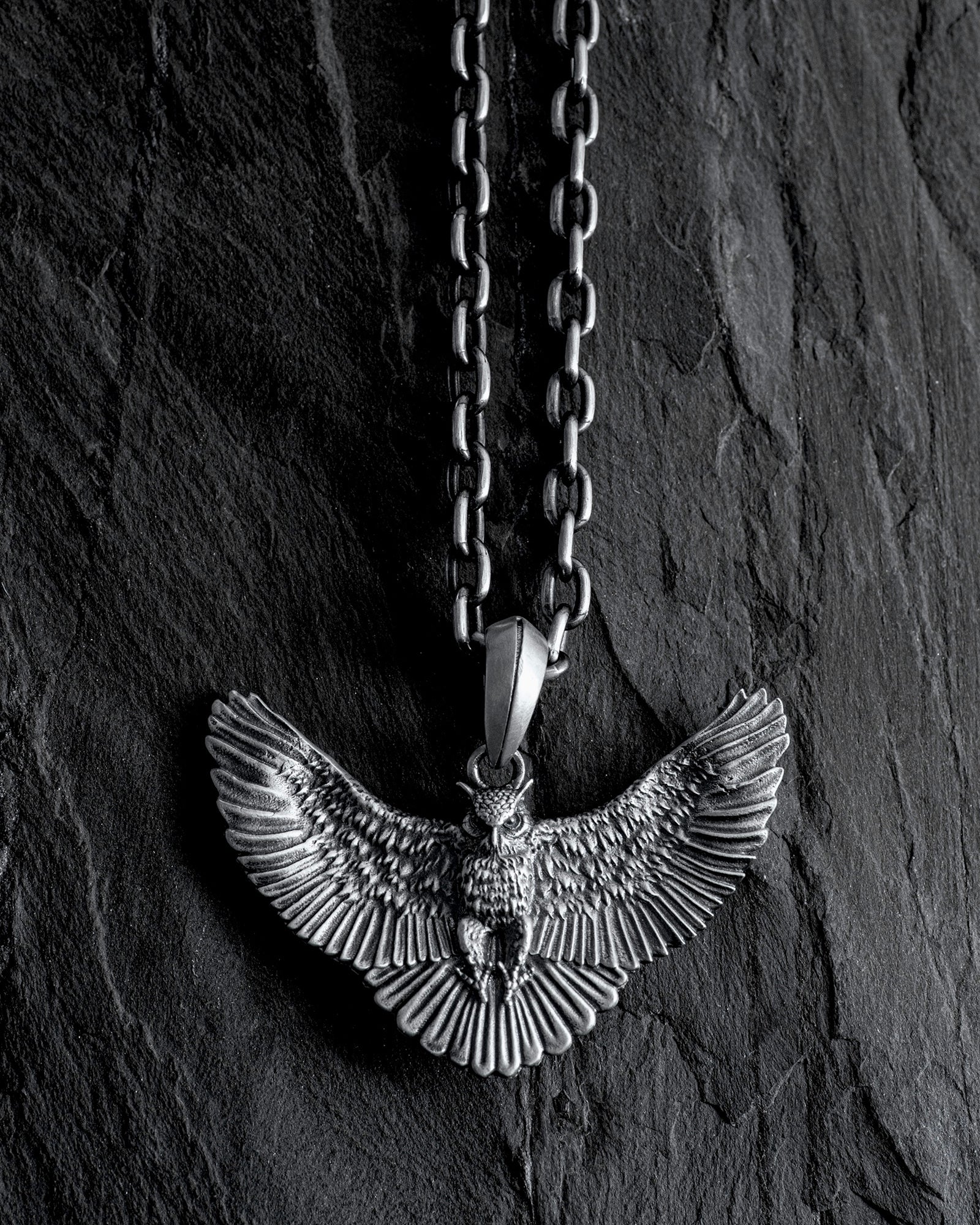 Silver pendant THE OWL symbolizes wisdom and knowledge. Historically associated with deep understanding and intuition, the owl on this pendant embodies masculine wisdom gained through experience. This pendant is an excellent symbol for men who seek self-development and self-discovery.