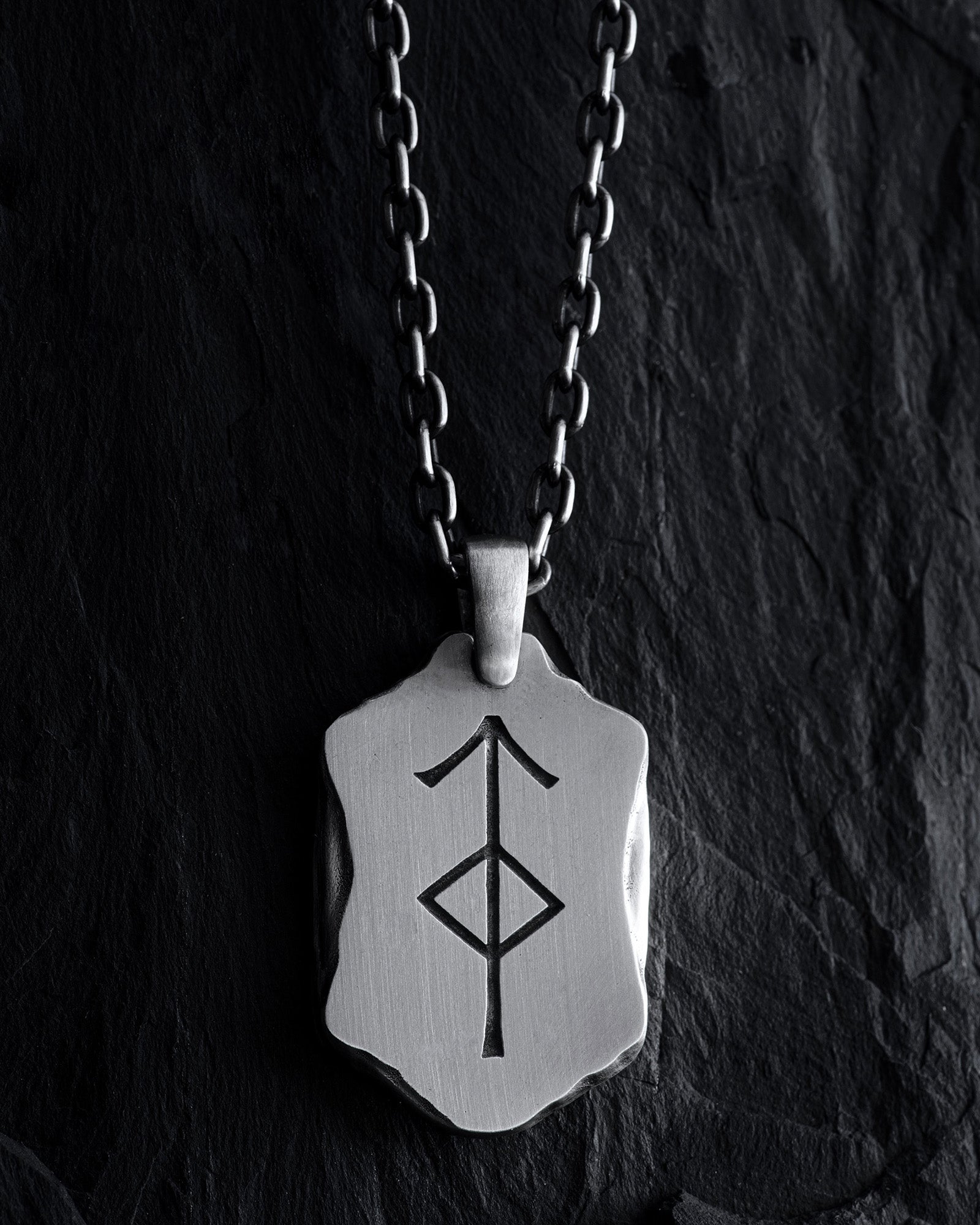 On the reverse side of the pendant are the runes Kenaz, Teiwaz, and Thurisaz, which symbolize knowledge, justice, and protection, uniting the spiritual energy and the heroic spirit of the ancestors.