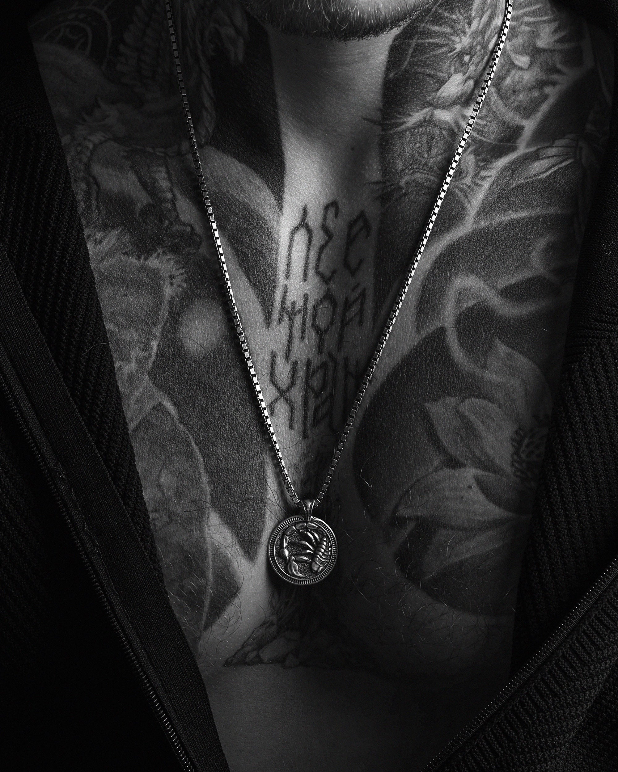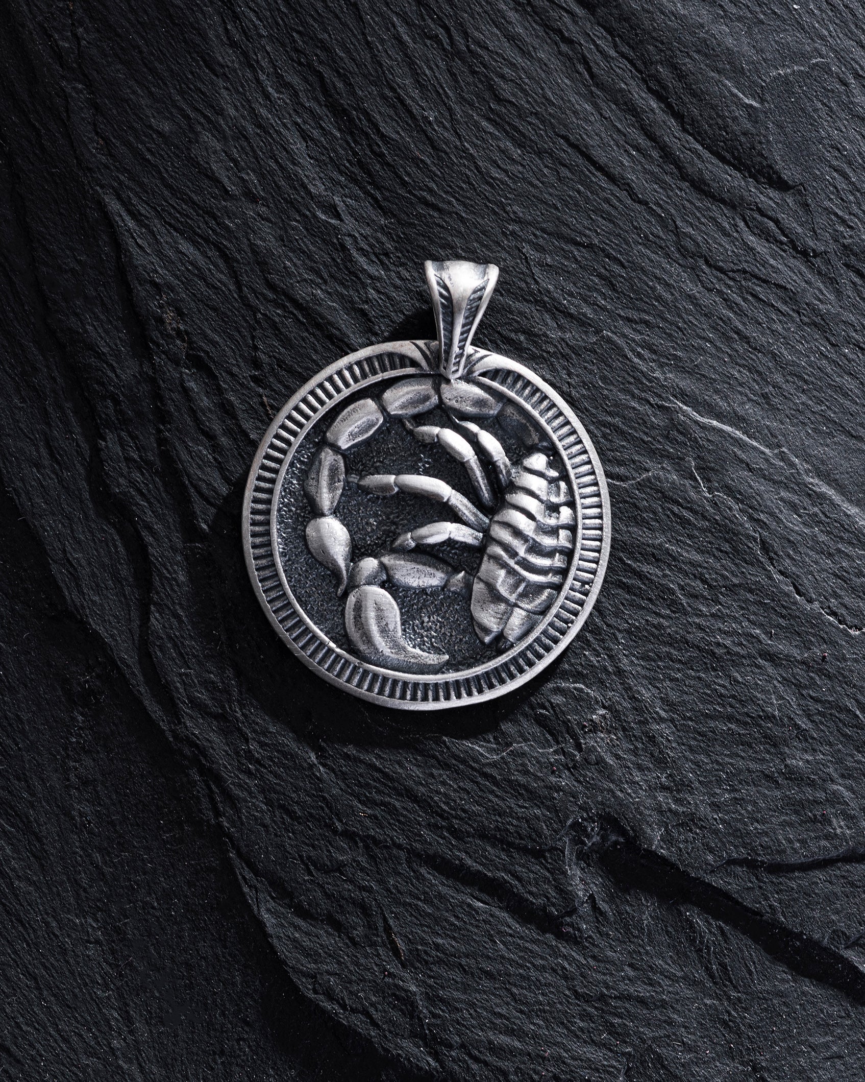 The pendant SCORPIO embodies the intensity, passion, and mystery of this water sign. It symbolizes deep emotions and the relentless pursuit of truth, reflecting the characteristic mystery and willpower of Scorpios.