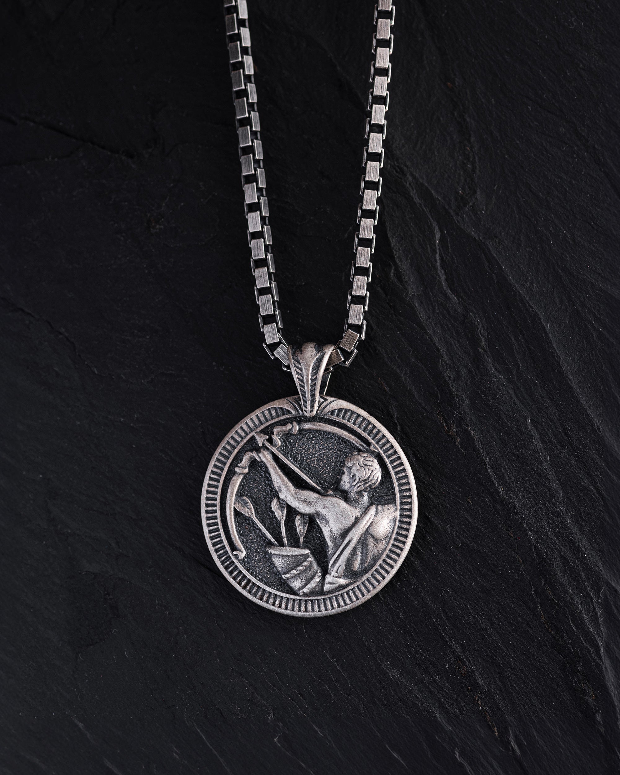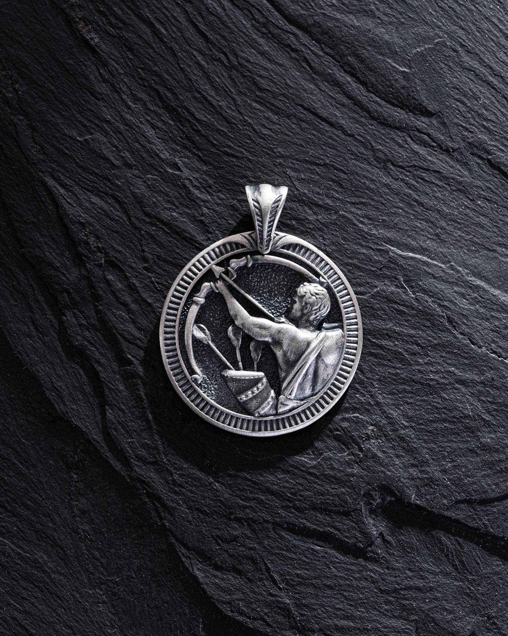 The silver pendant SAGITTARIUS represents the love of freedom and optimism of this fire sign. It symbolizes the desire for adventure, a philosophical view of life, and a constant quest for knowledge, reflecting the Sagittarius's urge to explore the world.