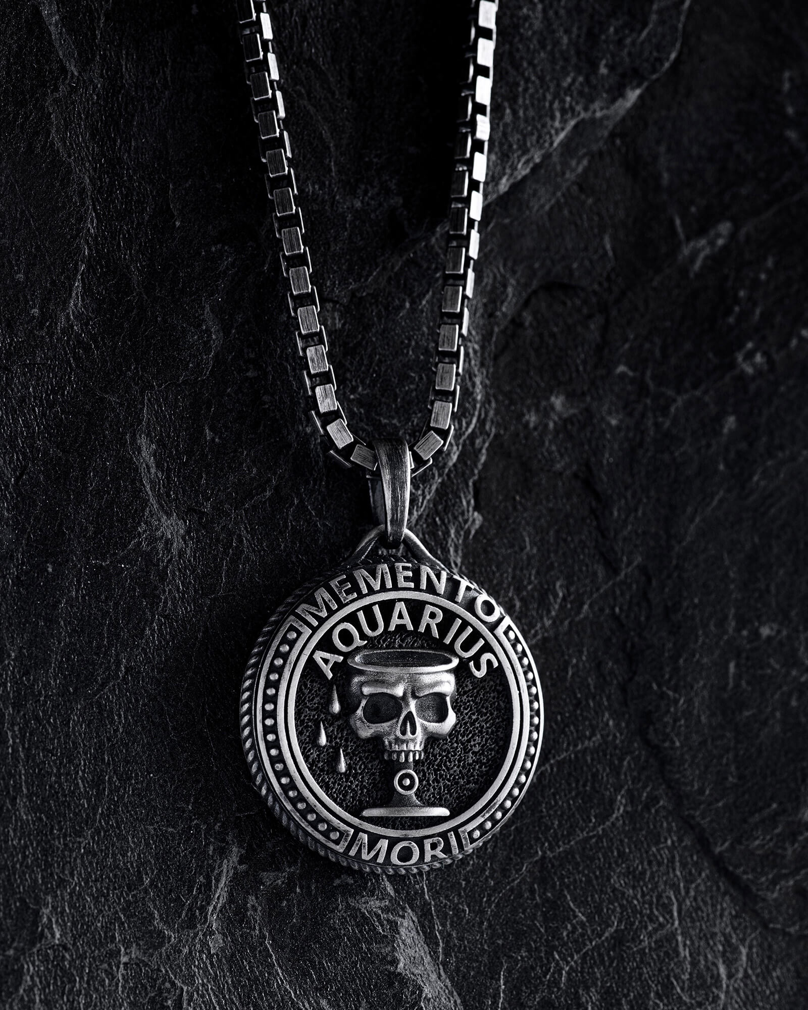 Aquarians are distinguished by their independence and innovativeness. This skull pendant highlights their desire to be unique, and "memento mori" motivates them to stay true to their ideals and create change.