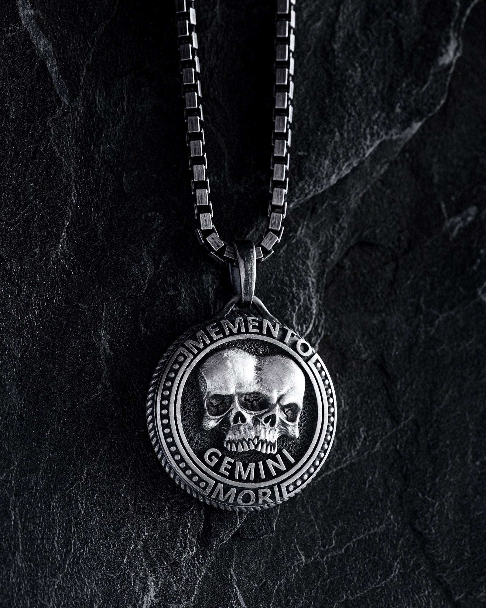 Gemini is known for their adaptability and intellectual flexibility. This skull pendant emphasizes this versatility, and "memento mori" reminds them of the need to use every moment for personal development.