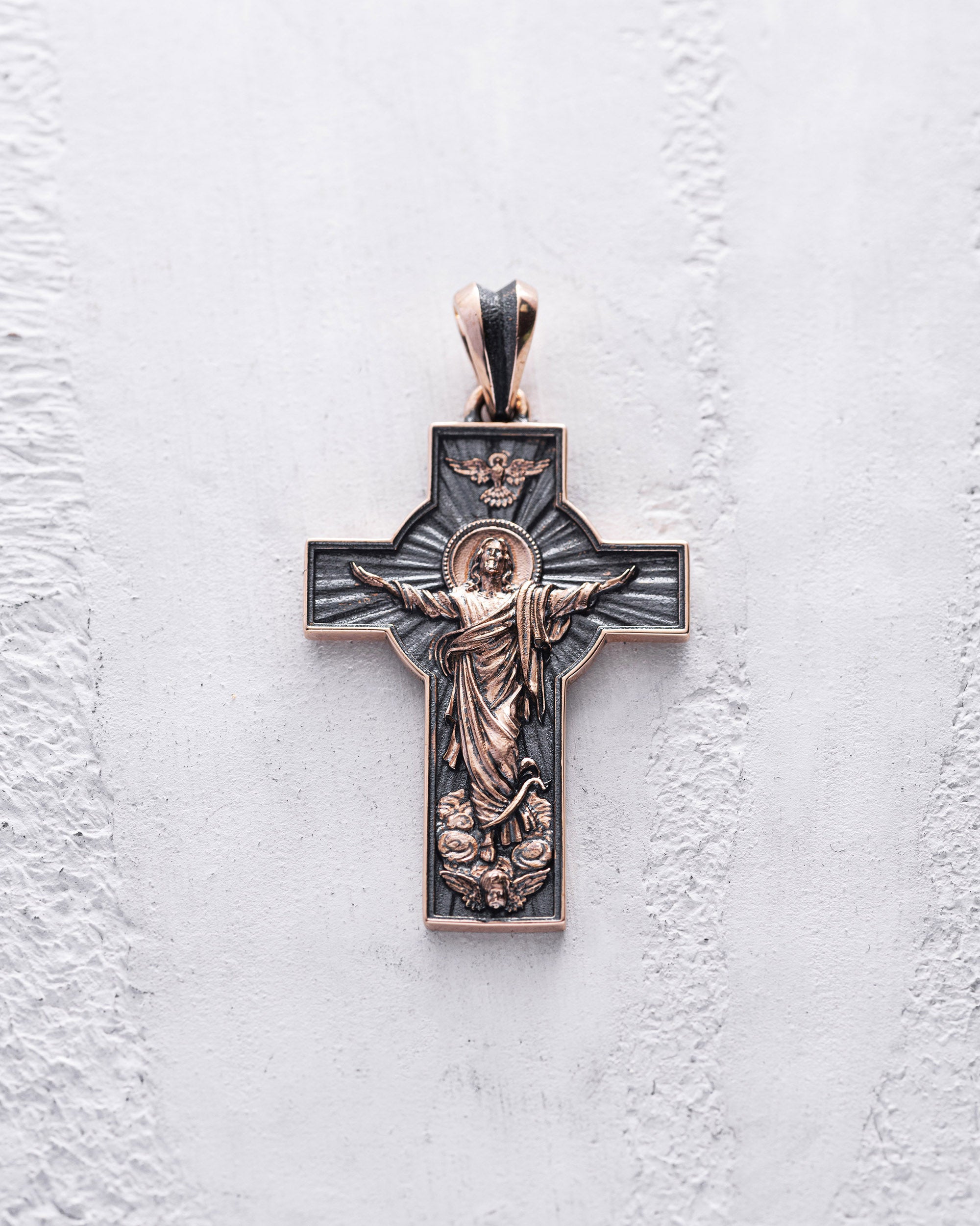 The 'RESURRECTION' cross inspires renewal and rebirth, emphasizing the possibility of change and a new beginning regardless of past mistakes. Wearing this cross can serve as a personal symbol of rebirth, strengthening the connection with faith and giving the owner a sense of protection, strength, and hope.