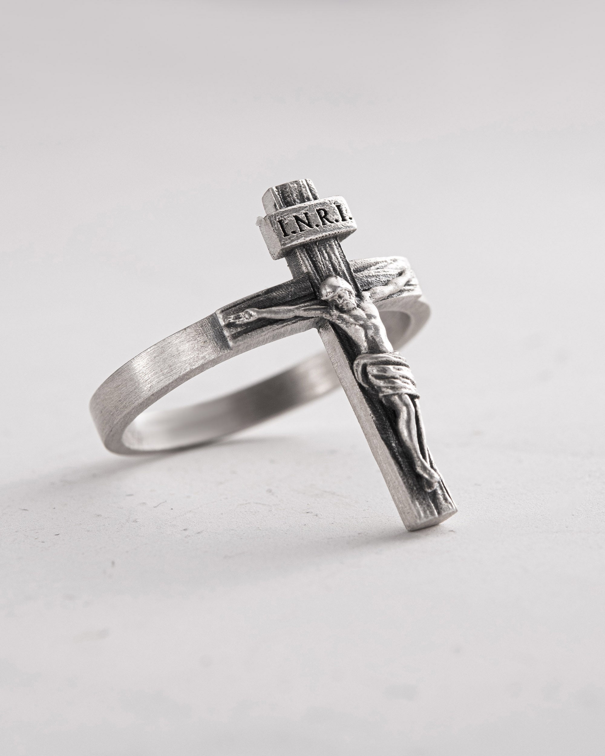 JESUS CRUCIFIX INRI — a silver ring depicting Christ on the cross, reminding of faith, sacrifice, and strength of spirit. The inscription INRI (Iesus Nazarenus Rex Iudaeorum — Jesus of Nazareth, King of the Jews) is a sign of truth that the cruelty of the world could not conquer. This ring speaks of devotion to one’s beliefs and the courage to remain faithful to the light even in the darkest times. JESUS CRUCIFIX INRI is not just a men’s ring, but a spiritual talisman and a reminder of the inner power of faith.