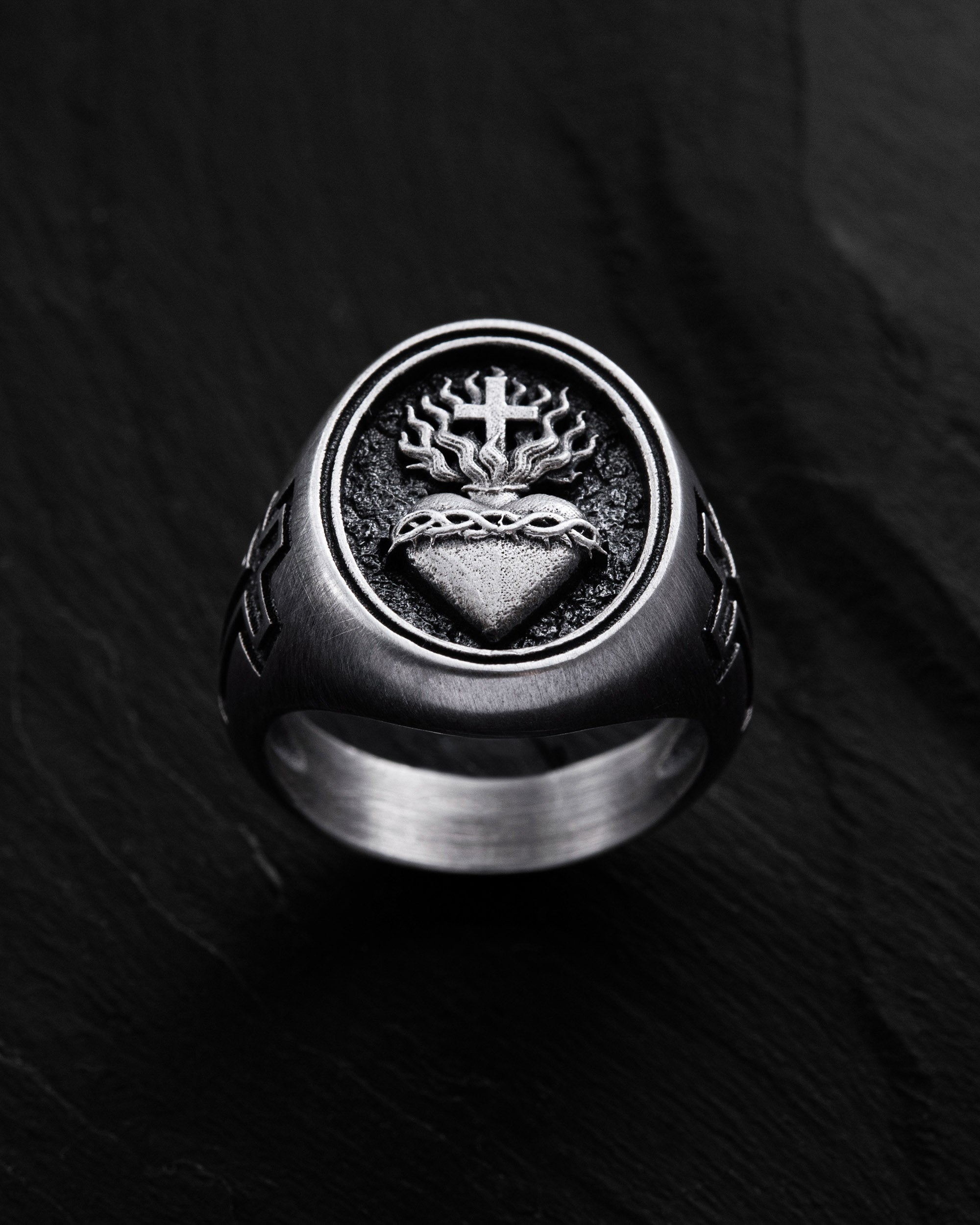 The men’s ring SACRED HEART speaks of loyalty, compassion, and spiritual balance. It is a reminder that true strength lies in a heart that can love despite everything.