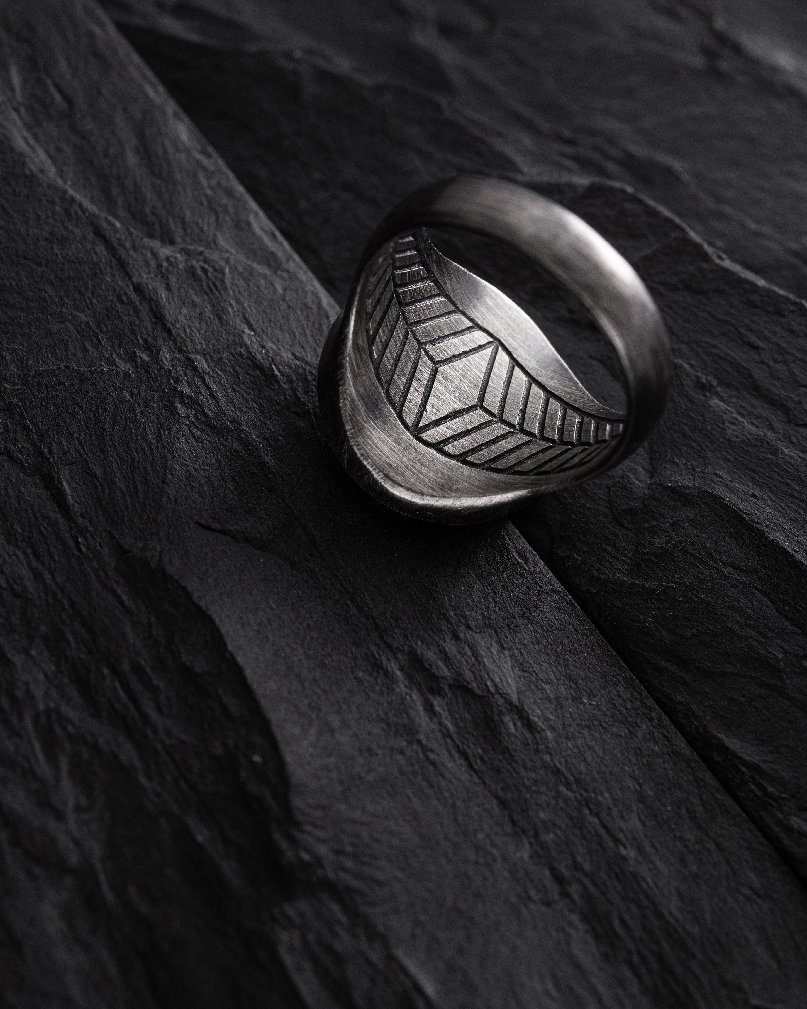 Placement and fonts are done in the Reytel’ signature style (if you have specific preferences, please specify in the engraving field). You can choose your own text or symbol that is important to you, and we will engrave it on the inner side of the ring. For example, you can engrave a name "Denys," a date "07/04/2024," coordinates "44°23'52°25'-22°08'40°13'," or a short phrase "The spirit that tears the body to battle." Example: «07/04/2024» or «My home is my fortress.»