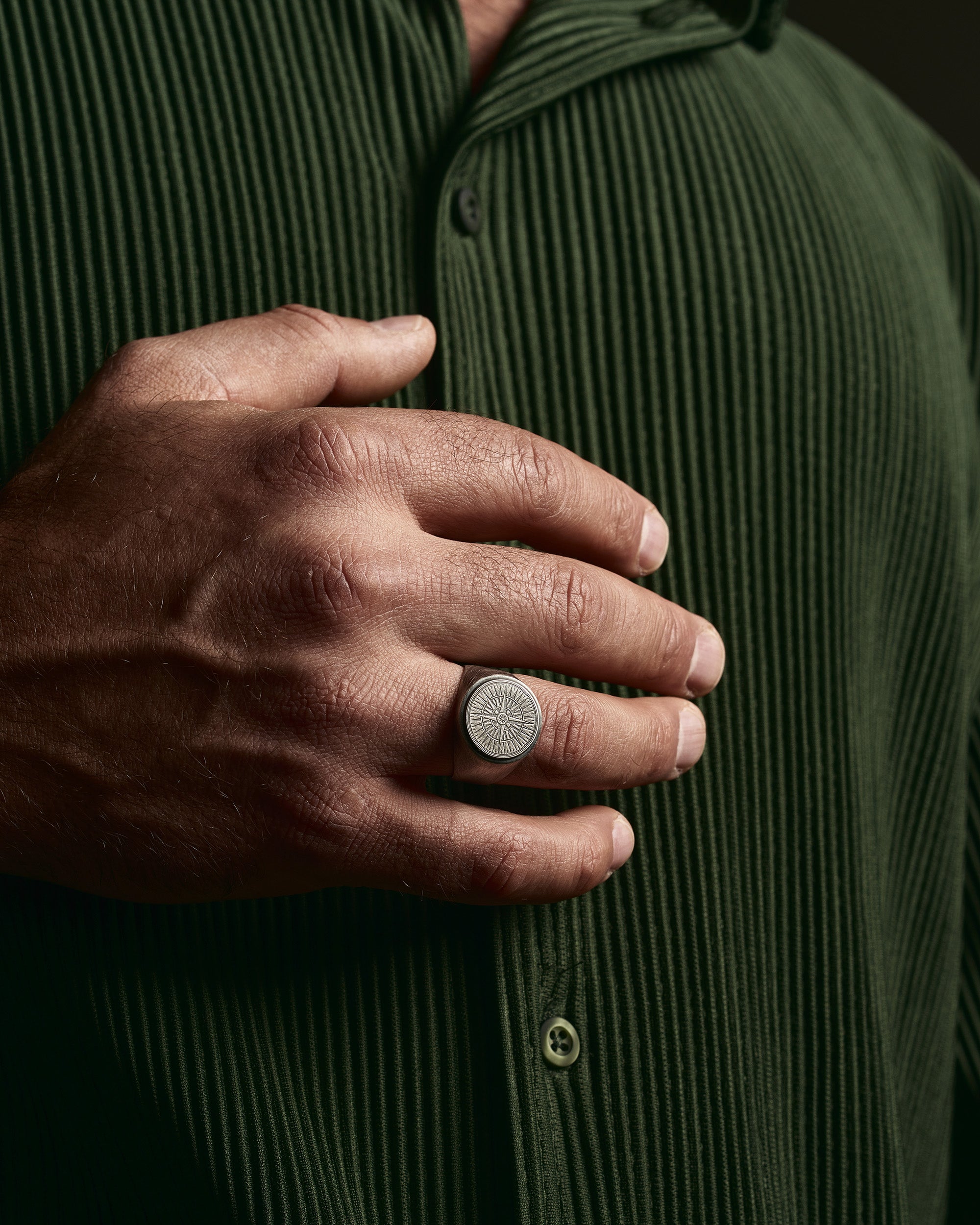 Silver ring "COMPASS ROSE" - it's not just an accessory, but a symbol of determination and direction. It gets its name from the figurative term "compass rose," which in cartography represents a symbolic depiction of the main geographical directions, in the form of a star with rays divisible by four. This ornament inspires its wearer not only to move forward but also to find their own path in a world full of changes and challenges. Each element on this ring is a symbol of inner strength and courage, guiding one's life towards dreams and goals.