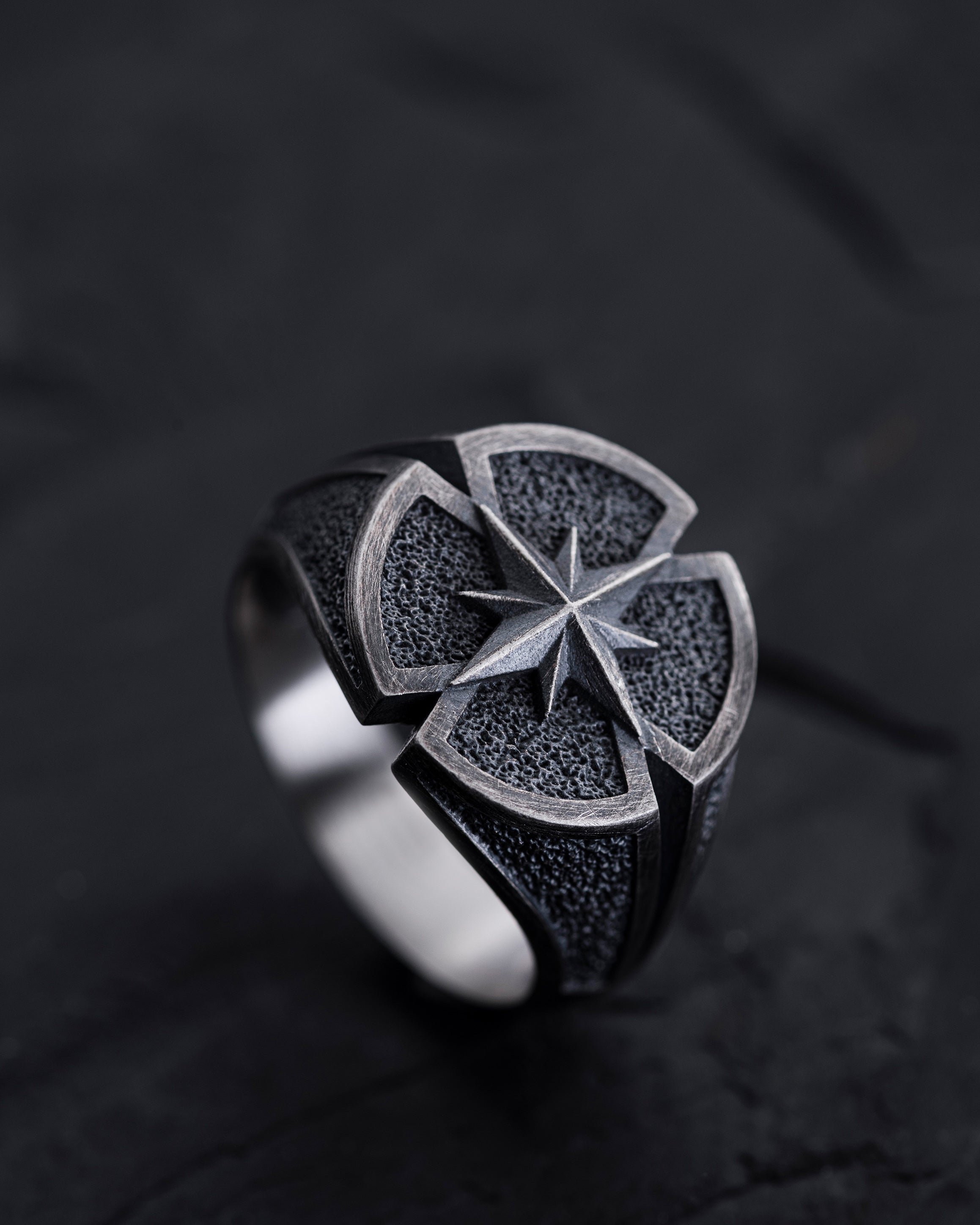 Silver ring "COMPASS" is not just an accessory, but a symbol of determination and orientation in life. It embodies the strength and perseverance necessary to achieve one's goals. Like a compass on a journey, this men's ring provides its wearer with direction in challenging life situations. Every detail on this piece of jewelry is not just an aesthetic accent, but also a symbol of inner strength and courage. Wearing this ring is not just an expression of self, but also an affirmation of the determination to move forward in life.