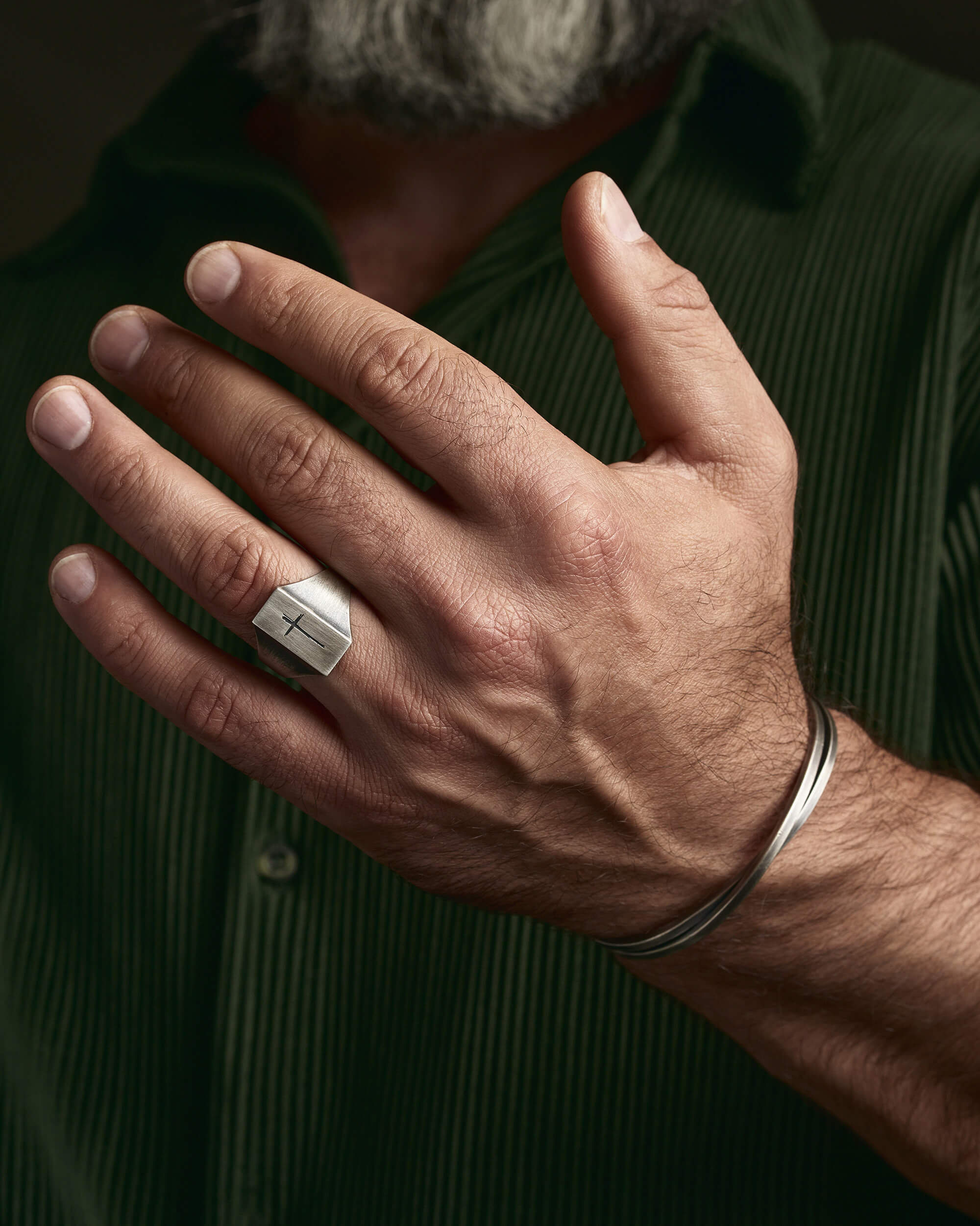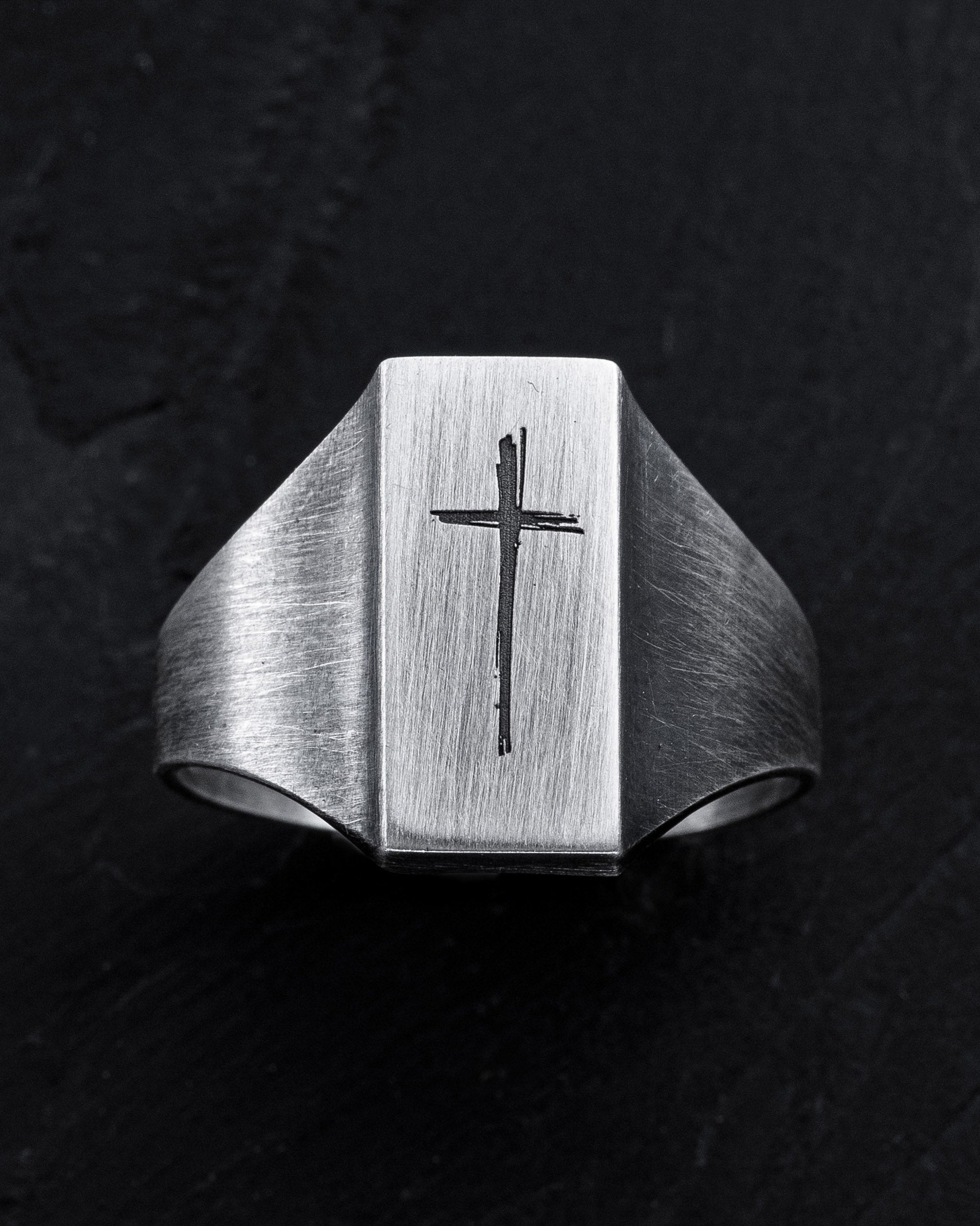 The silver ring "CROSS PATH" is not just a men's accessory, but a symbol of faith and spirituality. The silver signet with the image of a cross reflects profound spiritual significance and prompts contemplation on the importance of faith and spiritual growth. This ring serves as a source of inner inspiration and strength. By choosing "CROSS PATH," a man expresses his faith and readiness to embark on his own spiritual journey with confidence and determination.