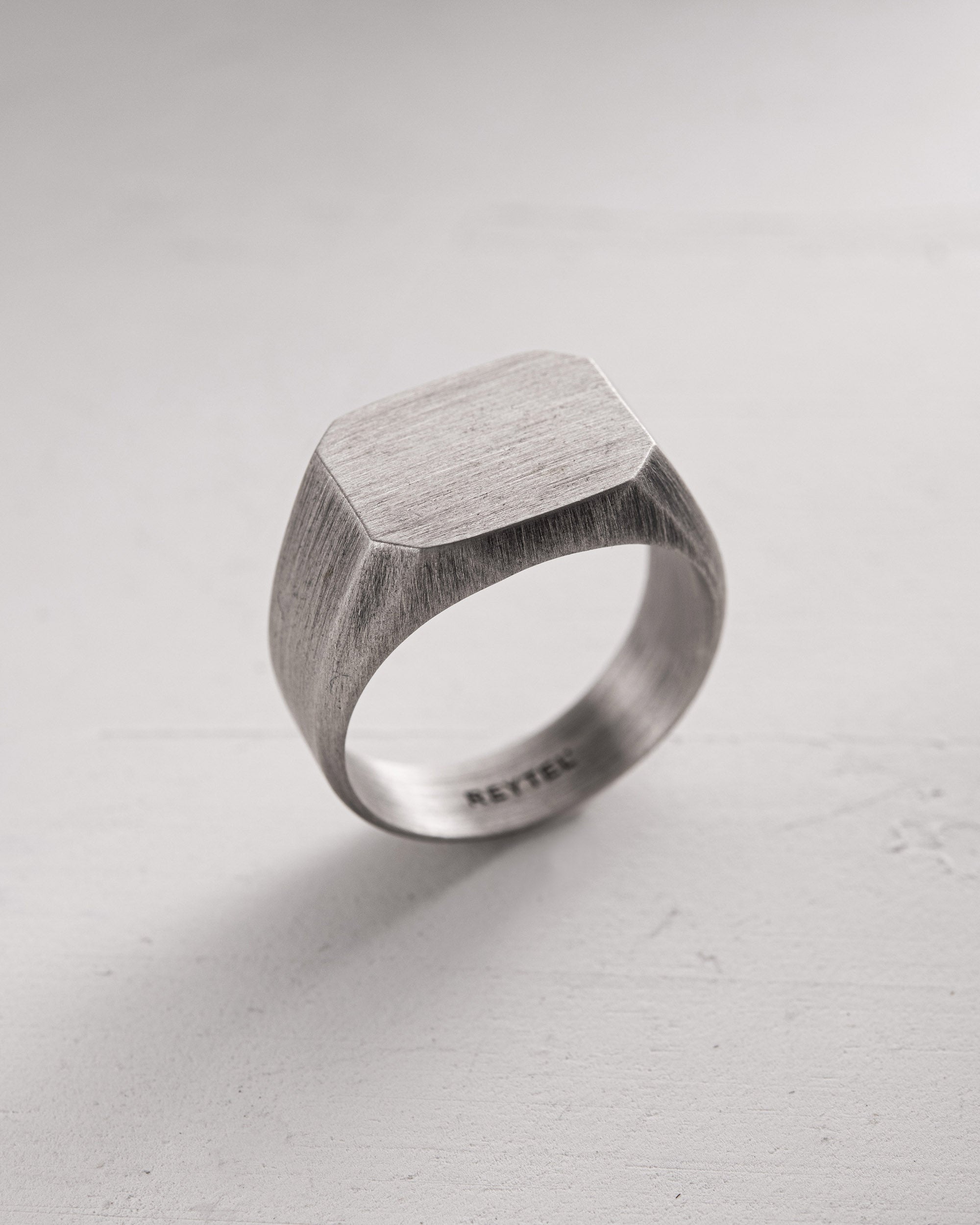 STEMPEL — a silver ring with clean edges and a minimalist form, symbolizing the imprint of life — the moments, memories, and choices that shape who you are. Its flat surface resembles a seal where you can leave your own mark — an engraving that holds meaning only for you. STEMPEL is a men’s ring that speaks of the uniqueness of the path you’ve taken.