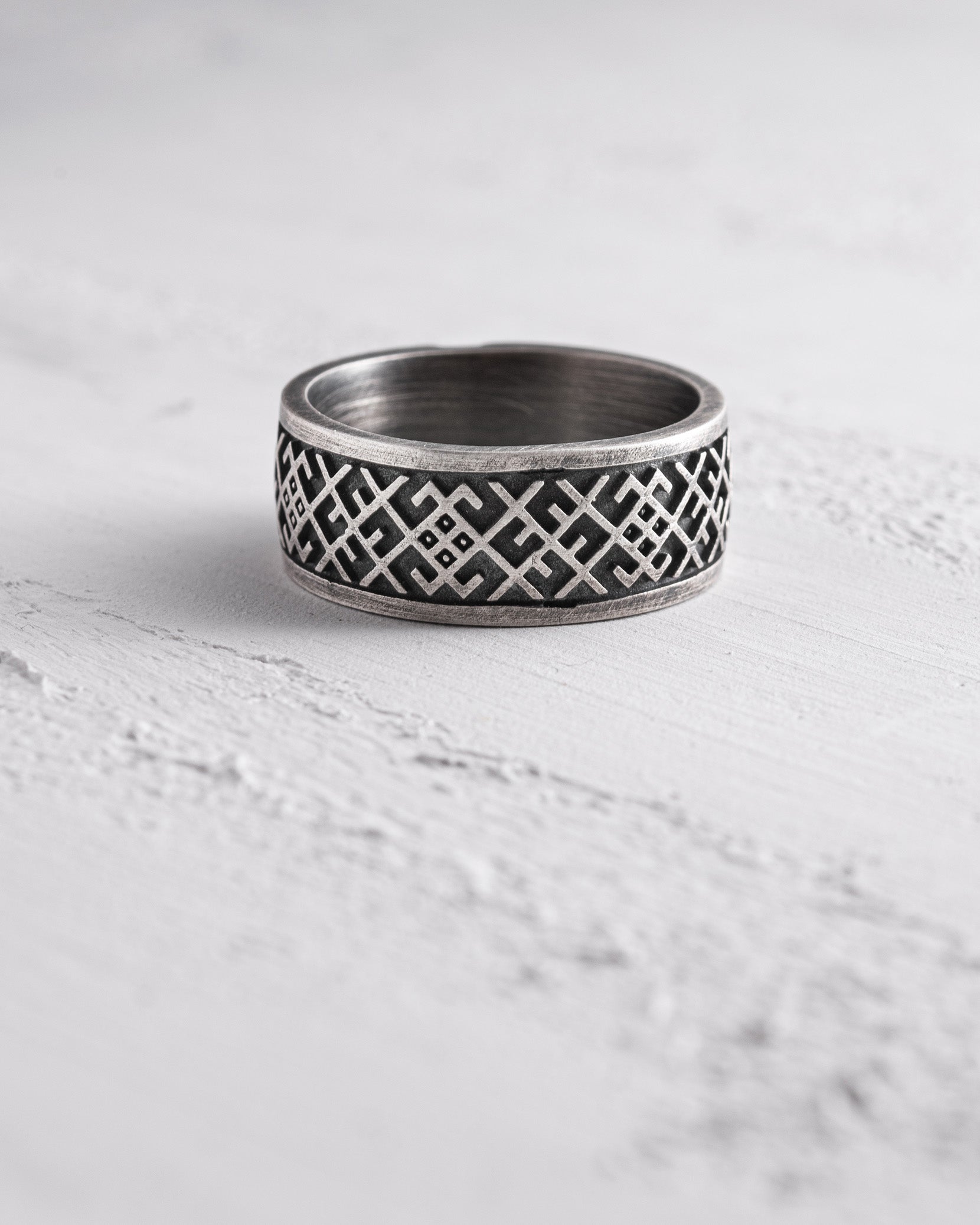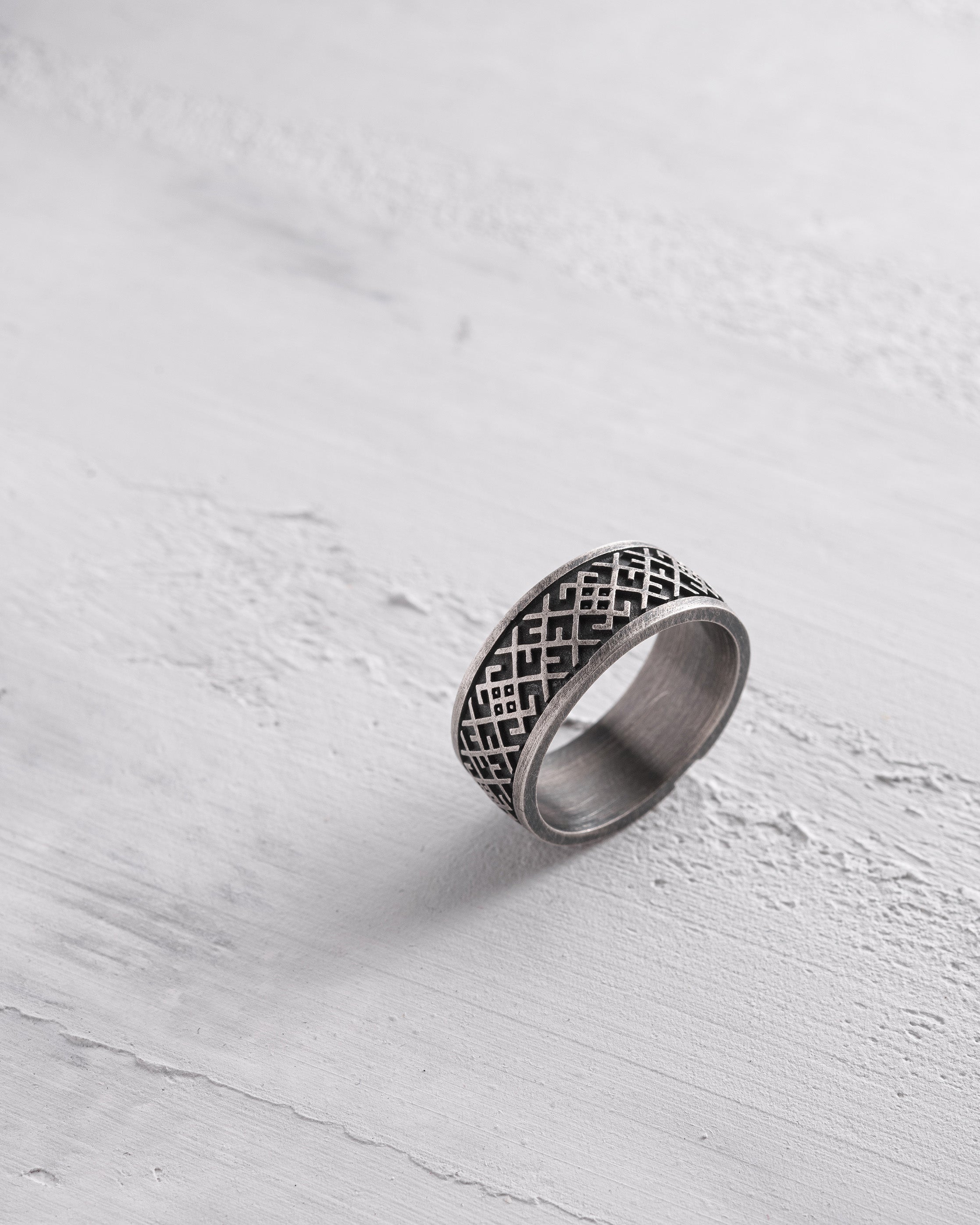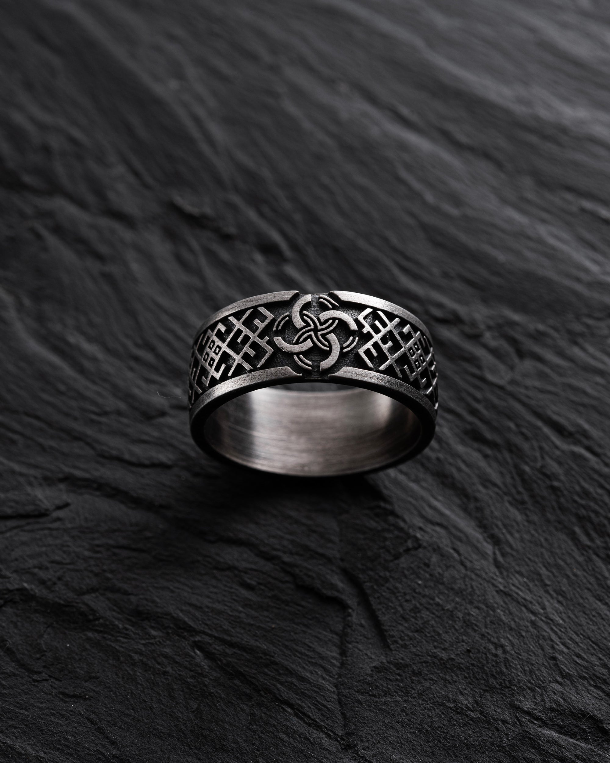The silver ring "VESILNIK" embodies deep Slavic traditions and protective symbolism. The name "Vesilnik" comes from an ancient Slavic symbol that represents not only the union of two people in marriage but also the merging of two families, creating a new unity. The four interwoven circles depicted on the ring have profound meaning—they symbolize the Body, Soul, Spirit, and Conscience, reminding us of the harmony between the physical and spiritual in every person’s life.