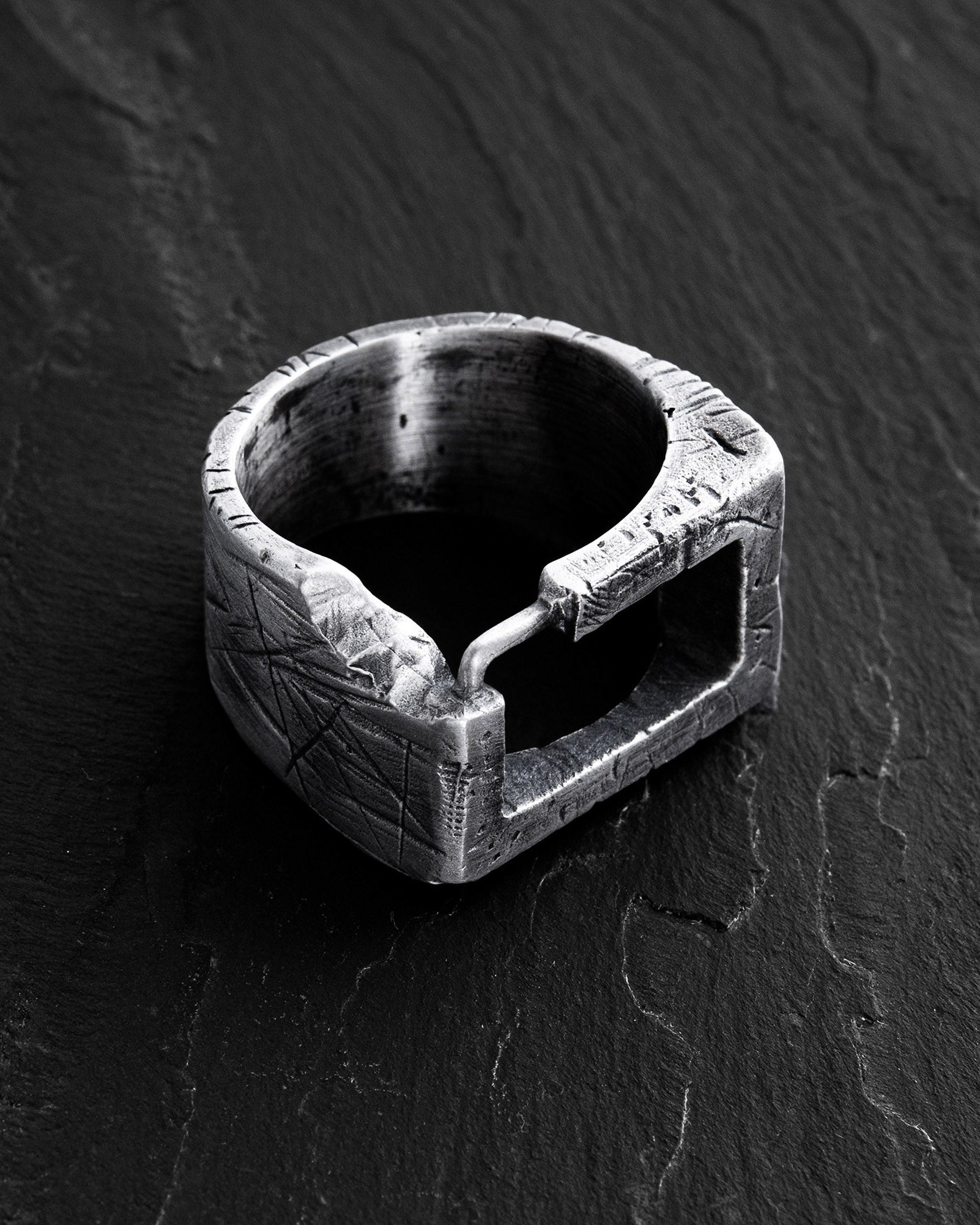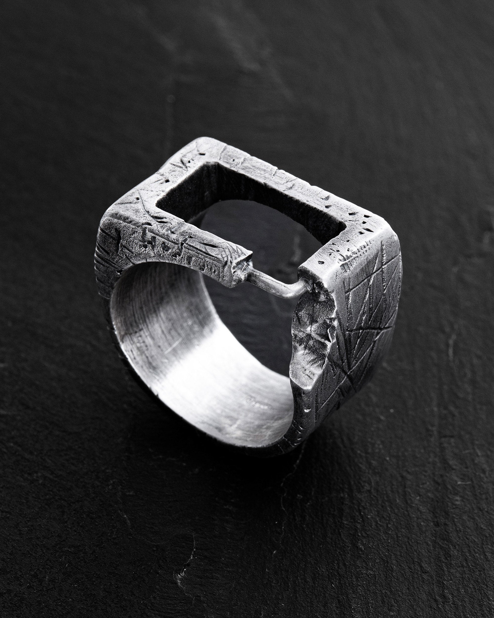 Placement and fonts are done in the Reytel’ signature style (if you have specific preferences, please specify in the engraving field). You can choose your own text or symbol that is important to you, and we will engrave it on the inner side of the ring. For example, you can engrave a name "Denys," a date "07/04/2024," coordinates "44°23'52°25'-22°08'40°13'," or a short phrase "The spirit that tears the body to battle." Example: «07/04/2024» or «My home is my fortress.»