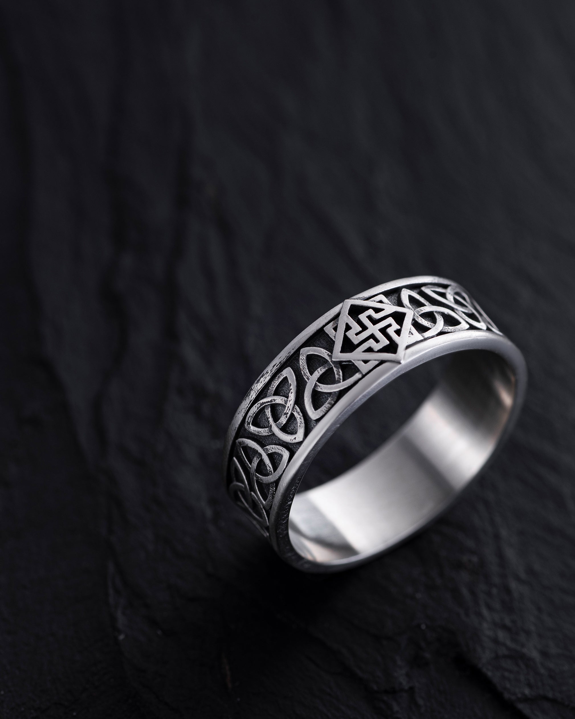 Der Silberring „KELTISCHER KNOTEN UND SVAROG“ ist mehr als nur ein Herrenaccessoire, er ist ein Symbol für tiefes Erbe und Spiritualität. Der keltische Knoten, der Ewigkeit, Unendlichkeit und die Einheit allen Seins verkörpert, symbolisiert zusammen mit dem Bild von Svarog, dem Gott des Feuers und des Handwerks in der slawischen Mythologie, Stärke, Kreativität und Schutz. Durch die Kombination dieser beiden Symbole verkörpert der Ring Weisheit, Stärke und Glauben an spirituelle Entwicklung. Mit der Wahl eines solchen Schmuckstücks drückt ein Mann seinen Respekt vor alten Traditionen und den Wunsch aus, mit dem großen Erbe seiner Kultur verbunden zu sein.