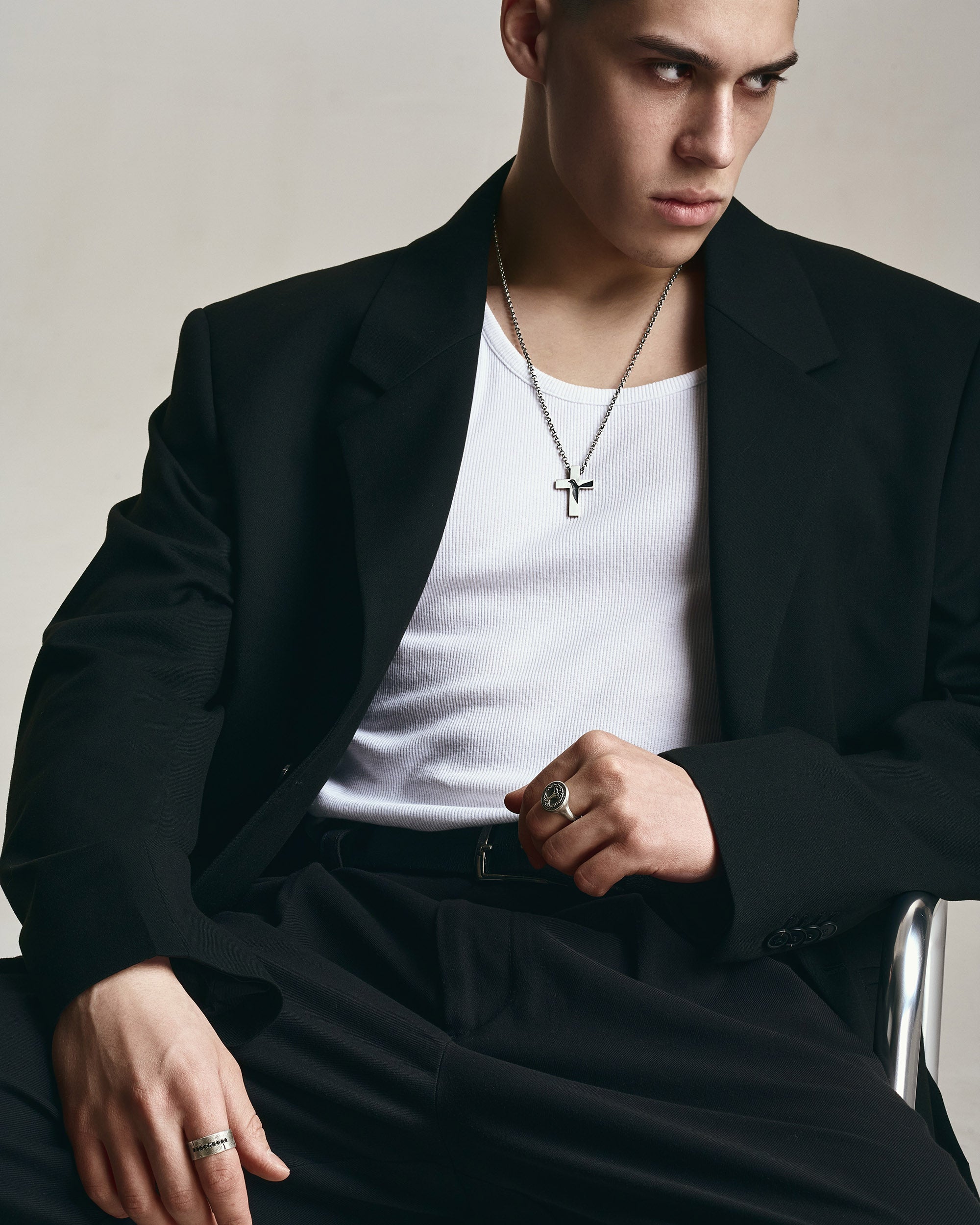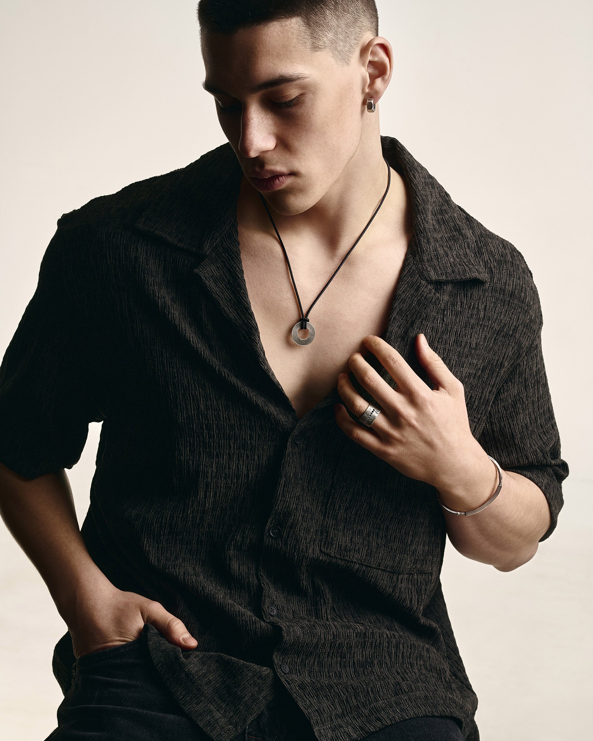 Der Silberring ERVARING. BLACK STONES ist ein Manifest eines Lebensweges, der Spuren hinterlässt. Die matte Oberfläche mit ihren unregelmäßigen Kratzern spiegelt die Prüfungen des Lebens wider, während die Reihe schwarzer Steine die über die Jahre gewachsene innere Stärke symbolisiert. Der Name „Ervaring“ bedeutet Erfahrung auf Niederländisch – jede Narbe zu einem Teil des eigenen Charakters zu machen.