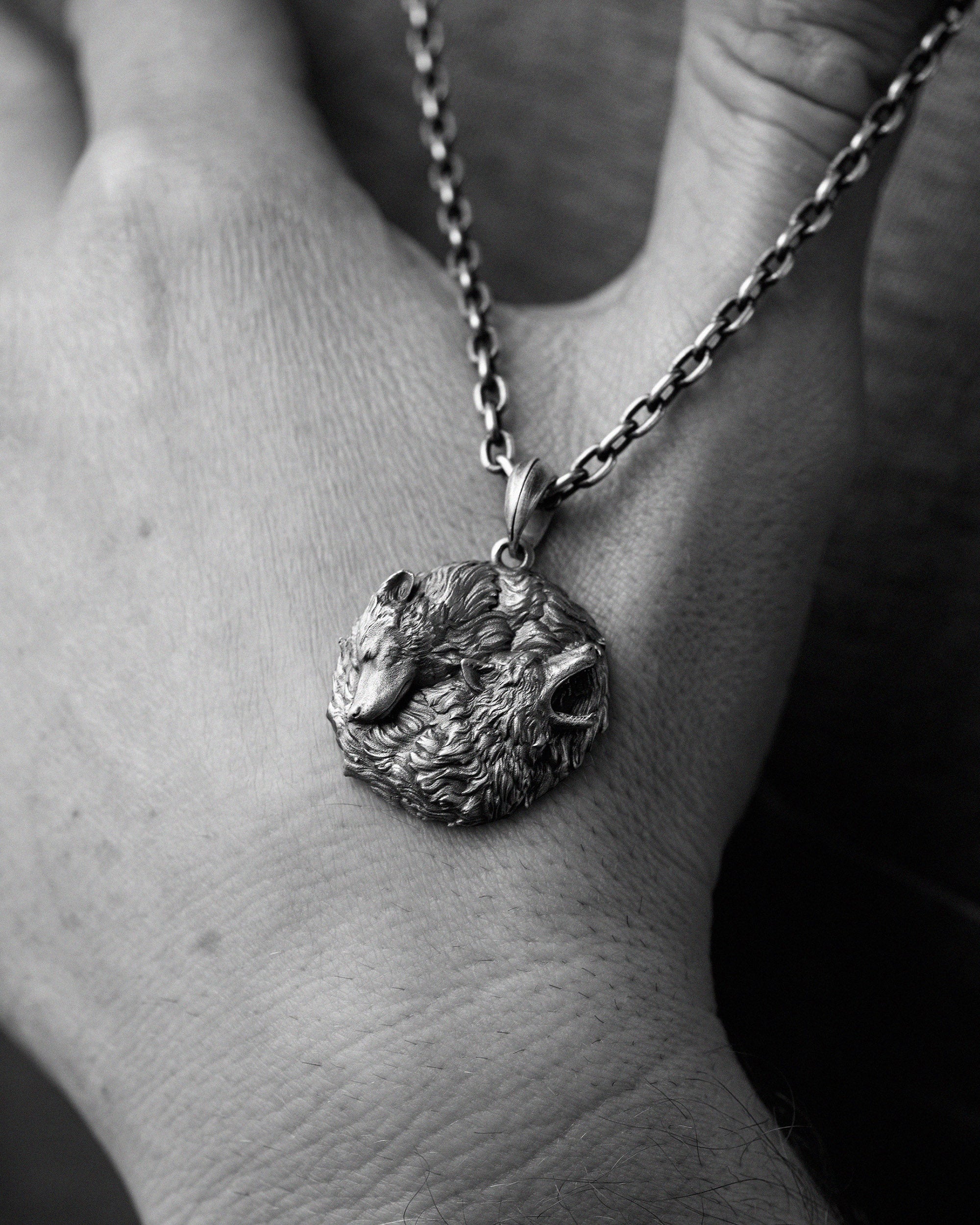 The silver pendant "PAIR OF WOLVES" embodies strength, devotion, and the survival instinct. Wolves depicted together symbolize familial bonds, loyalty, and the strength of community. In many cultures, wolves are associated with wisdom, protection, and at the same time, independence. These predators are known for their ability to work in a group, demonstrating unparalleled teamwork and mutual support.