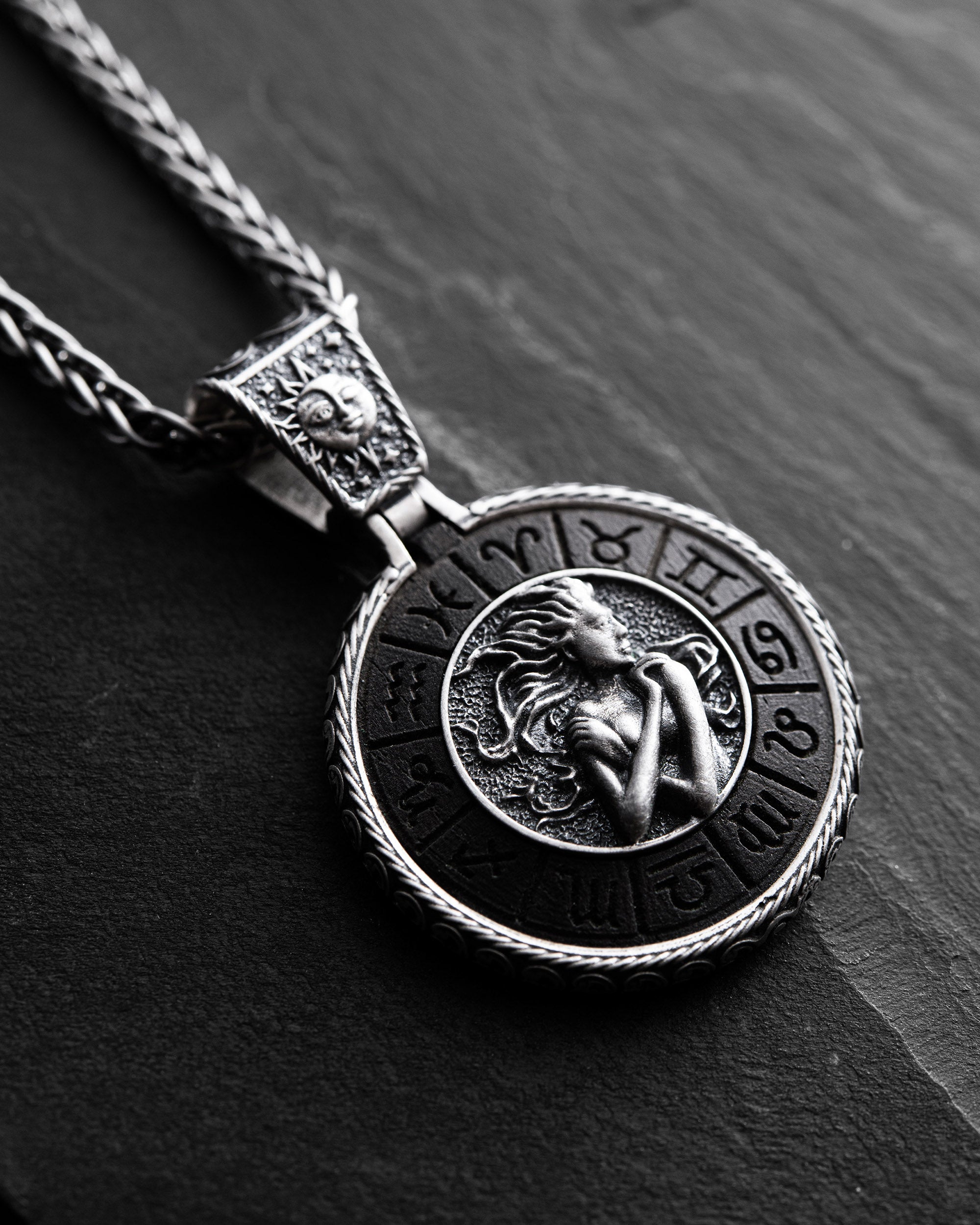• Silver pendant Zodiac sign - VIRGO with ebony