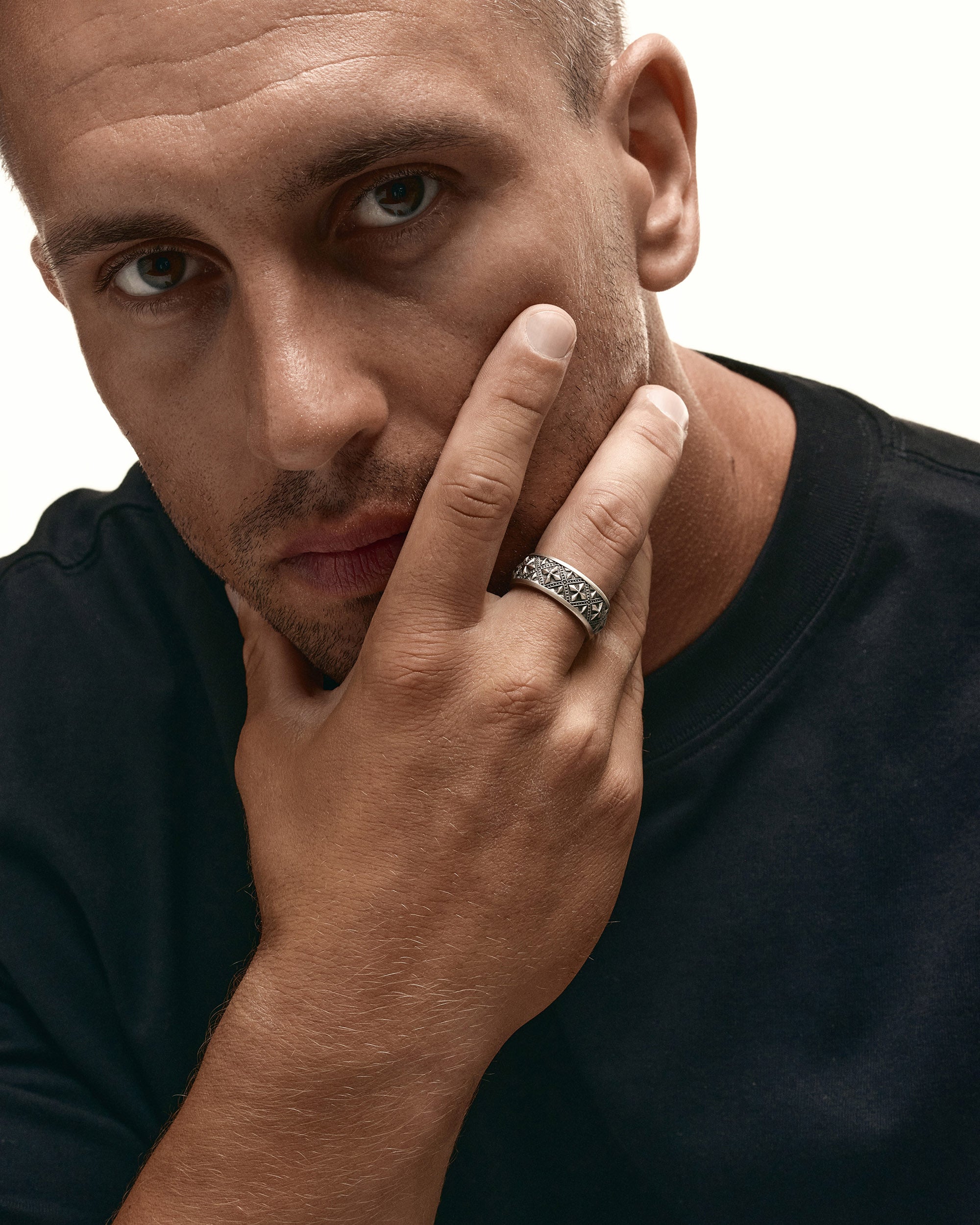 Placement and fonts are done in the Reytel’ signature style (if you have specific preferences, please specify in the engraving field). You can choose your own text or symbol that is important to you, and we will engrave it on the inner side of the ring. For example, you can engrave a name "Denys," a date "07/04/2024," coordinates "44°23'52°25'-22°08'40°13'," or a short phrase "The spirit that tears the body to battle." Example: «07/04/2024» or «My home is my fortress.»