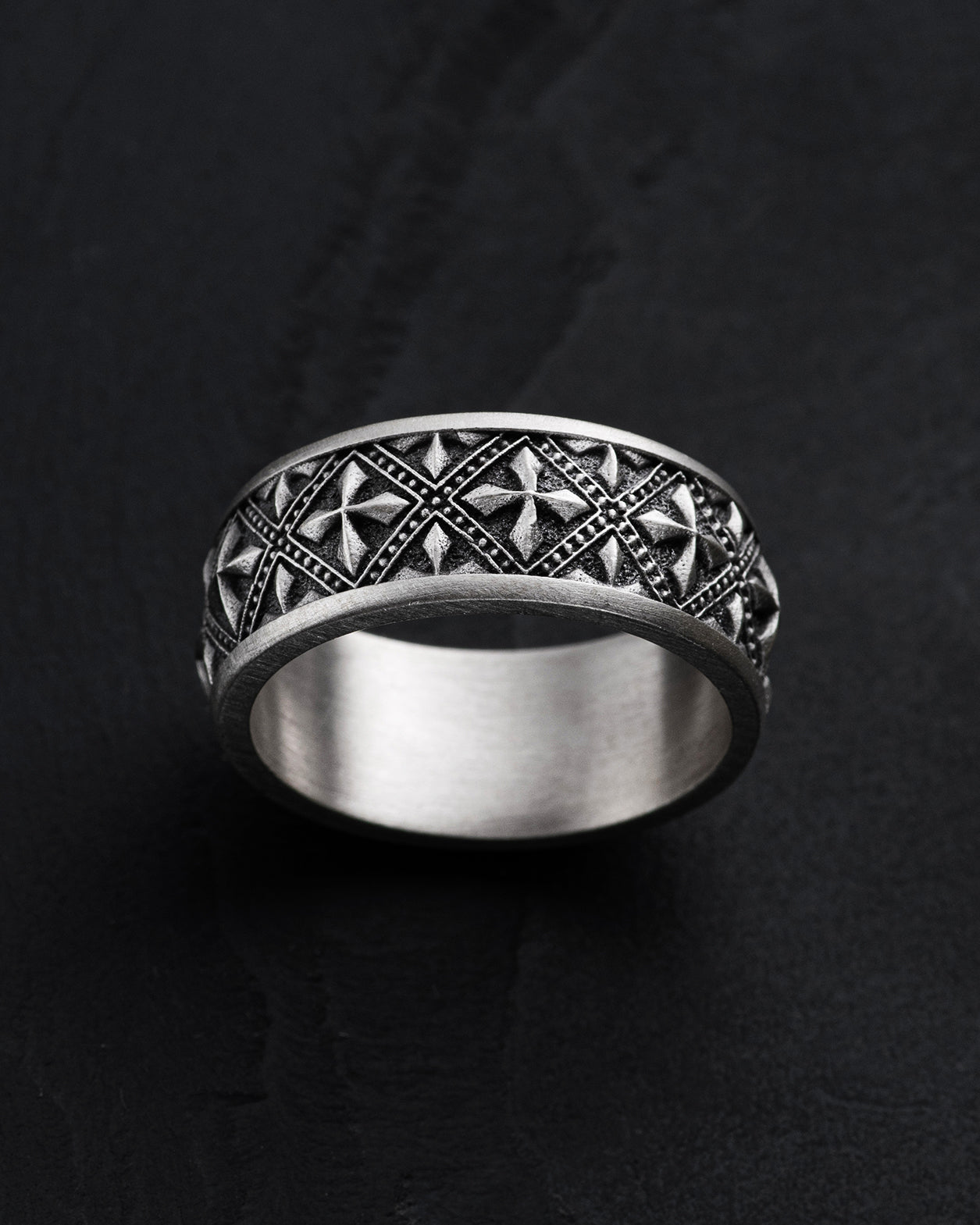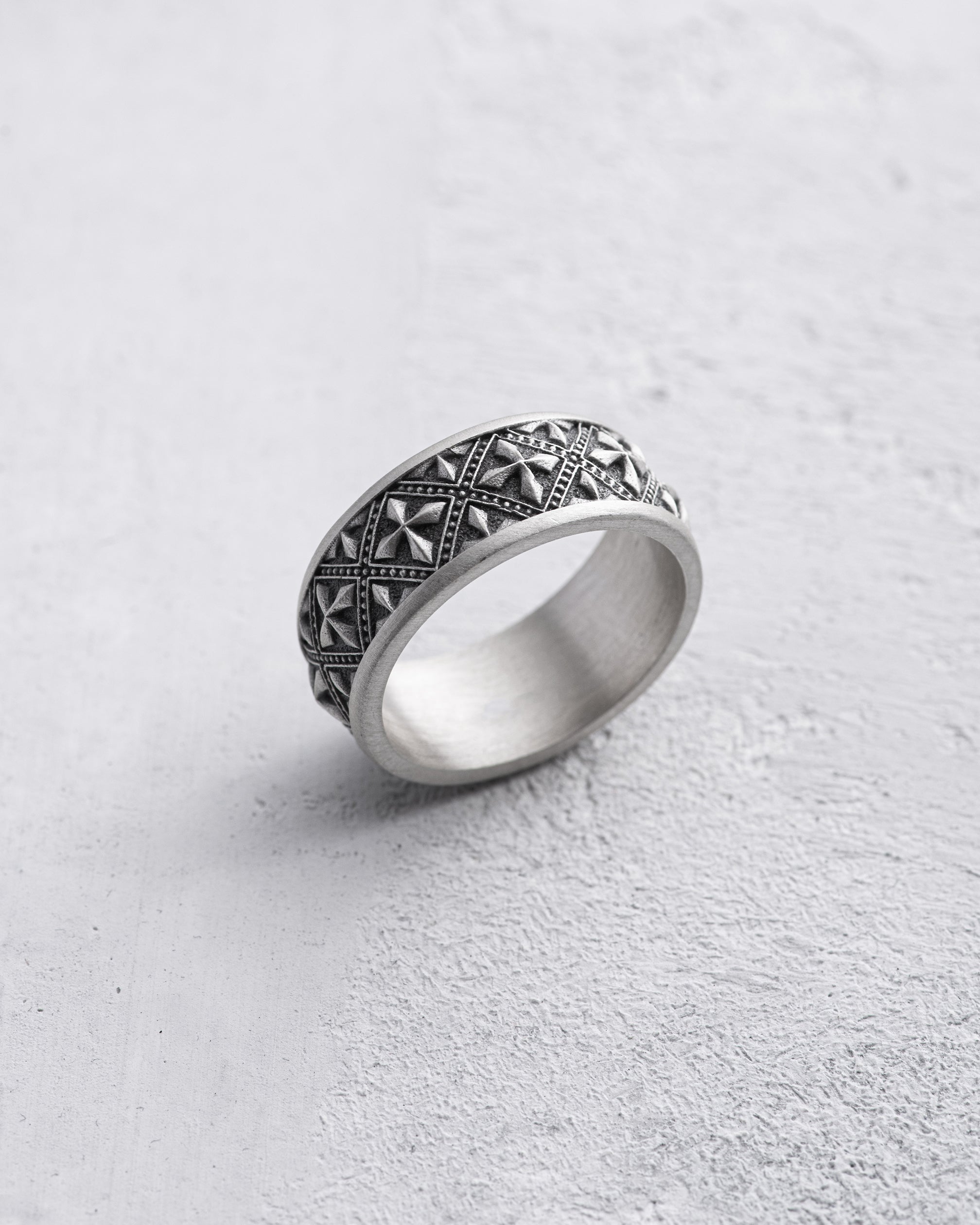 Silver ring "RITTER" (translated from German as "knight") symbolizes nobility, courage, and dedication. The design of the ring is inspired by the medieval era, when knights embodied the ideals of honor and bravery. The "RITTER" ring reflects the strength and valor of knights, emphasizing the importance of these qualities in the modern world. Wearing this ring serves as a reminder of the importance of maintaining noble principles and being ready to defend one's ideals, acting as a powerful symbol of dedication and courage.