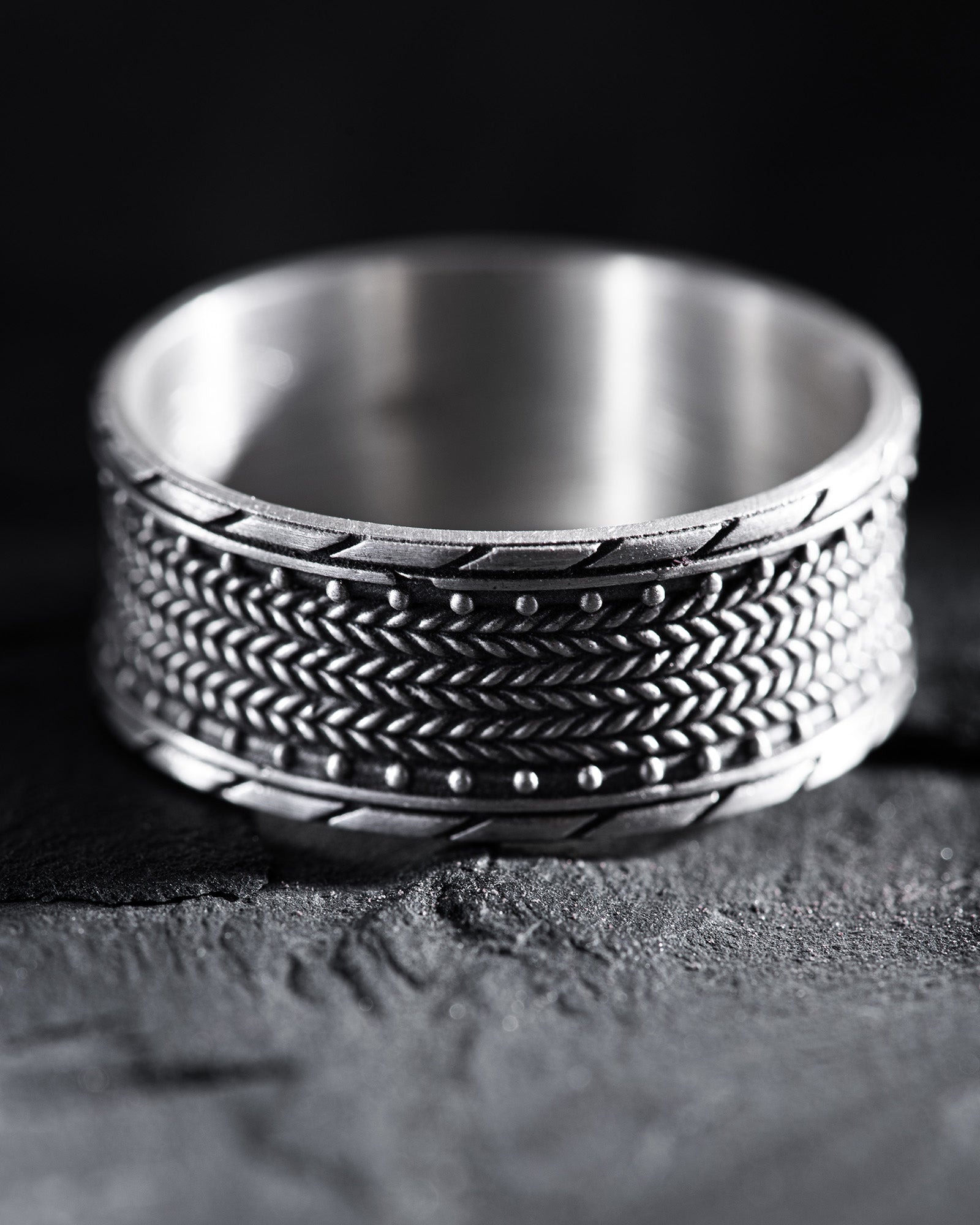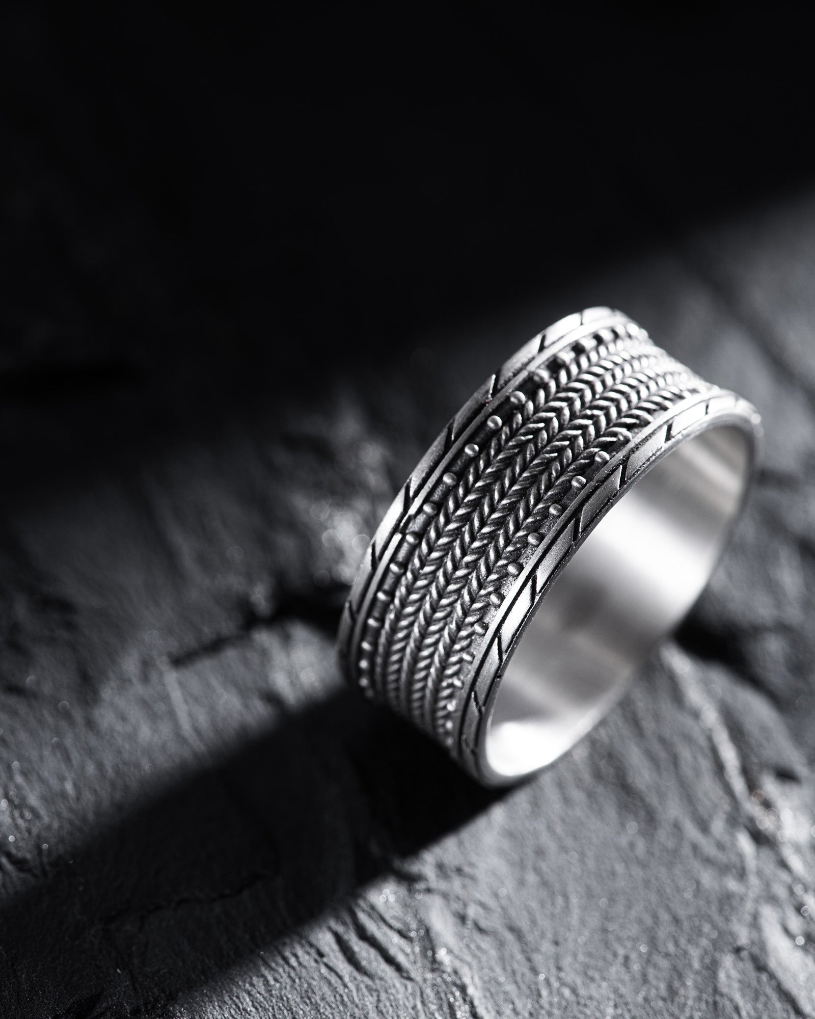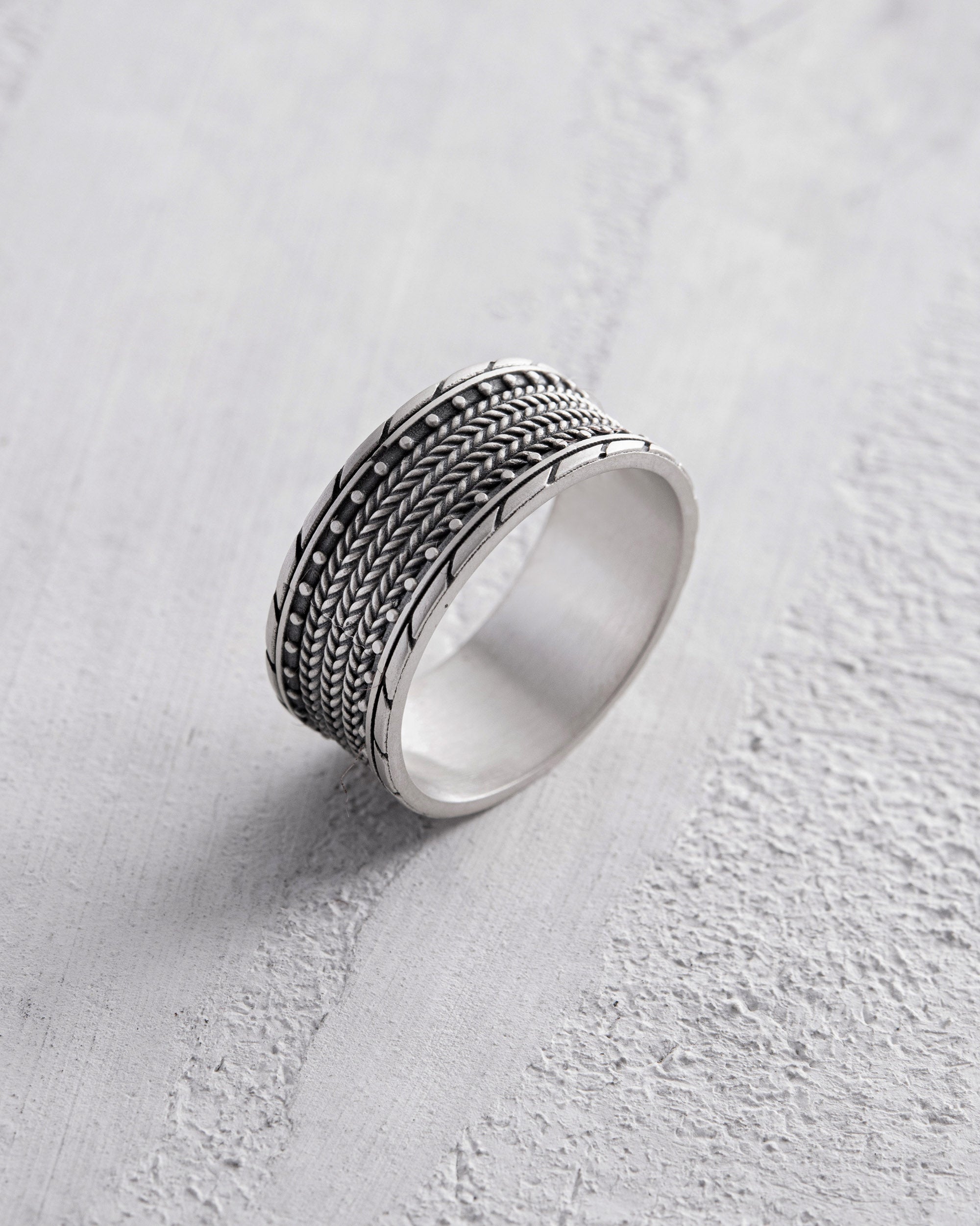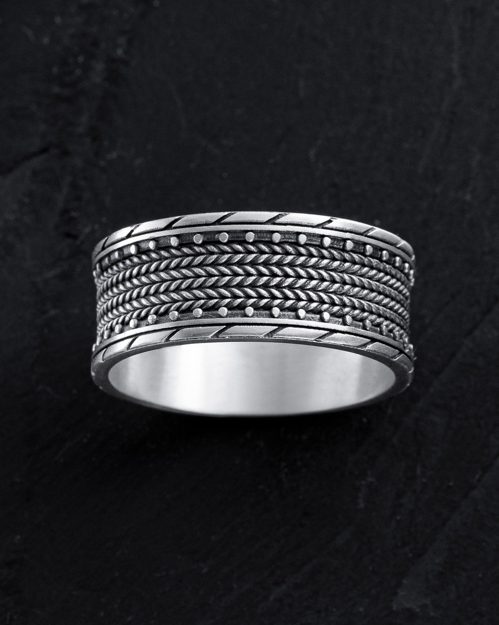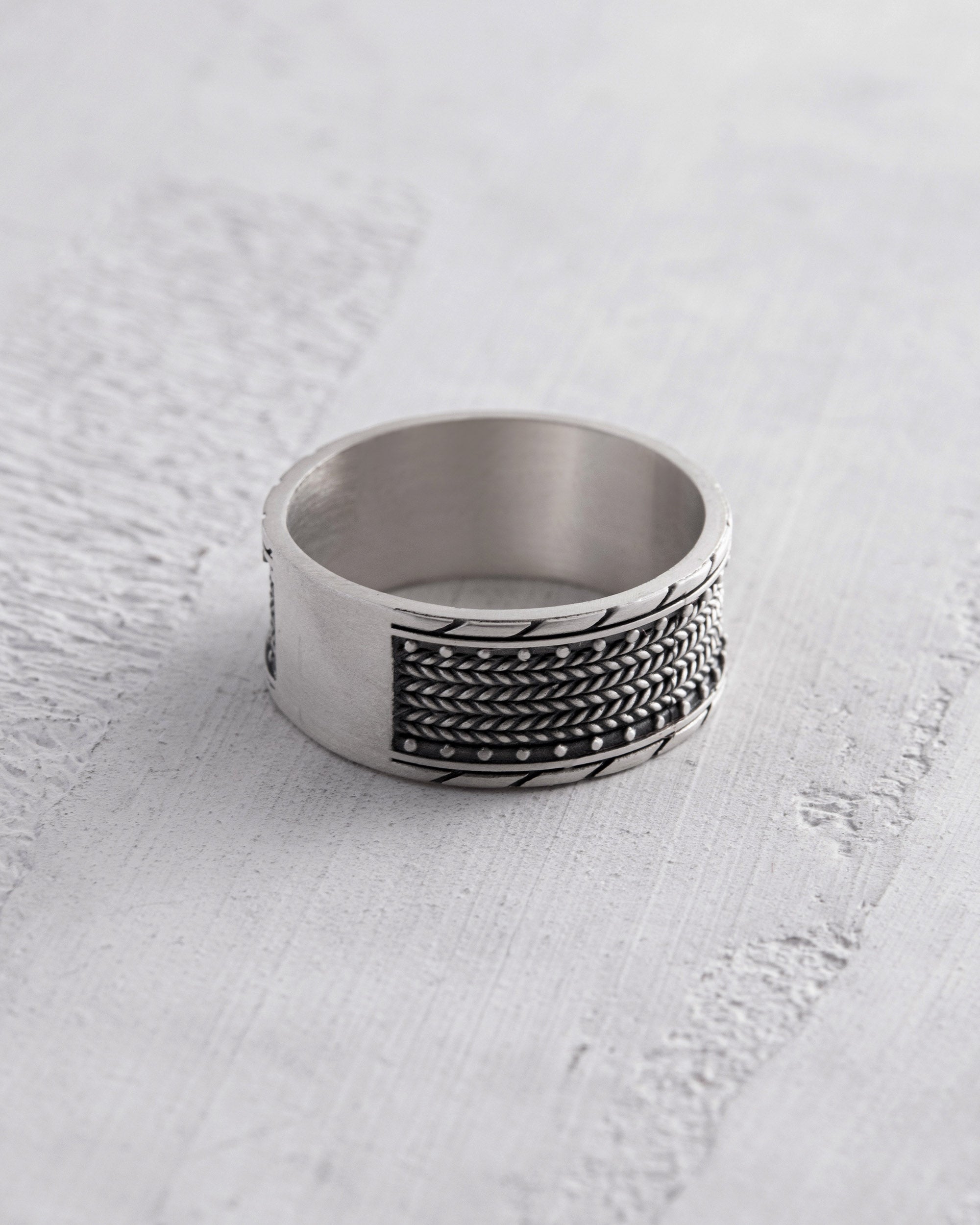 The silver ring "TEXTURED" impresses with its uniqueness. This accessory reflects the style and individuality of its owner, emphasizing their distinctiveness. The wearer of this ring may be someone with a strong personality, who values originality and nonconformity in all aspects of life. The textured design of the ring mirrors their ambitions and desire to stand out, highlighting their unconventional thinking.