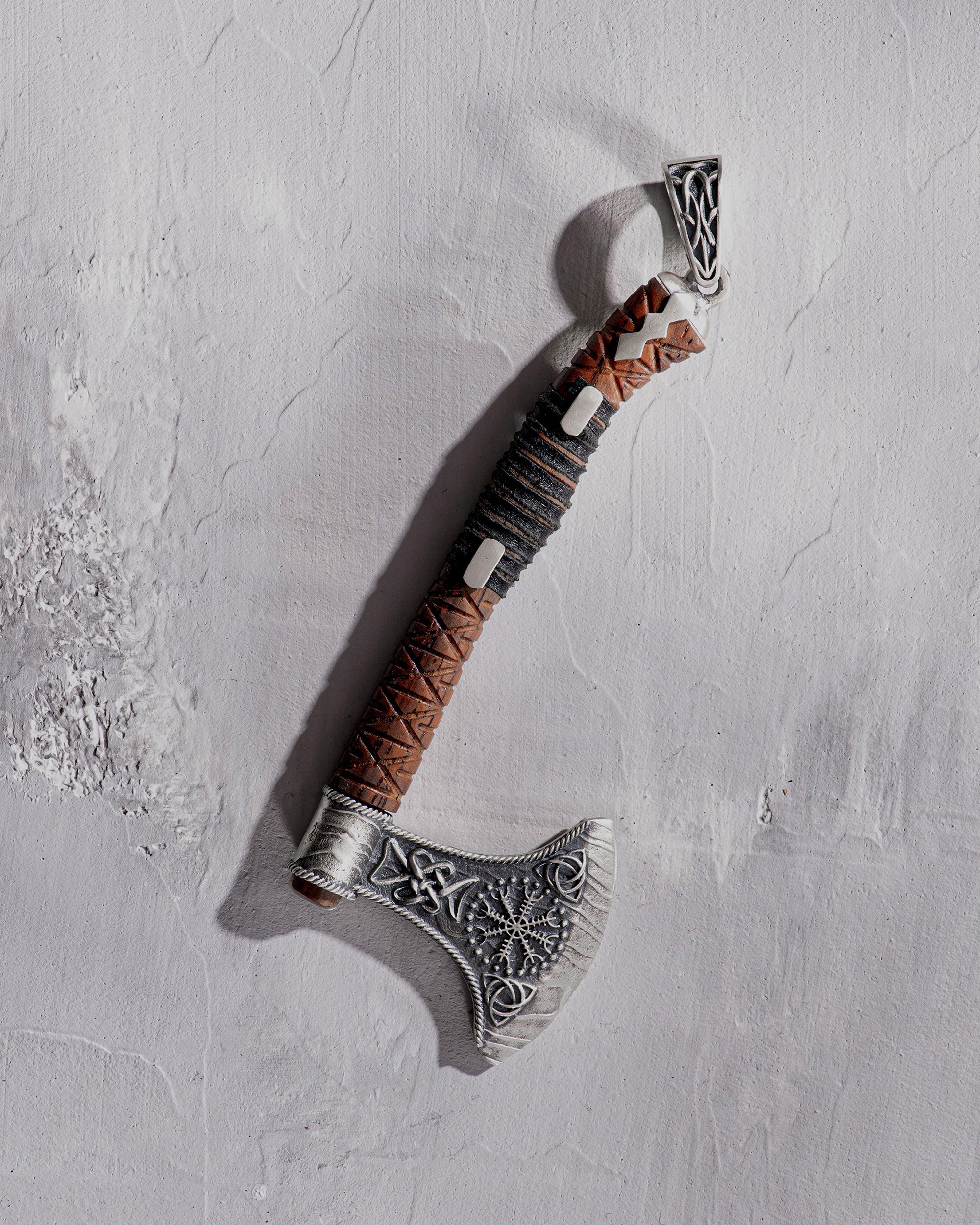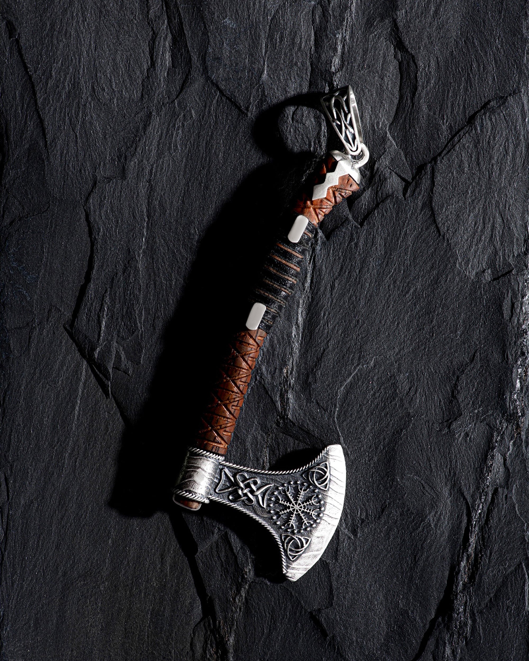 • Silver pendant AXE - HELMET of TERROR with wood