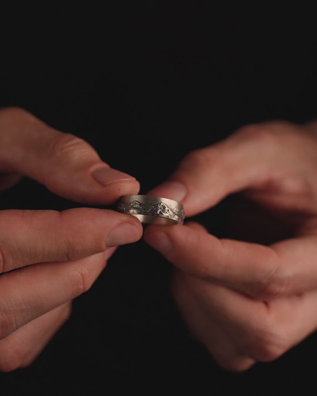 The silver ring "MOUNTAINS" embodies the symbolism of greatness and power of mountains. Mountains impress with their vastness and height, representing the strength and might of nature. They are also known for their wisdom, reminding us of the eternal change and vast experience that time brings. This ring inspires a man not only to confidence and resilience but also to strive for great heights in his efforts and actions. The silver ring "MOUNTAINS" supports him in conquering the peaks of his dreams and overcoming any obstacles on the path to success.