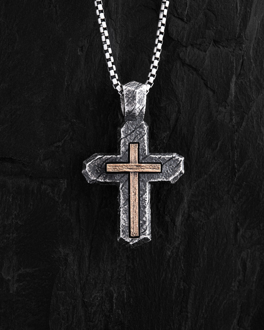 Silver cross CALVARY CROSS. IN GOD WE TRUST (inset of yellow gold 18k)
