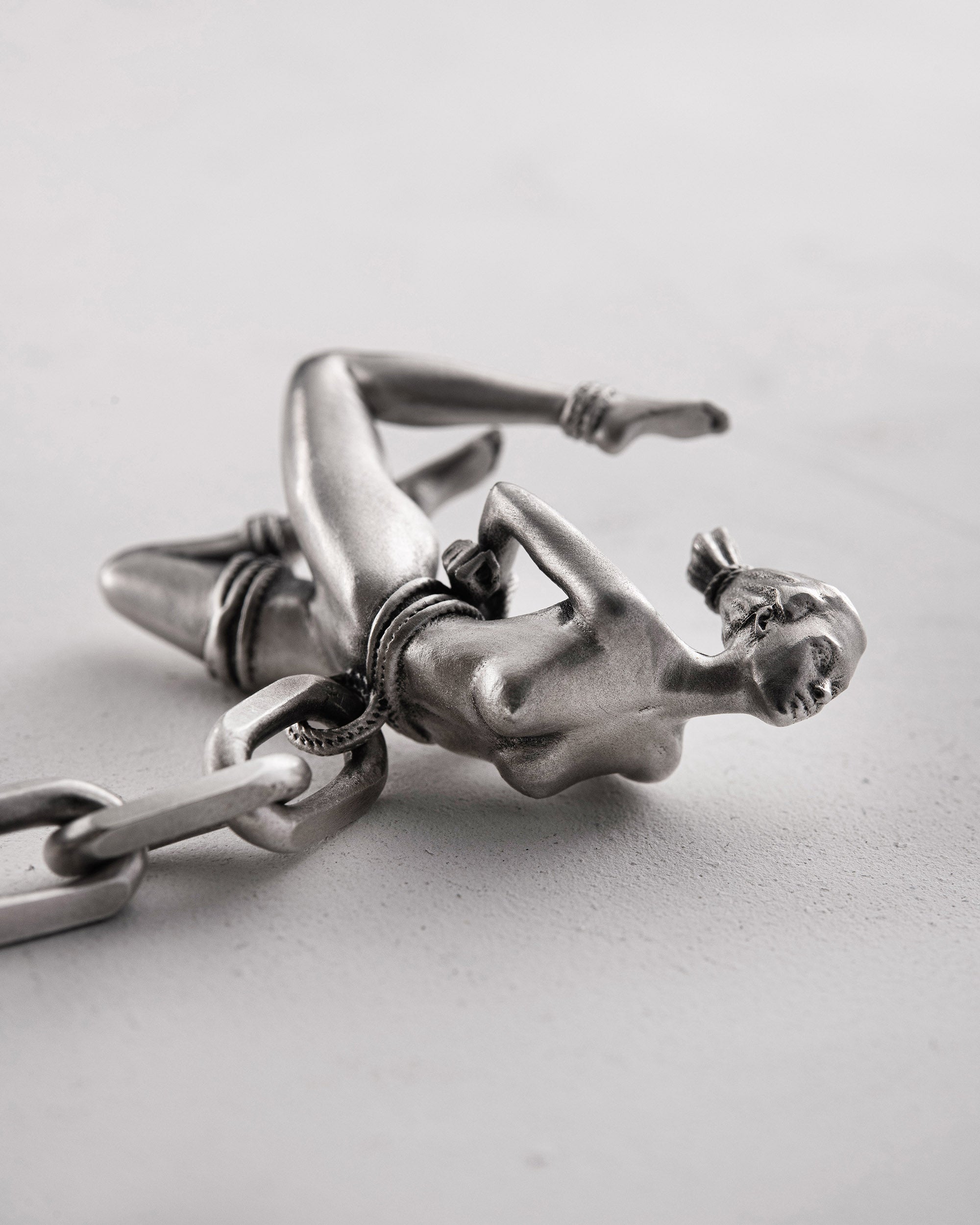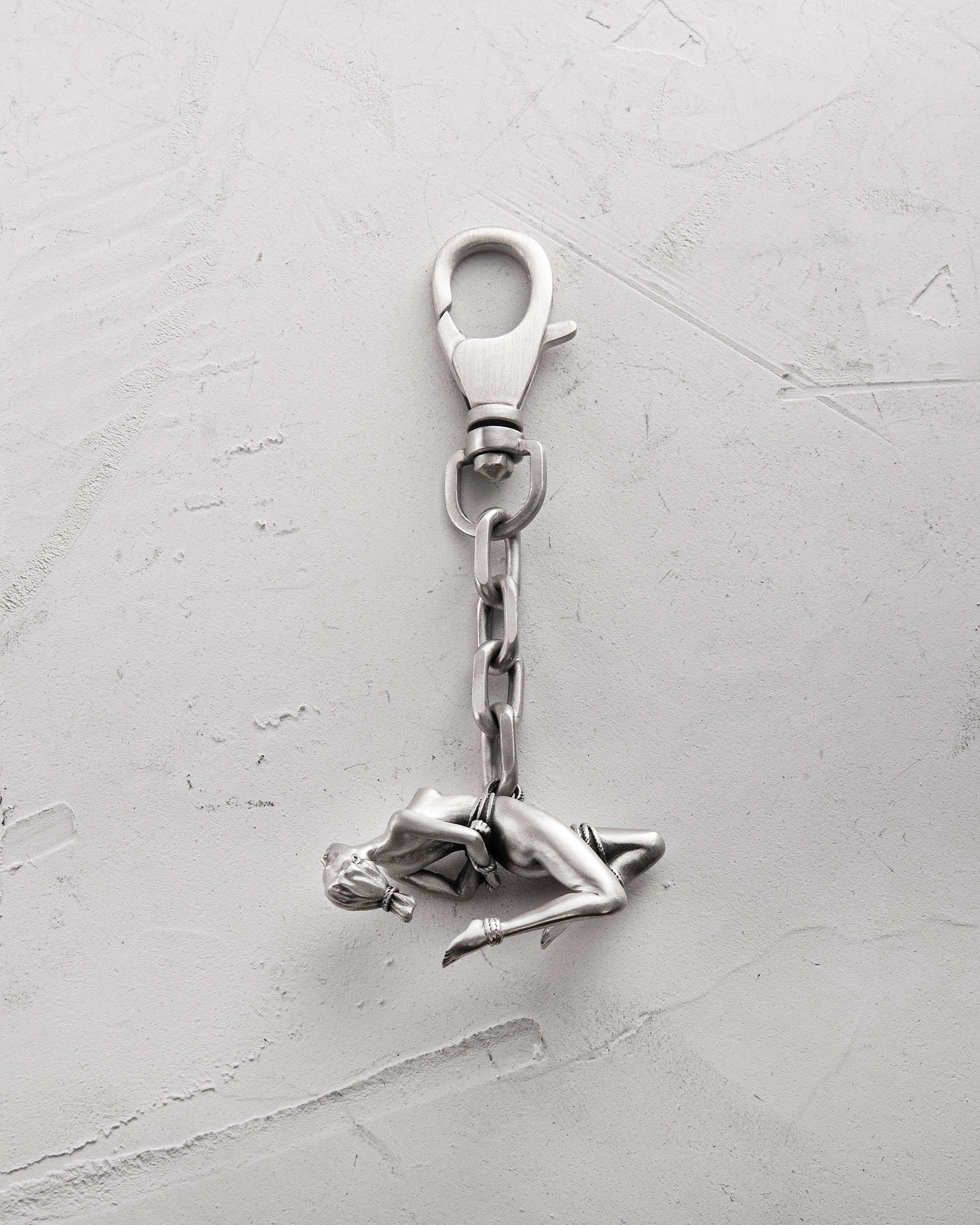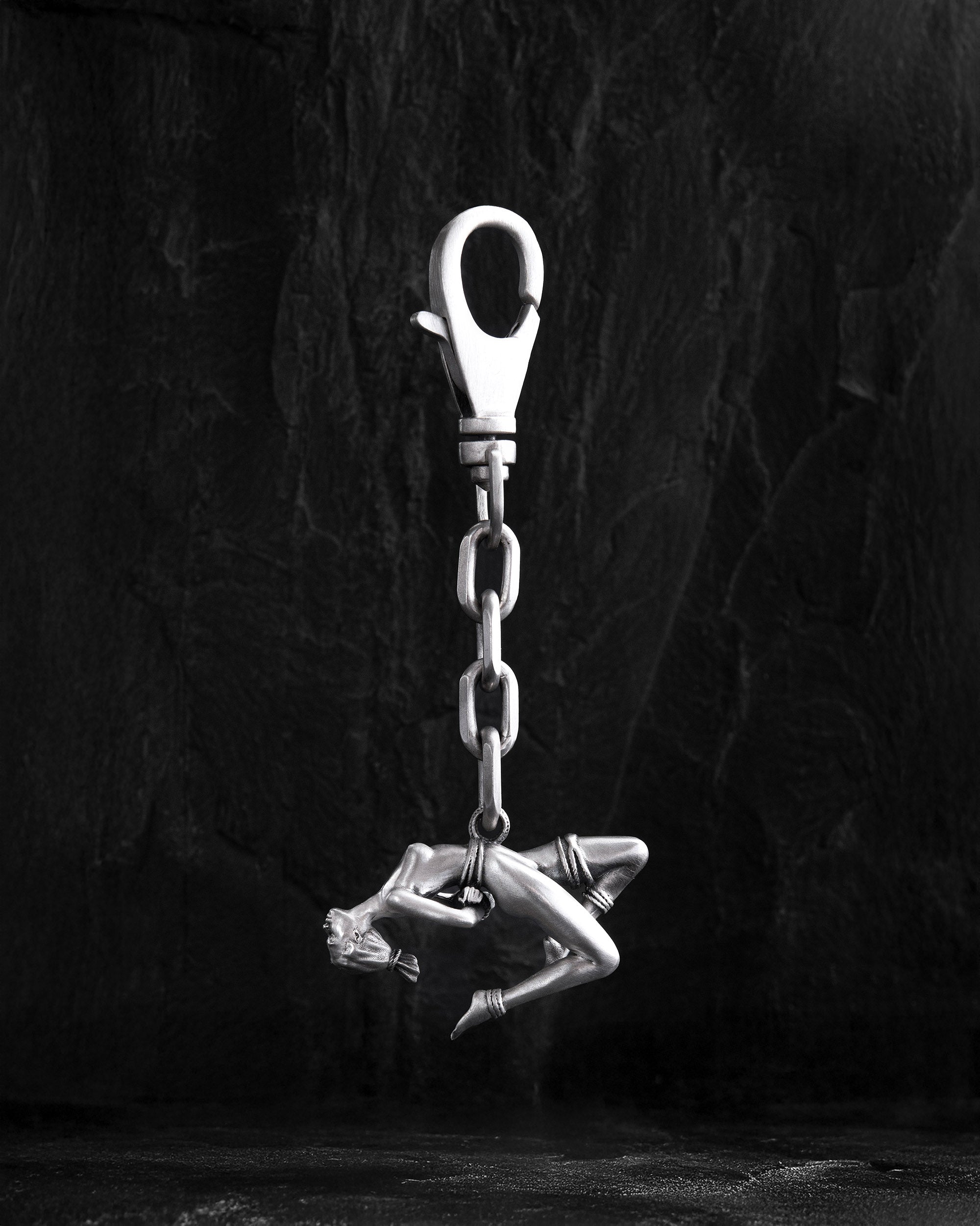 SHIBARI – INVERTED SUSPENSION is a silver keychain that embodies the courage to open up to one another on the deepest level. The inverted shibari pose symbolizes trust, where control is consciously surrendered to mutuality and inner freedom. It reflects a moment in which two people allow themselves to feel support, emotional closeness, and full acceptance. In this image there is movement, tension, and a hint of vulnerability — everything that makes the bond between partners genuine. SHIBARI – INVERTED SUSPENSION is for those who see intimacy not only as passion, but as a unique language of trust, reciprocity, and the gentle harmony of two souls.