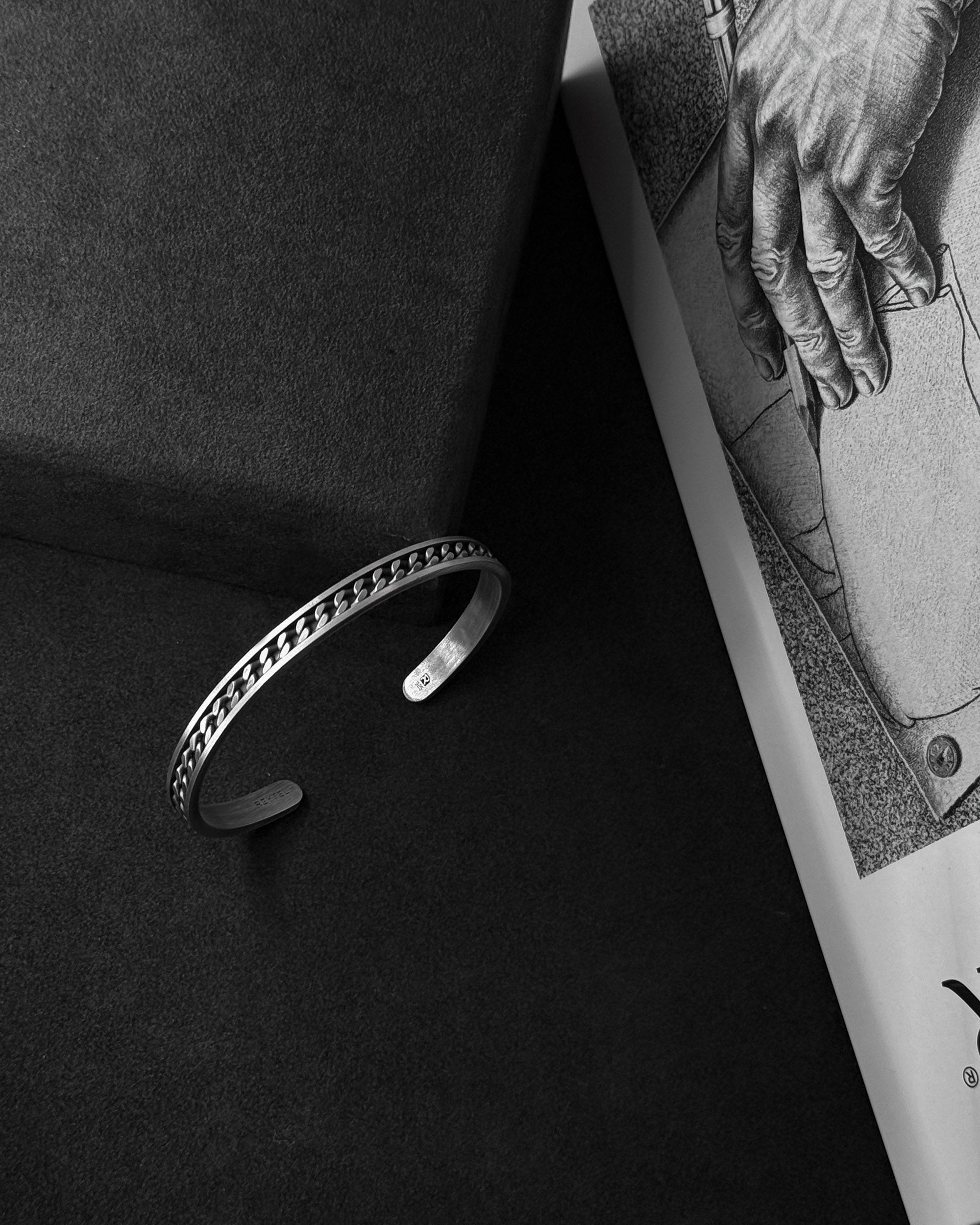 The placement and fonts are done in Reytel's signature style (if you have any special requests, please indicate them in the engraving field). You can choose your own text or symbol that is important to you, and we will engrave it on the inside of the bracelet. For example, you can engrave a name "Denis", a date "07/04/2024", coordinates 44°23'52°25'-22°08'40°13', or a short phrase "The spirit that body seeks to fight". Example: "07/04/2024" or "My home - my fortress".