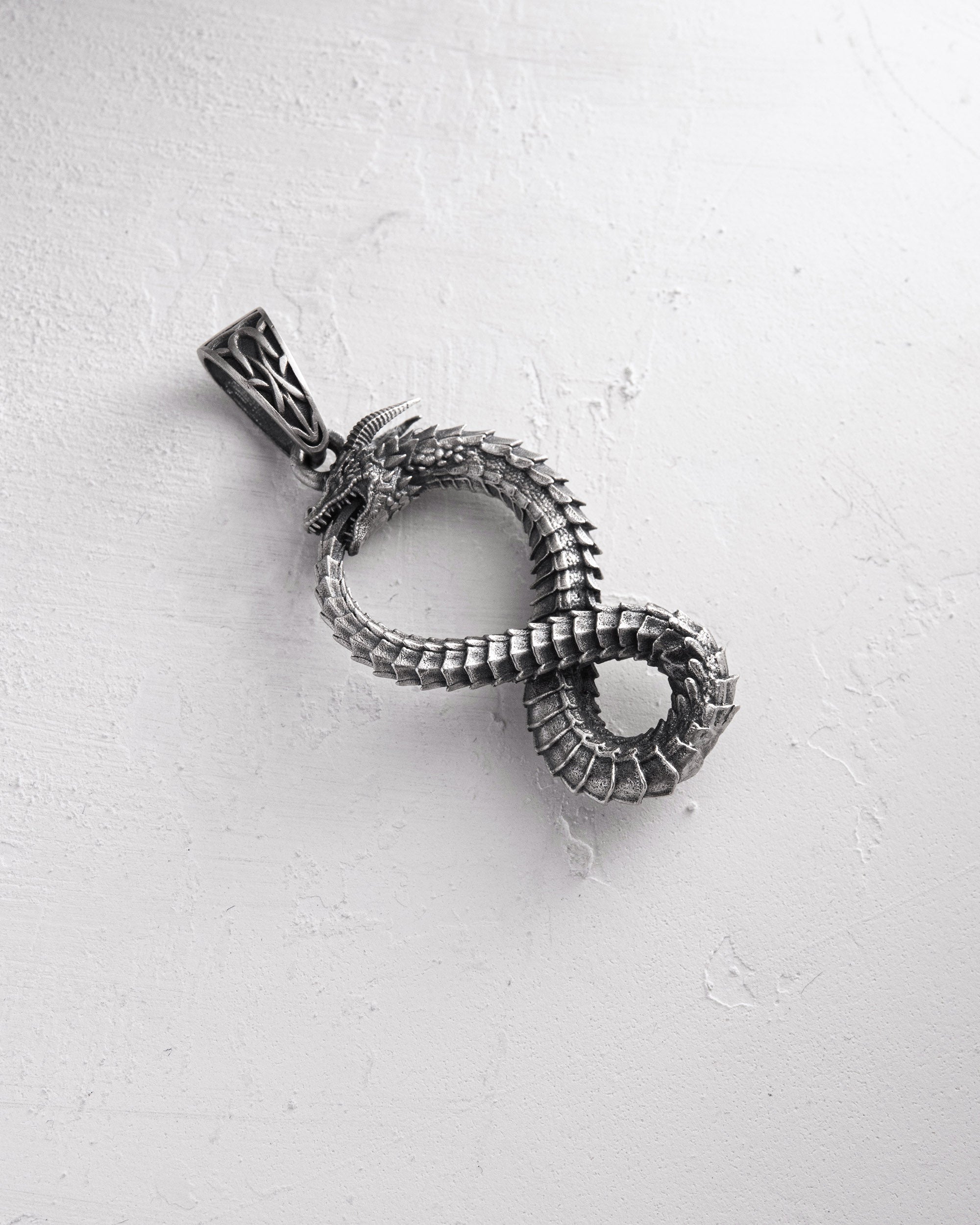 The design of this pendant combines the power of a mythical creature with deep philosophy: it serves as a reminder of continuous growth, transformation, and harmony between opposites. The serpent forming the infinity symbol emphasizes the balance between the past, present, and future.