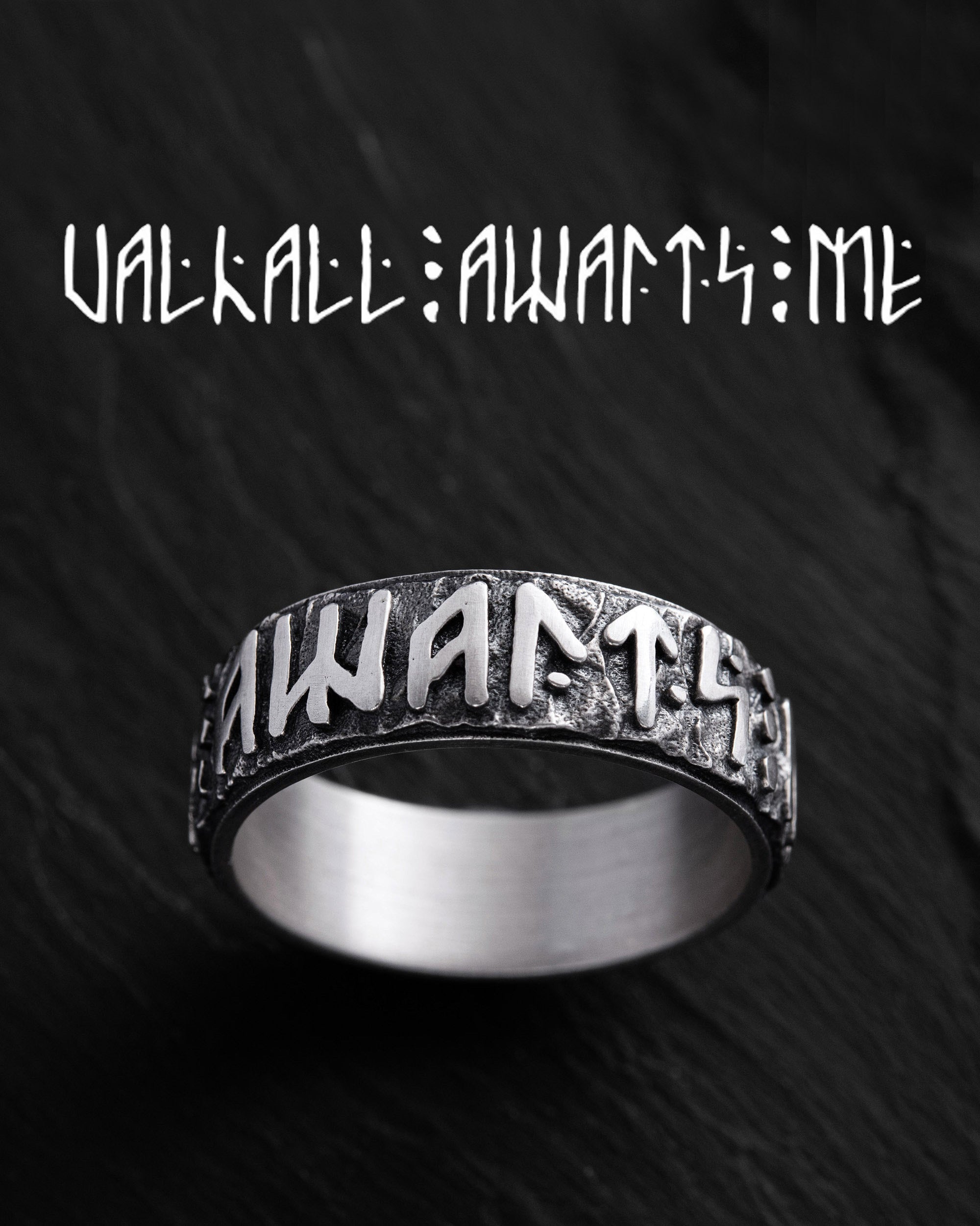 The silver ring VALHALL AWAITS ME is a manifesto of courage, honor, and acceptance of one’s destiny. The runic inscription “Valhalla awaits me” comes from Norse tradition, where Valhalla is the hall of warriors who fell with honor. For them, death is not an end but a passage to eternal life among equals.