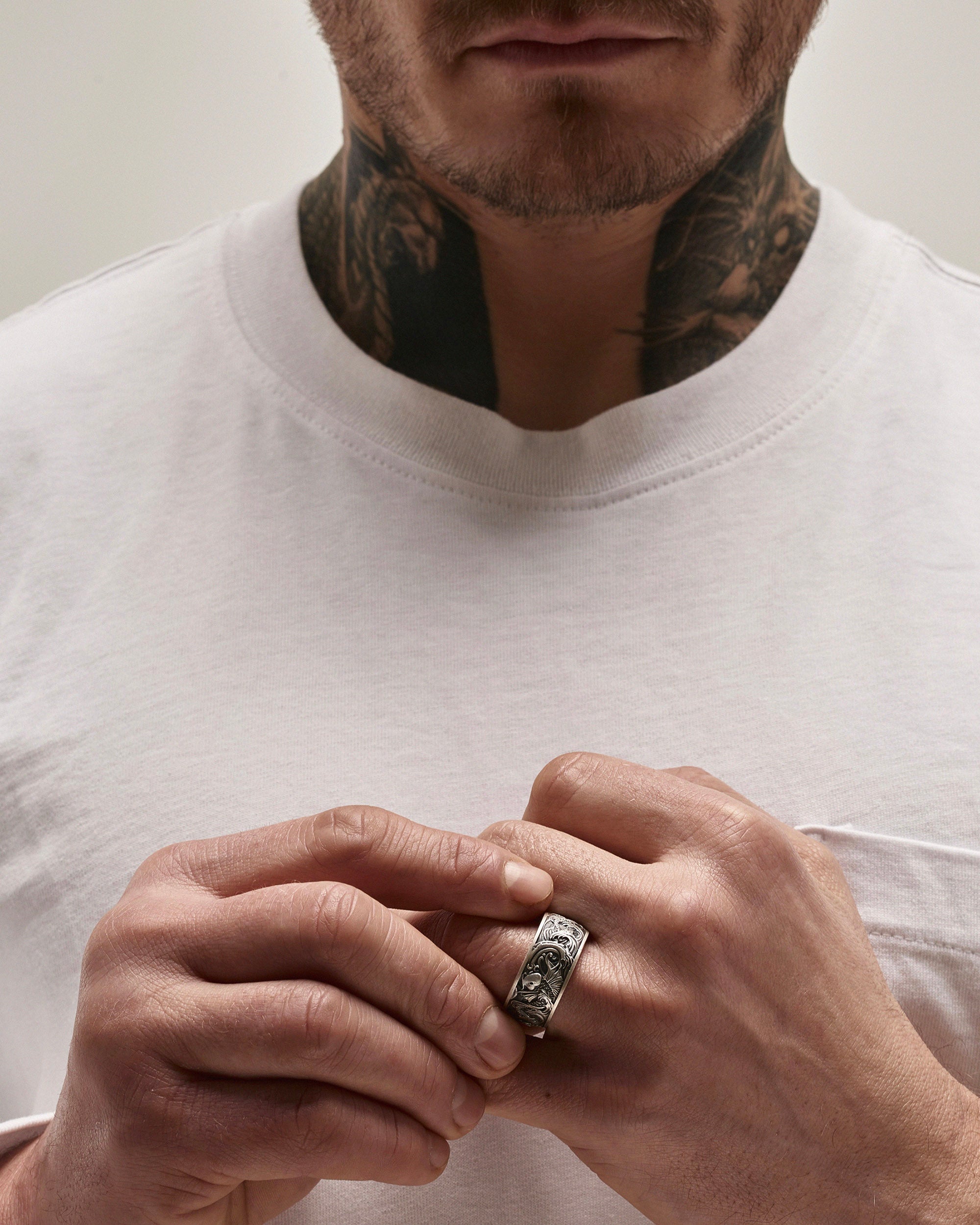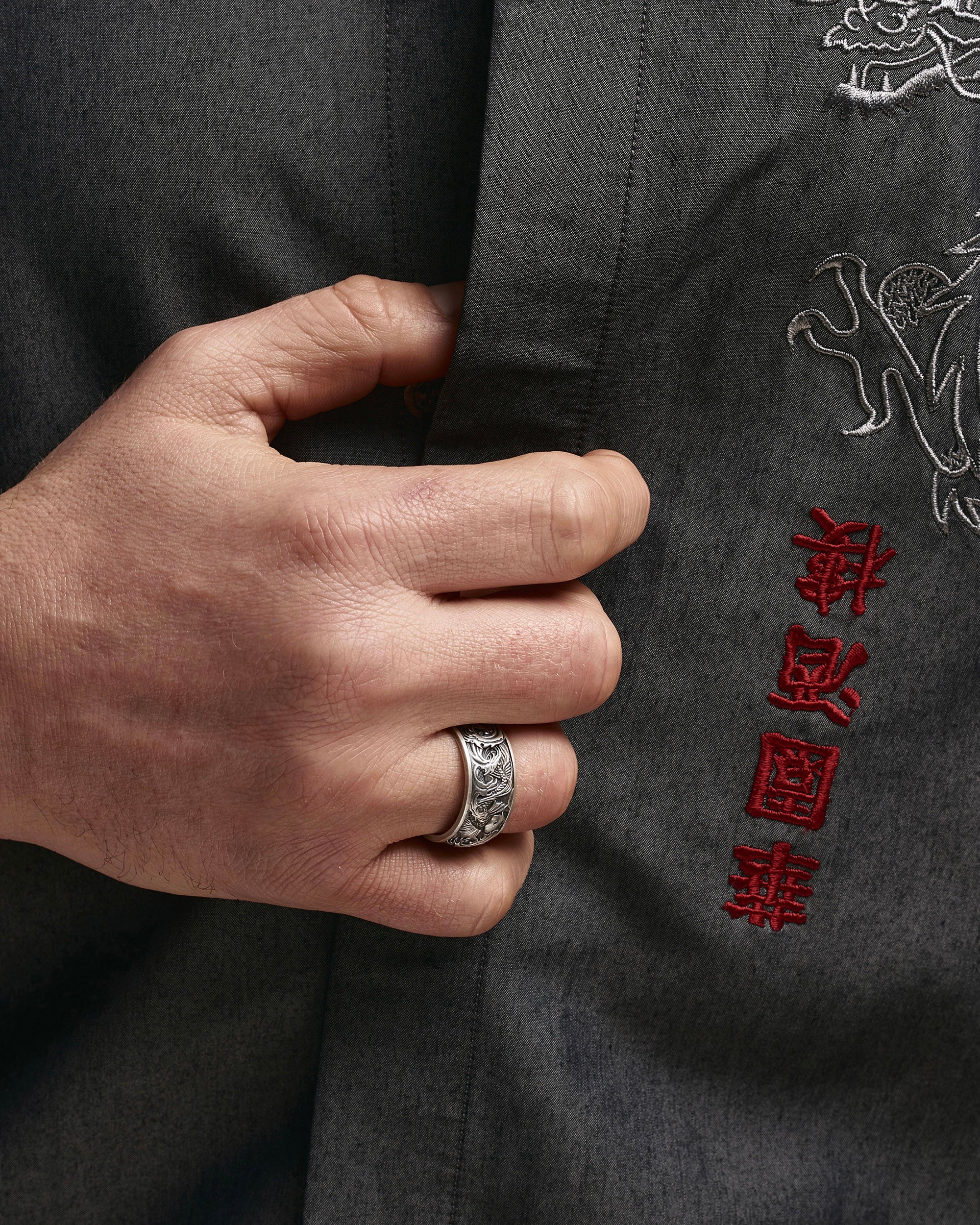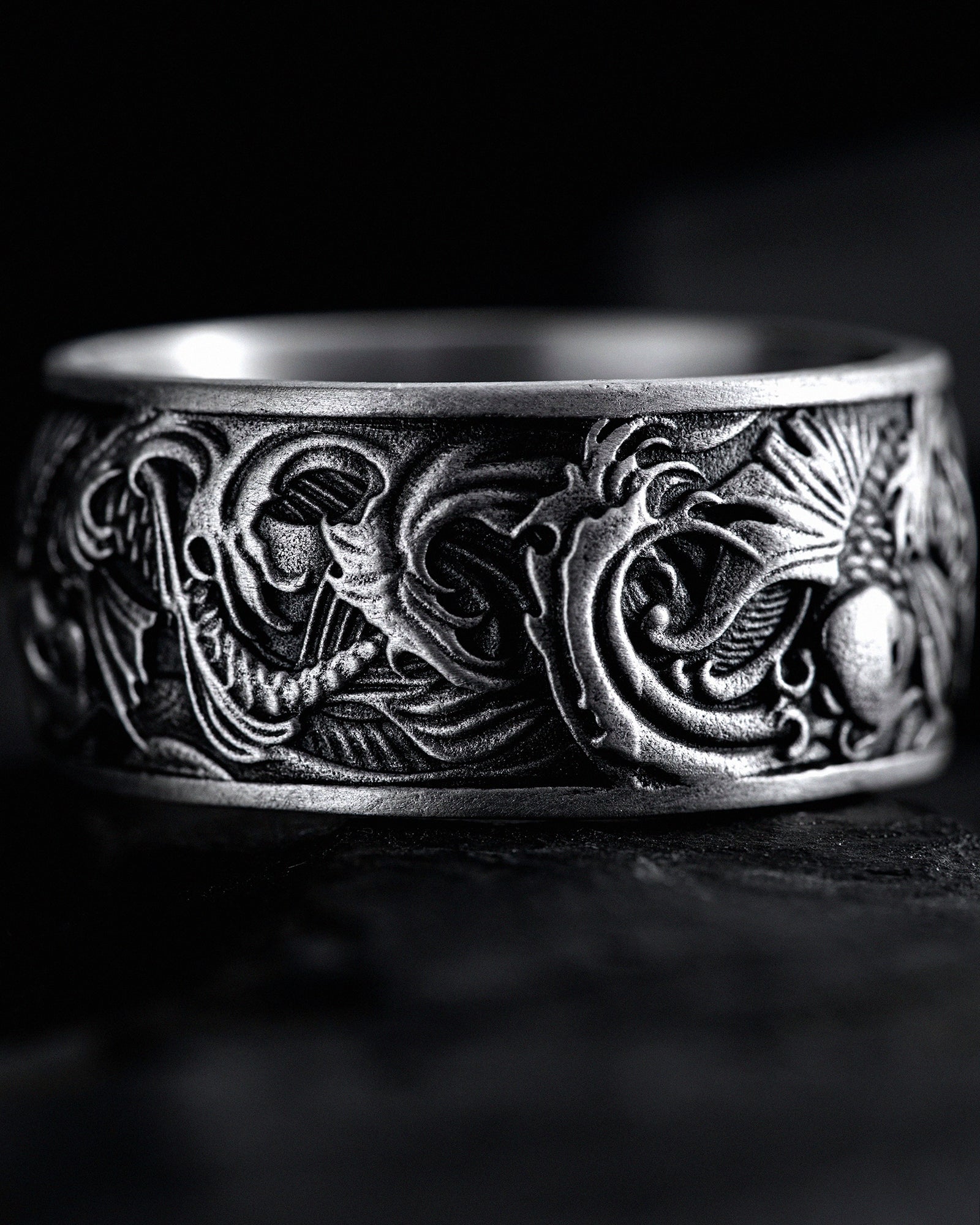 The silver ring "Koi Carp and Wave" impresses with its symbolism and depth. This men's ring combines two powerful symbols - the koi carp and the wave. The koi carp embodies resilience, endurance, and wisdom, and is also associated with luck and prosperity. The wave, in turn, symbolizes constant movement and change, as well as spiritual development. Wearing this ring can inspire a search for truth and growth, reminding us of the importance of stability in life and openness to change.