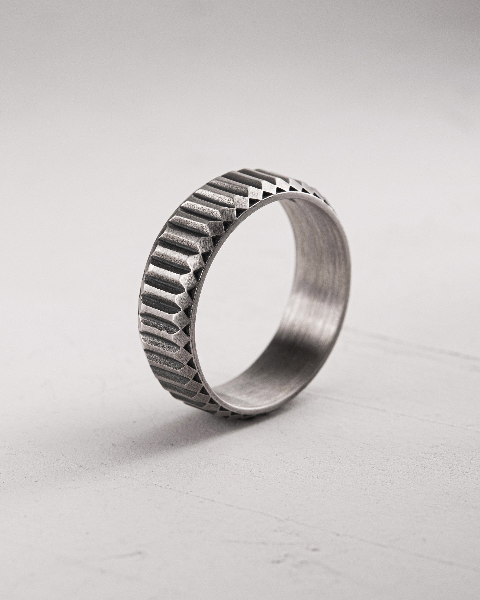 The silver ring VERTEX symbolizes strength, precision, and self-discipline. Its relief surface with sharp ridges resembles mountain peaks or gear teeth — each one representing a step upward, effort, and motion toward the goal. The name VERTEX means “summit” — the highest point pursued by those who never stop. The ring reminds us that true height is achieved through inner balance, persistence, and confidence.