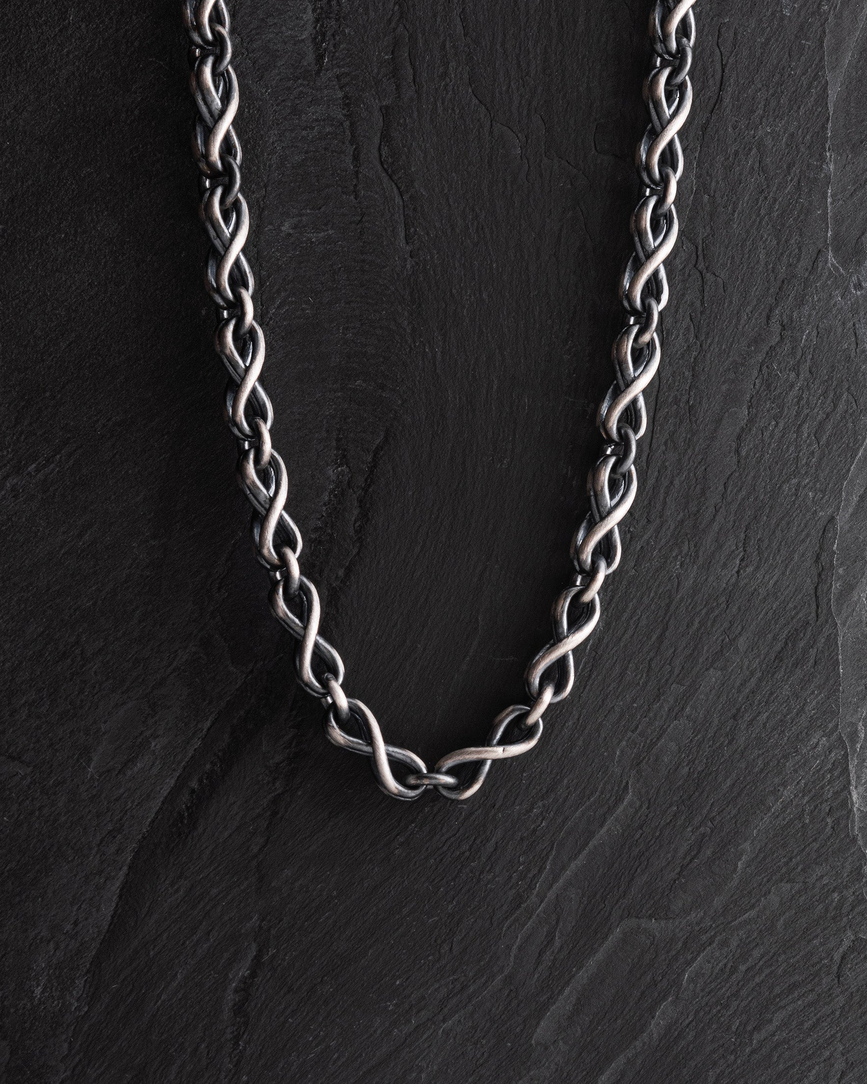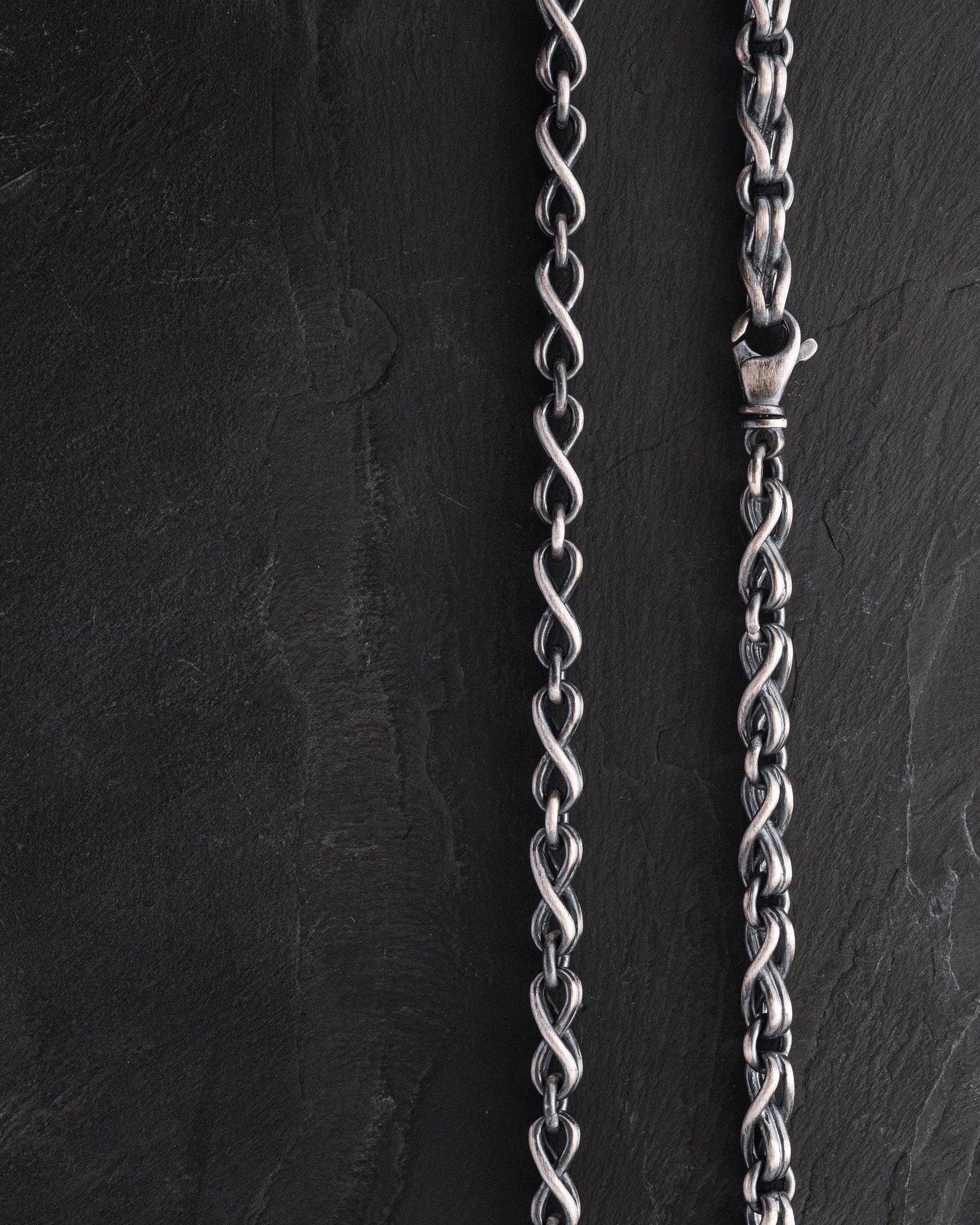 The silver necklace "CHRONOS" is a symbol embodying the complexity of time and infinity. The name Chronos originates from the ancient Greek god of time, symbolizing boundlessness and the constant movement around us. This necklace inspires contemplation on the inexorable force of time, urging us to cherish every moment and live fully with each passing second. It also serves as a reminder that time is not merely a linear sequence of events but a symbol of boundless potential for growth and self-realization.