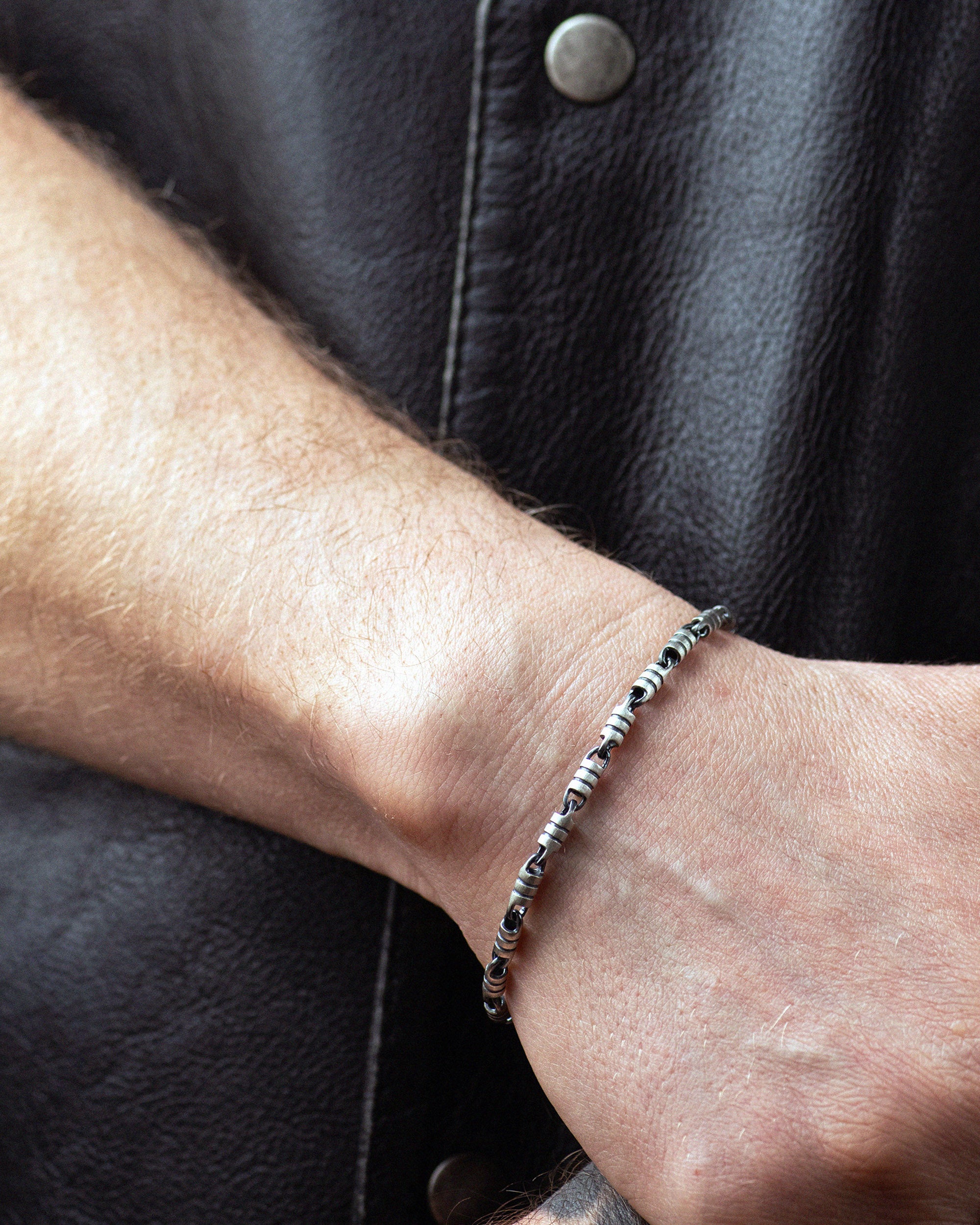 The silver bracelet OND SIRKEL embodies the concept of infinite cycle and harmony. "Ond", meaning "wave" in Scandinavian languages, and "Sirkel", meaning "circle", reflect the idea of continuous movement and change. This bracelet symbolizes the continuity of life and the rhythm of nature, emphasizing the importance of adapting to changes and the flow of life. OND SIRKEL is an excellent choice for men who appreciate deep symbols and the wisdom of natural cycles.