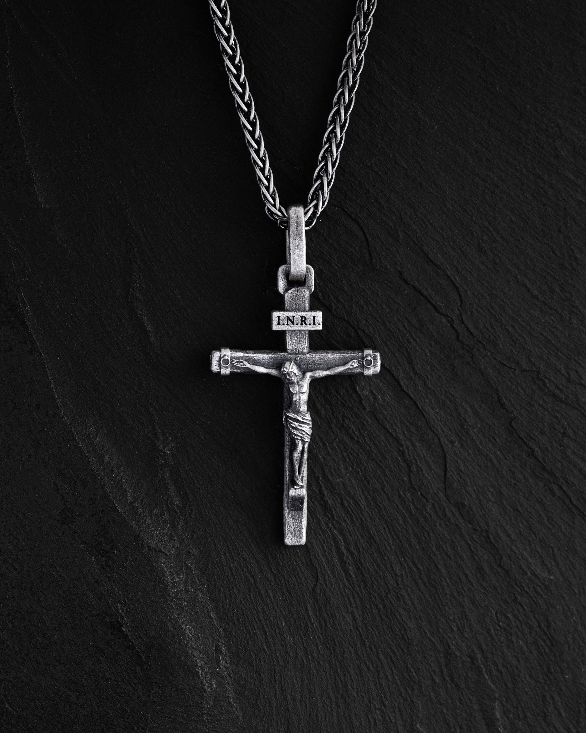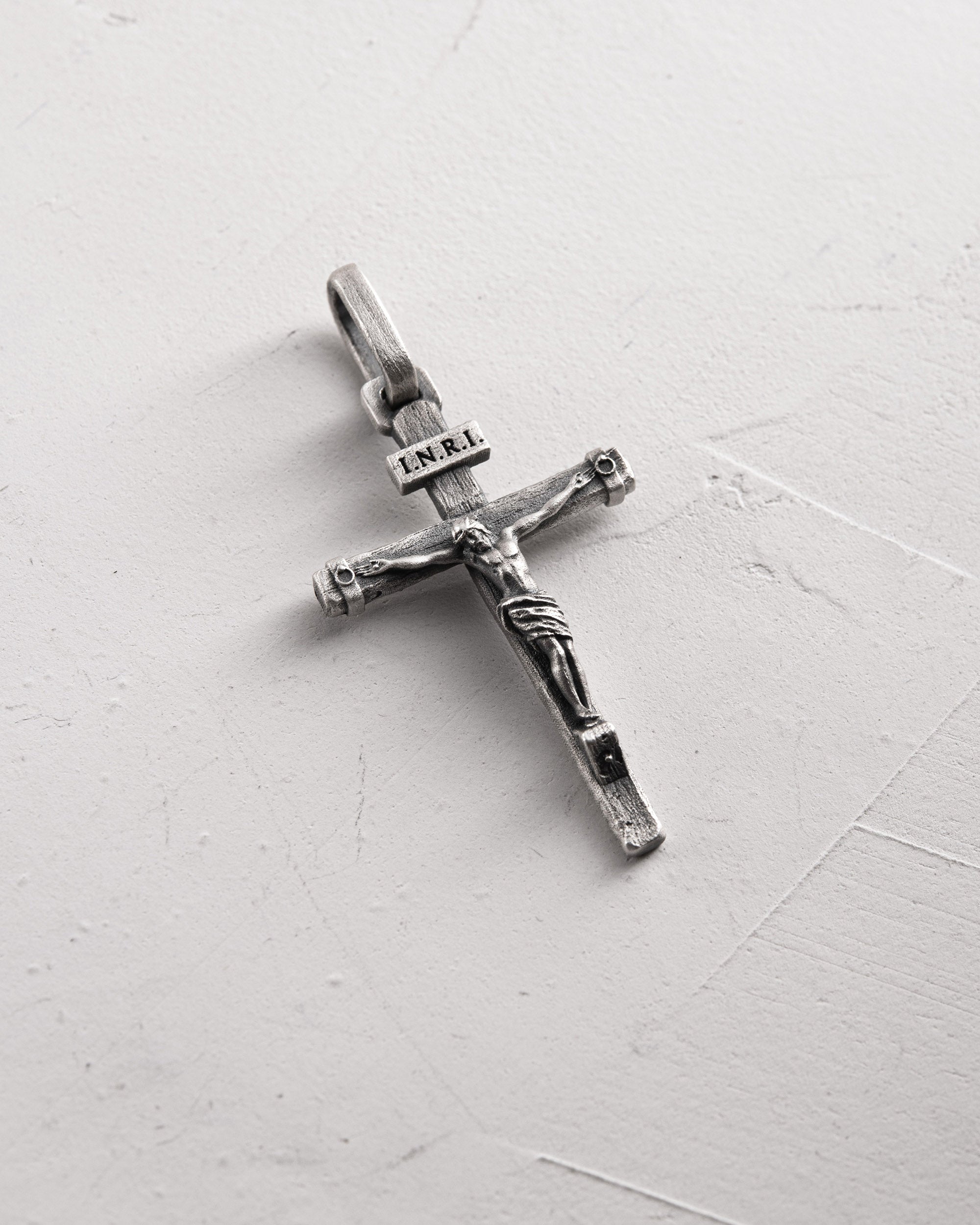 • Silver cross CRUCIFIXION of JESUS. INRI