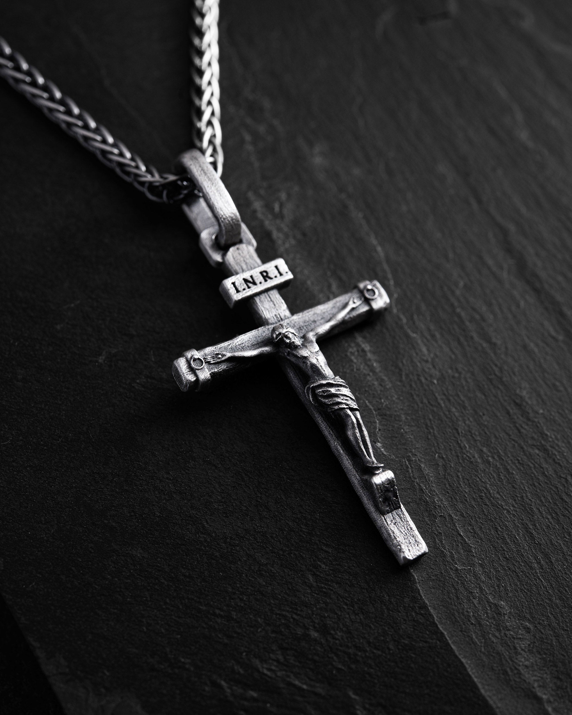 The silver cross CRUCIFIXION OF JESUS. INRI is a symbol of faith, sacrifice, and inner strength. With its detailed depiction of the Crucifixion and the inscription INRI (Iesus Nazarenus Rex Iudaeorum — “Jesus of Nazareth, King of the Jews”), this cross reminds of the triumph of life over death and the resilience born of faith. It inspires one to stay true to their principles, face trials with dignity, and find strength in humility and hope.