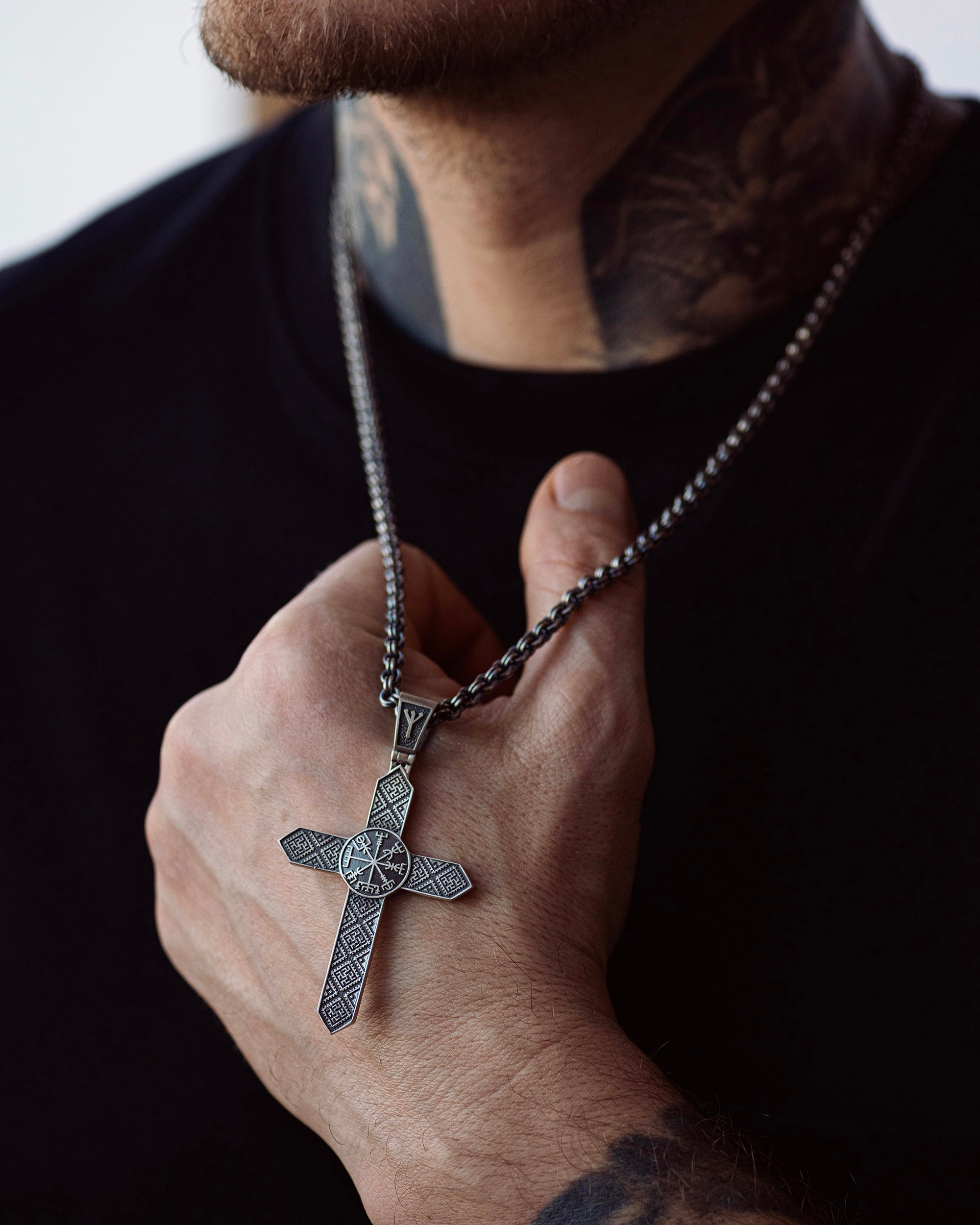 • Silver cross VEGVISIR. EMBROIDERED SHIRT - SVARGA