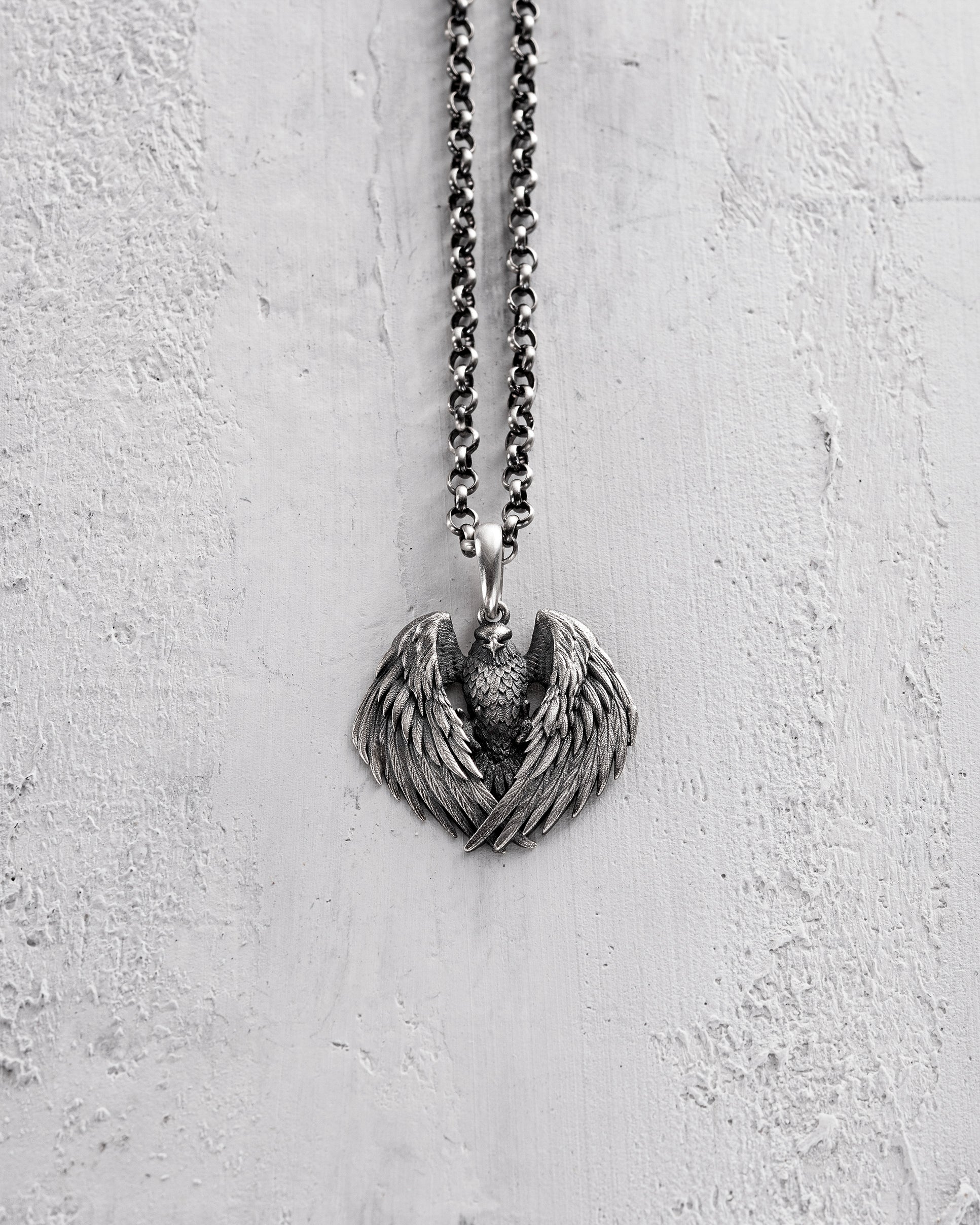 The silver pendant "FALCON" symbolizes speed, keen vision, and a will to win, making it a powerful symbol for those who strive to achieve their goals with high determination and agility. In many cultures, the falcon is associated with the solar deity, symbolizing light, power, and regal majesty.