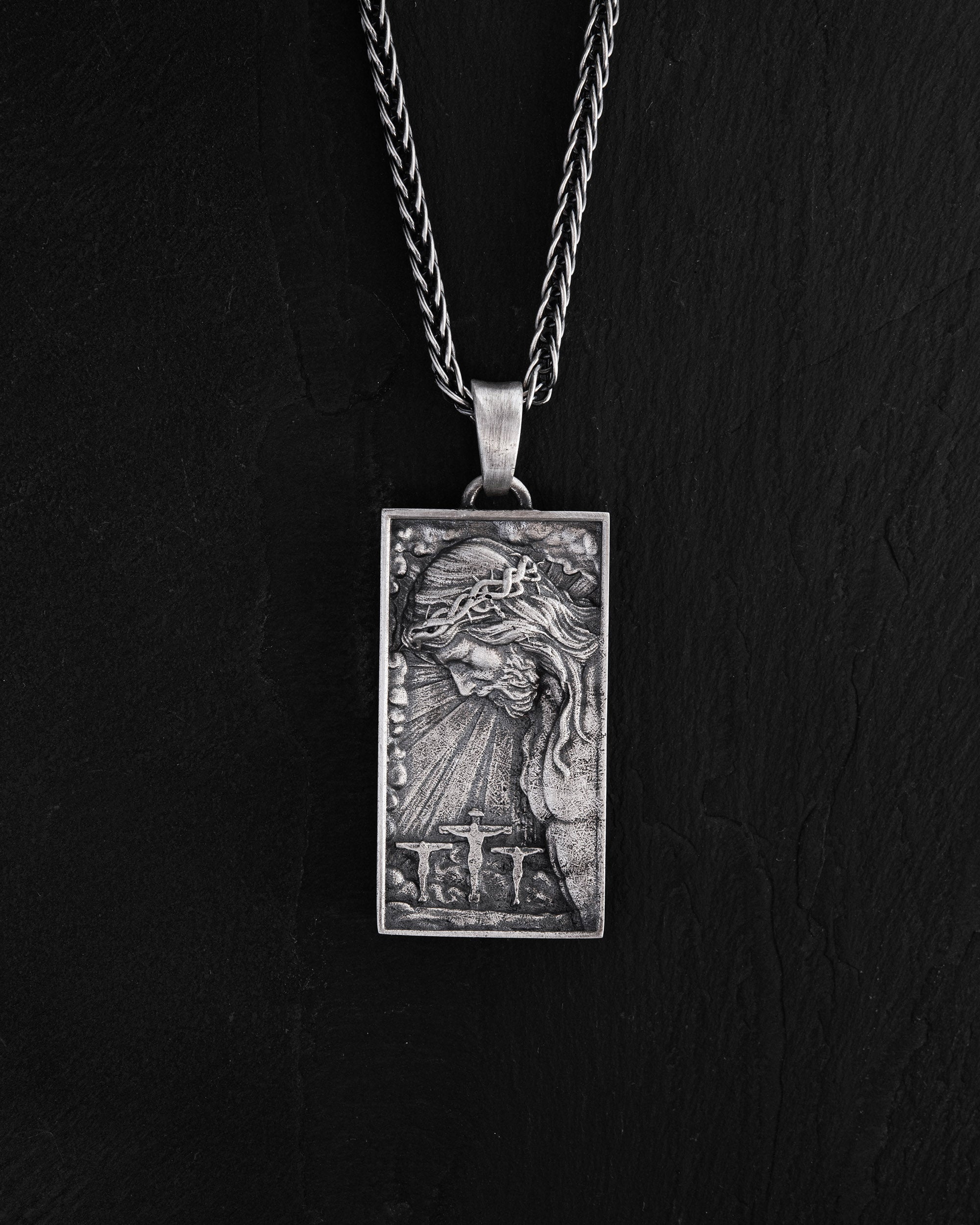 Silver pendant "JESUS WITH CROWN OF THORNS" - this men's accessory symbolizes deep spirituality, sacrifice, and faith. The depiction of Jesus with the crown of thorns reminds us of His suffering and sacrifice for humanity, emphasizing the power of faith and hope. This pendant inspires its wearer to maintain faith and courage in the most challenging times of life. By choosing "JESUS WITH CROWN OF THORNS," a man expresses his dedication to spiritual values and his pursuit of inner harmony. This accessory becomes a symbol of strength of spirit and unbreakable faith.